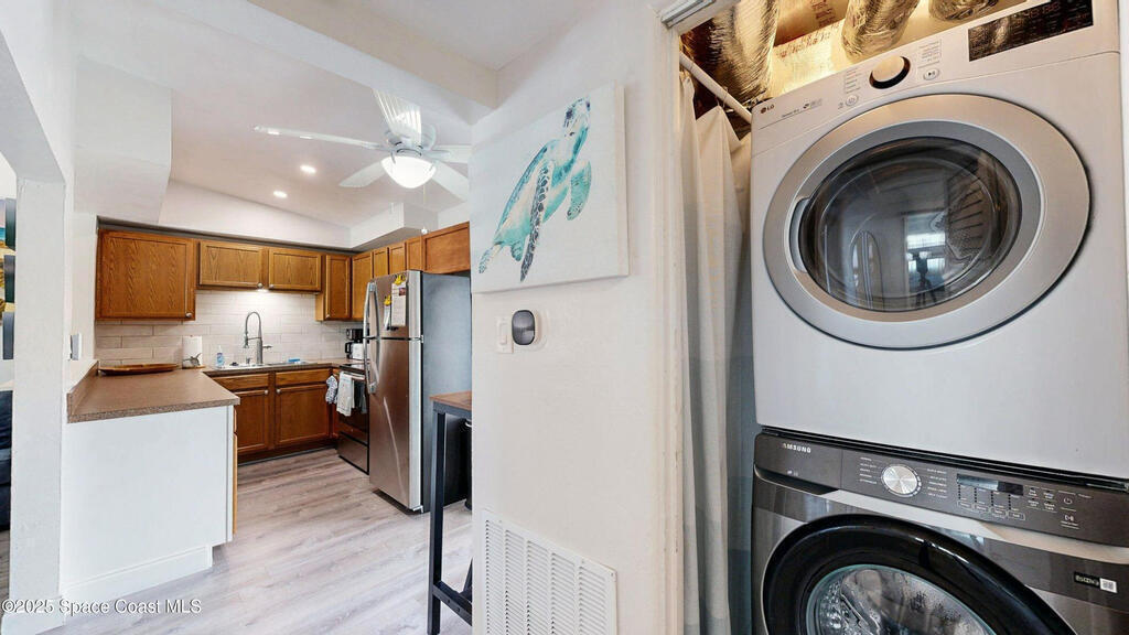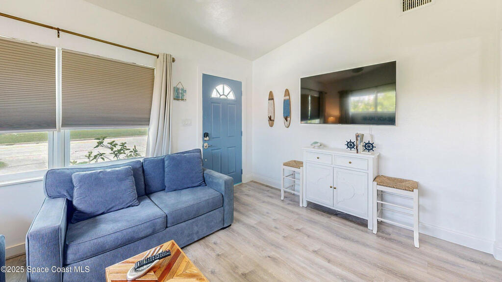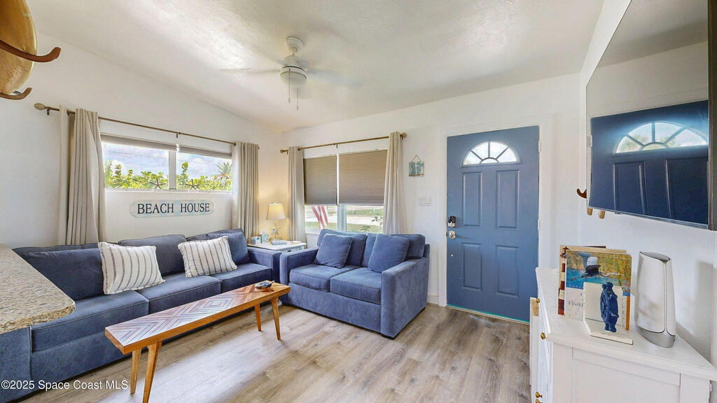 AIRBNB GOLDMINE in Cocoa Beach - steps from the Ocean. 3 Updated Units + Expansion!'' Just 600 feet from the sandy shores of Cocoa Beach, this beautifully UPDATED TRIPLEX offers the perfect blend of income potential and coastal lifestyle. This property features three remodeled units - two spacious 2-BR Apartments (Units A & B) and one charming 1-BR (Unit C) each with its own washer/dryer (A-2024, B-2023, C-2023) and new waterproof wood laminate flooring (2024). The property includes ample parking, plus large, durable storage sheds behind each unit. Recent updates ensure peace of mind for investors: Roof new in 2022 by a local company with a 15-year warranty, A/C systems updated (B & C: 2022), A: older unit with service contract) Regular service contracts in place for continued maintenance. Also a large, air-conditioned, fully stocked shed & sits on an oversized lot w/extra land on the east side, offering plenty of room to expand. With the possibility of adding a second story.