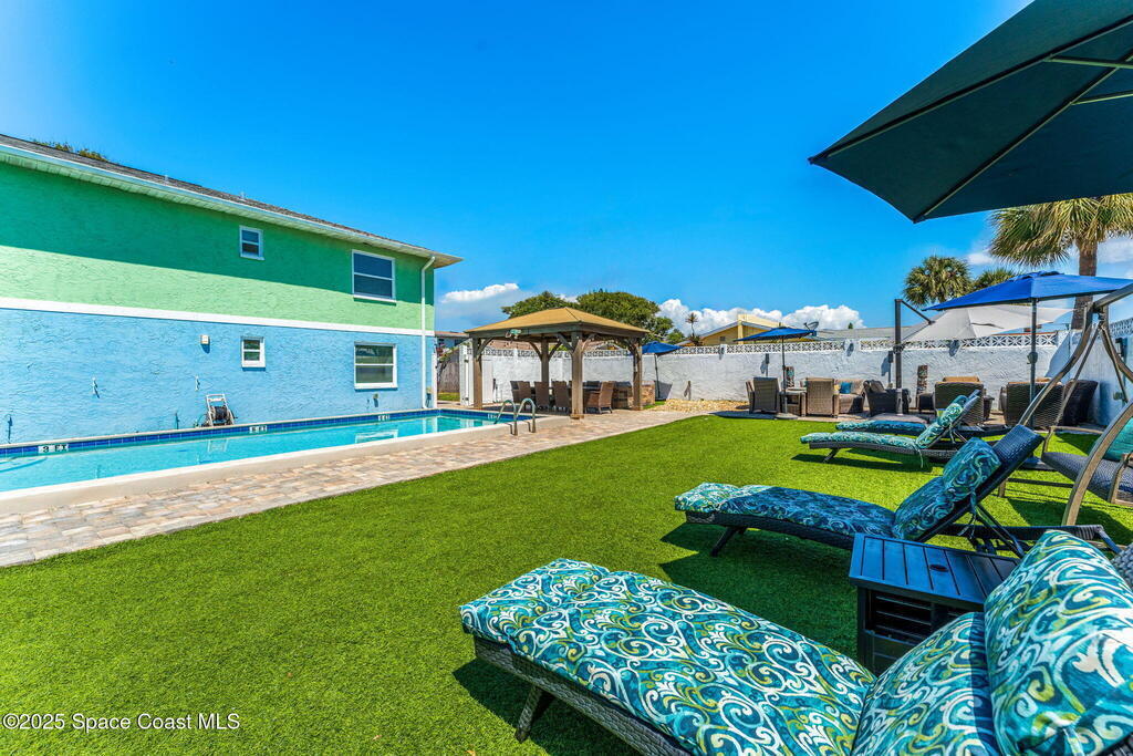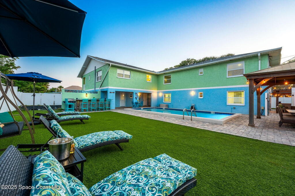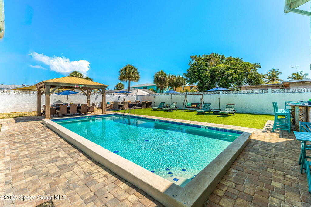 Just a block from the ocean, this triplex presents a rare opportunity in one of Cape Canaveral's most desirable coastal neighborhoods. With over 4,500 square feet of interior living space on a double lot, this property combines strong rental income with endless flexibility. Each unit is fully furnished and features an updated kitchen with granite counters, stainless steel appliances, and open layouts designed for easy beachside living. The outdoor spaces transform this property into a true retreat complete with a heated pool, hot tubs, firepit, outdoor bar, and multiple lounging areas surrounded by tropical landscaping. Whether operated as a high-performing short-term rental portfolio, a live-and-earn opportunity, or converted into a private resort-style residence, this investment offers location, scale, and proven returns.