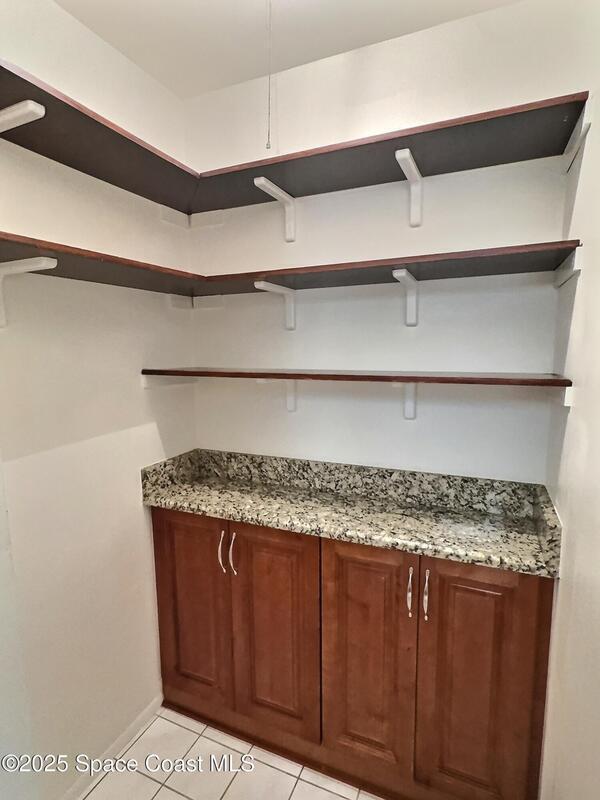 Experience serene Florida living in this centrally located second-floor condo located in the sought-after Harbor Woods community in Merritt Island. This 2-bedroom, 2-bath unit offers a screened balcony with a tranquil water view, perfect for morning coffee or evening relaxation. Enjoy the convenience of a newly installed impact windows and sliding glass door that fills the living space with natural light and enhances the indoor-outdoor flow.The kitchen is both functional and stylish, featuring granite countertops, a butler pantry, and breakfast bar with pass-through, making it ideal for entertaining or everyday living. The open living and dining area connects seamlessly to the screened balcony, offering a light and airy atmosphere. extra storage in the hallway closet, and linen closet.