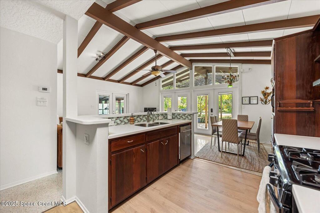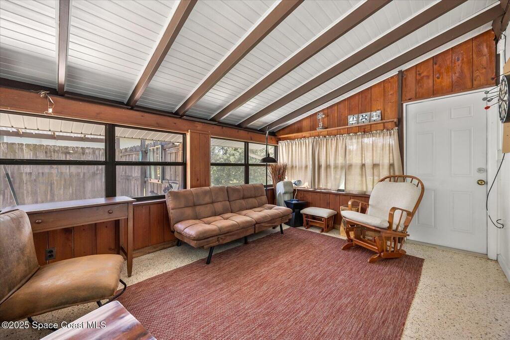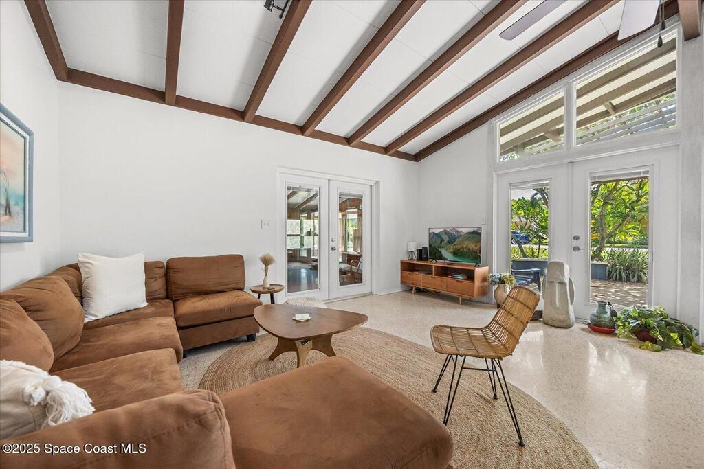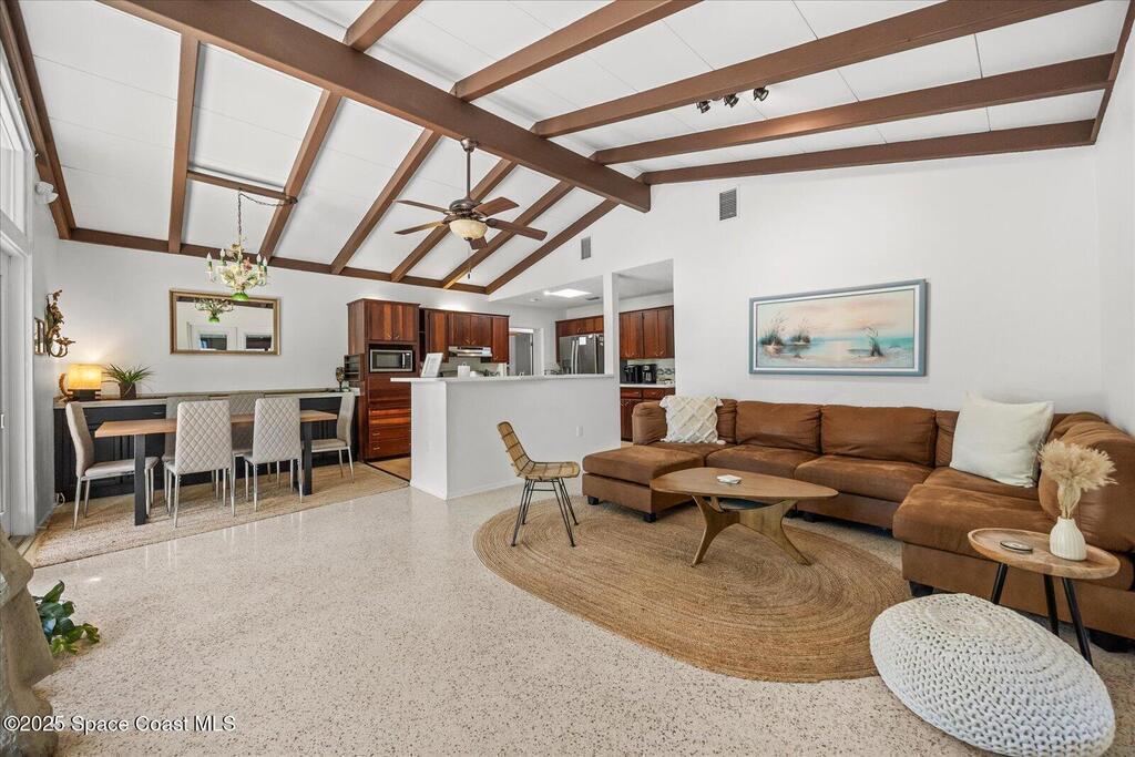 Private Oasis in the Heart of Cocoa Beach! Updated 4-bed, 3-bath pool home in the sought-after Cocoa Isles neighborhood offers the ultimate Florida lifestyle. Vaulted ceilings with exposed beams, clerestory windows, and an airy open layout create a bright, welcoming space. The kitchen features newer appliances and generous counter space, flowing into the living and dining areas--ideal for entertaining. The primary suite includes a resort-style bath with walk-in shower, while a converted garage adds 424 sq ft and a third full bath--perfect for multigenerational living or rental income. Enjoy a sunroom, mature landscaping, shaded patios, and a private plunge pool. With a 2-car carport, oversized driveway, and RV space, this home delivers comfort, flexibility, and charm. Whether you're dreaming of beachside living or searching for a savvy Airbnb or long-term rental investment, this versatile home is ready to impress--just minutes from the sand, surf, and all that Cocoa Beach has to offer.