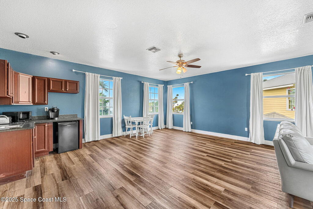 A rare coastal gem, this corner-lot pool home places the river & ocean just a short stroll away while delivering a lifestyle of space, versatility & style. The fenced backyard becomes a private escape with a sparkling pool, seamlessly joined to the living room by wide sliders that erase the line between indoors & out. The main-level primary suite feels expansive with a walk-in closet, tub, separate shower & a bonus room ready to serve as a luxe dressing space, home office, or nursery. Upstairs, a fully self-contained suite with kitchenette, laundry, walk-in closet & private bath offers the ultimate set-up for guests or multigenerational living. Entertain w/ ease in a kitchen appointed with stainless refrigerator, wall oven & gas cooktop, while LVP flooring throughout the main areas & upstairs keeps the look fresh & modern. With dual pool-access baths, a main-floor laundry, new roof (2023) & 2 new A/C units, this is a home where coastal energy, smart design & effortless living collide.