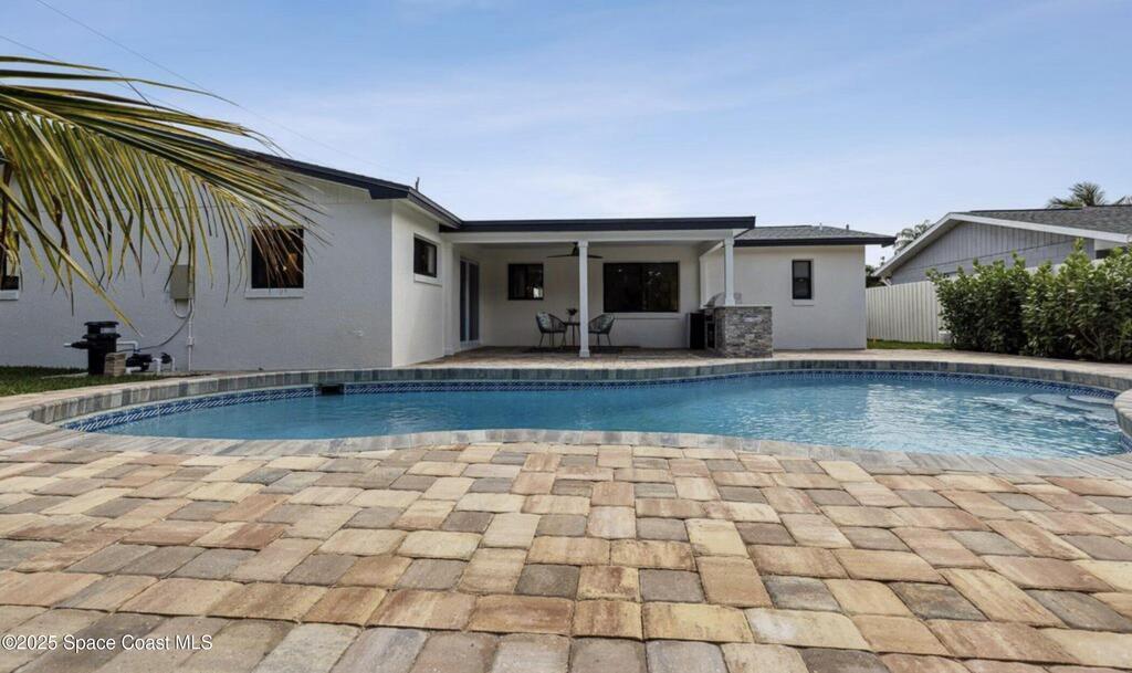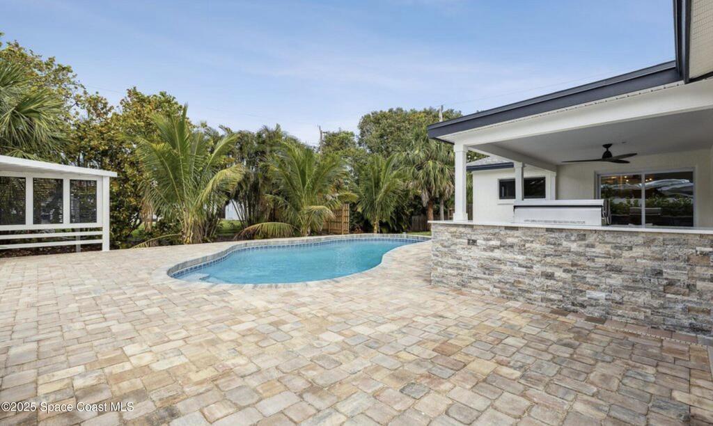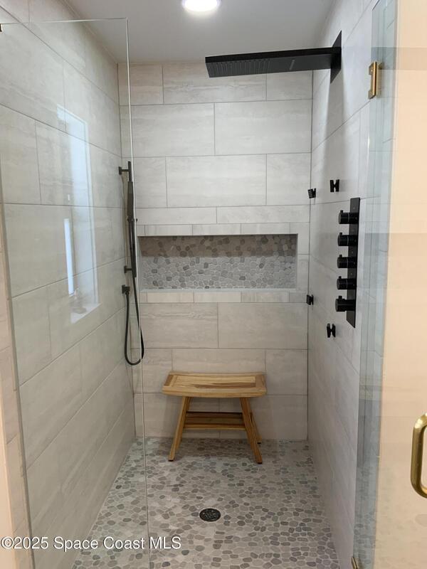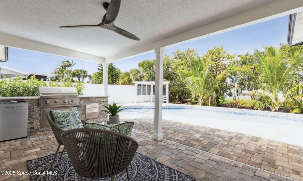 RARE BEACHSIDE SPECTACULAR!!! - RENOVATED BEAUTY!!! 2023-entire interior of home gutted with all new designer kitchen cabinets, quartz countertops, upgraded appliances, PVC plumbing, modern tile bathrooms, LVP flooring, stone accent walls, modern fireplace, shiplap walls, impact windows and doors, gas water heater, HVAC/ductwork, outdoor BBQ kitchen island, corner gazebo, front and back pavers and more. A MUST SEE! 2025-roof gutters, attic insulation, plantation shutters, resurfaced pool w/ new pump. 2019 roof. Inspection certificates done-lower insurance costs. TRULY A TURNKEY INVESTMENT!