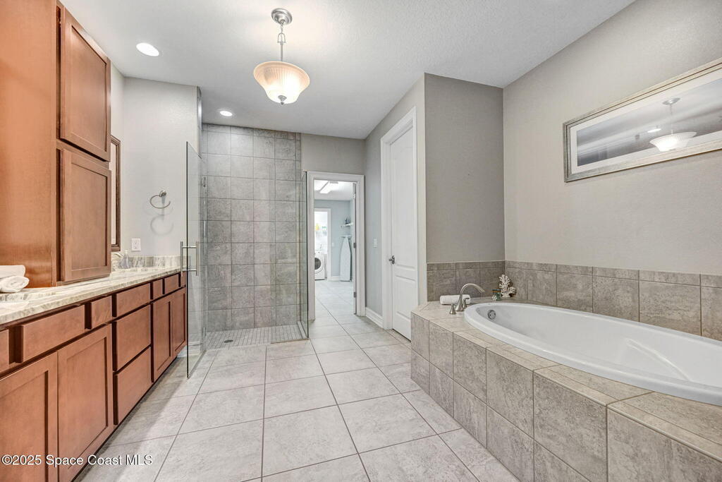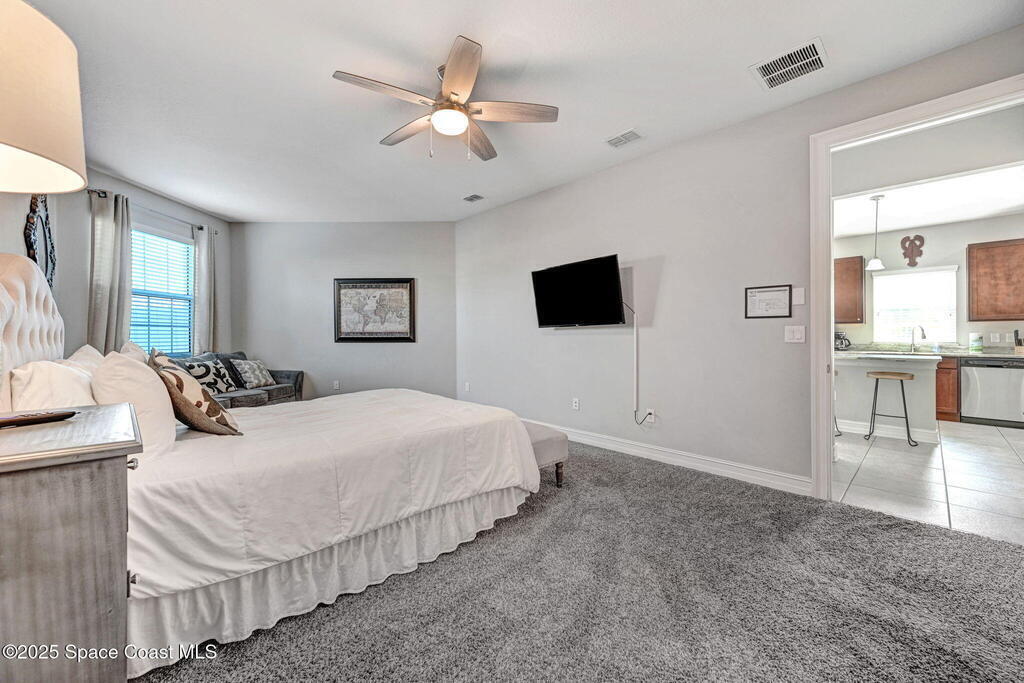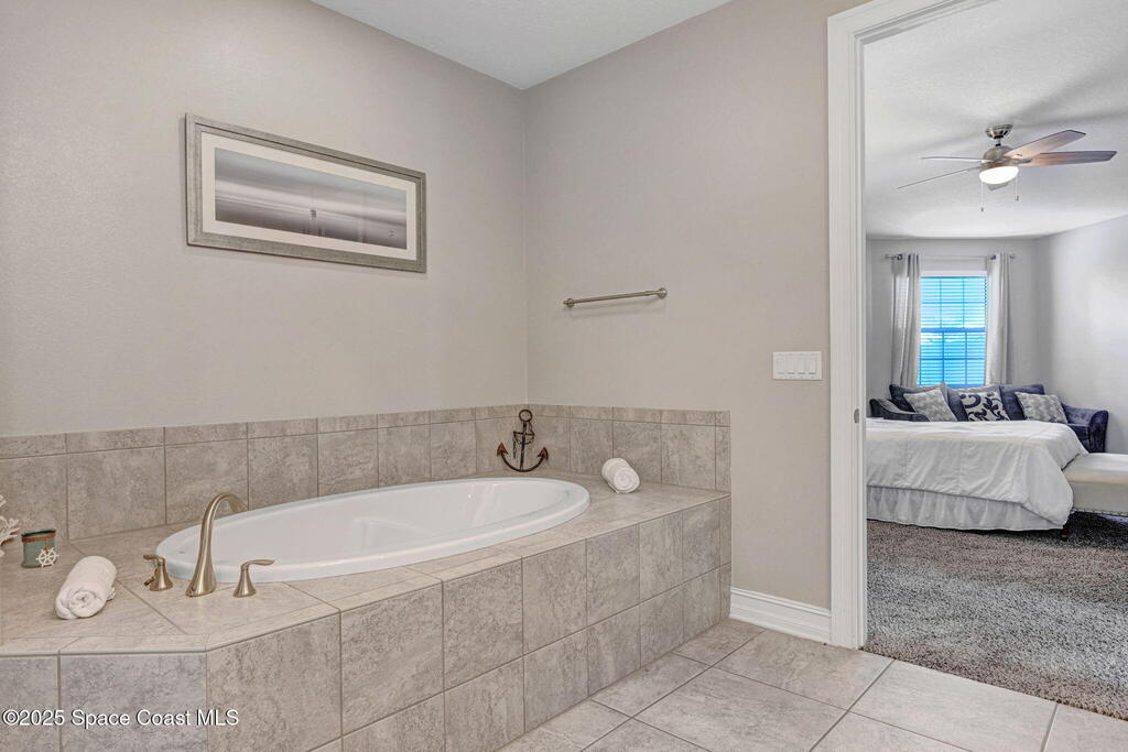 - Interior FeaturesBreakfast Bar, Ceiling Fan(s), Guest Suite, Kitchen Island, Open Floorplan, Primary Bathroom -Tub with Separate Shower, Primary Downstairs, Split Bedrooms and Walk-In Closet(s)