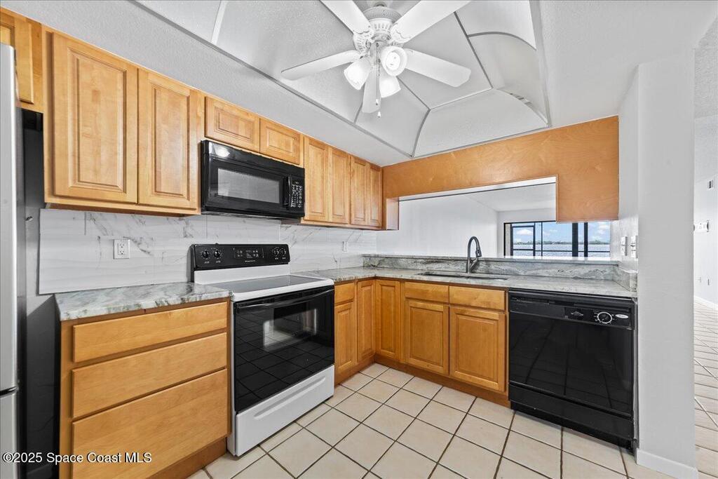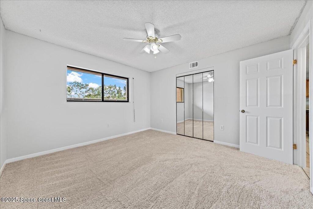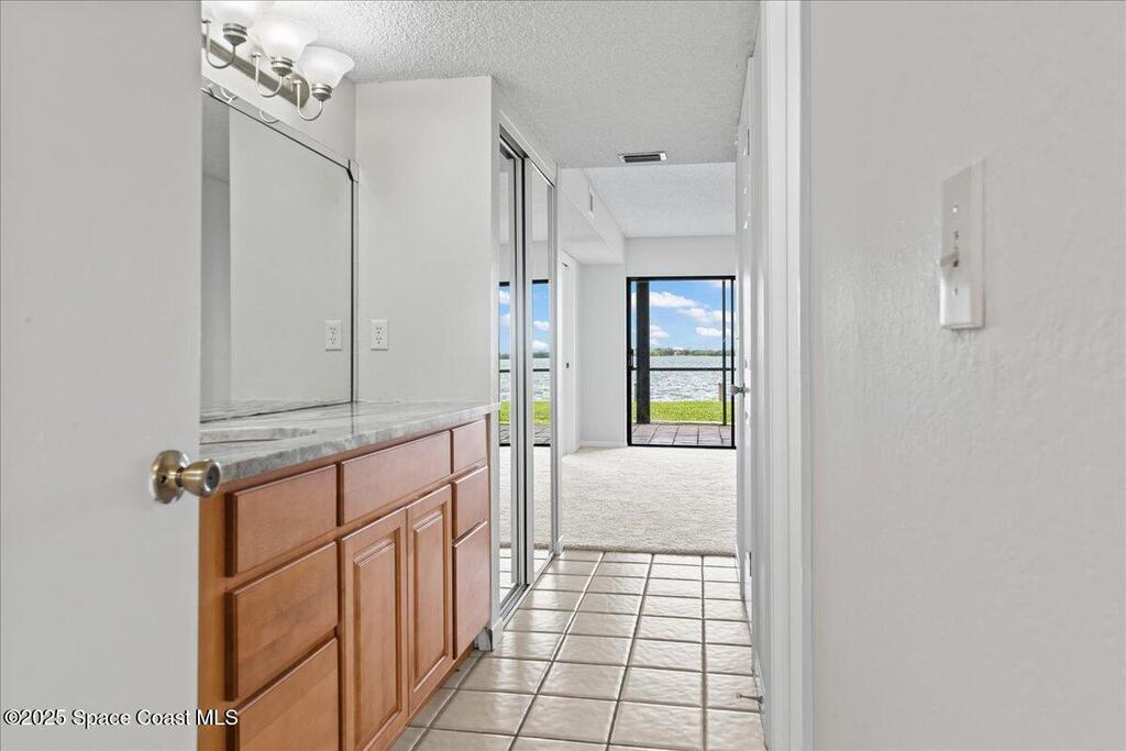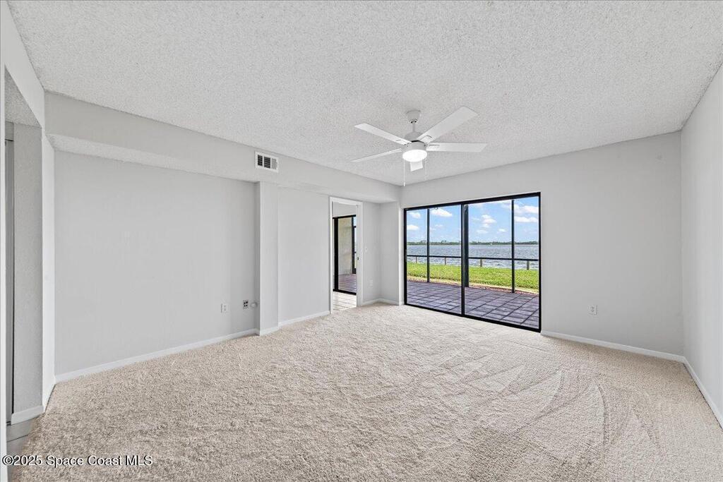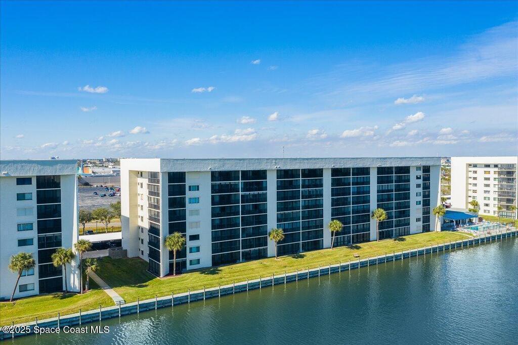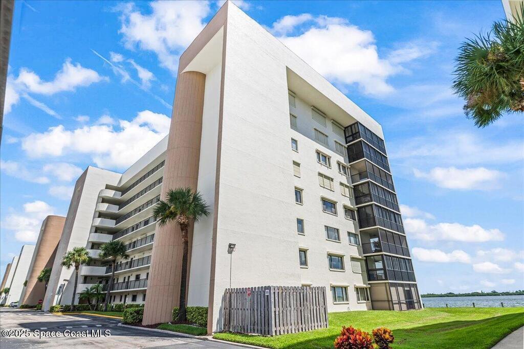 DIRECT WATERFRONT at Affordable Price! Welcome home to Merritt Towers, a sought after waterfront community within walking distance to mall, dining, bank, Veterans Memorial Park, & new Health First hospital under construction. Centrally located on the Space Coast. Well funded & maintained association with approved 2026 budget the monthly condo fee will be 635.00. Active social committee. Water aerobics, cards, pickleball, 2 pools(North pool heated year round), sauna, hot tub, tennis, dog park! Enjoy the sunrise on your screened balcony. Watch dolphins play, step outside for the next rocket launch! So much to do. New paint & carpet in bedrooms. Kitchen features granite countertops and tiled backsplash with loads of cabinets. Waterfront primary suite with double vanities, custom built in walk in closet. Mirrored entry shows the shimmer of water from the moment you open the door. EZ commute to SpaceX, Blue Origin, NASA, Port Cruise Ships, Beaches, OIA, Cocoa Village. MOTIVATED SELLER!