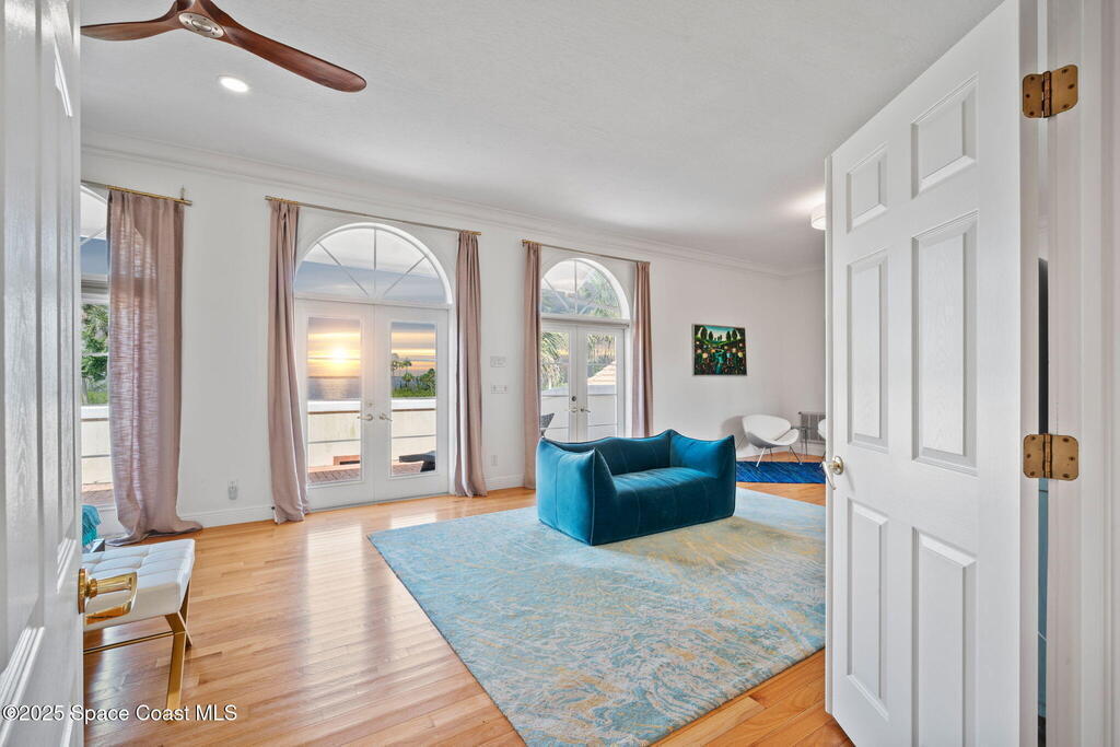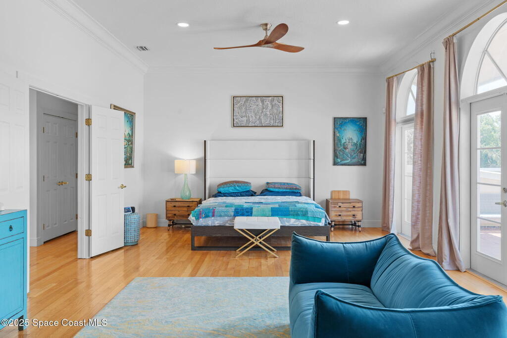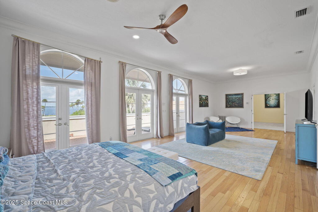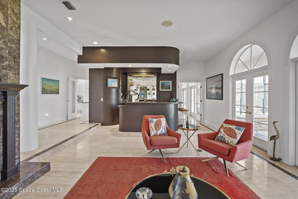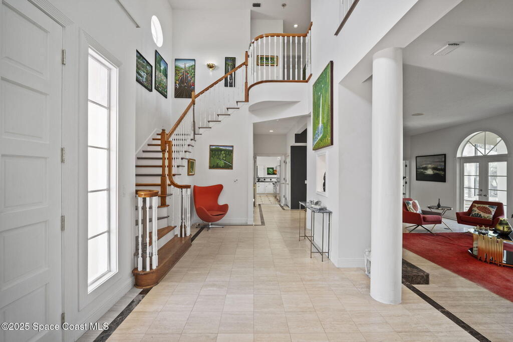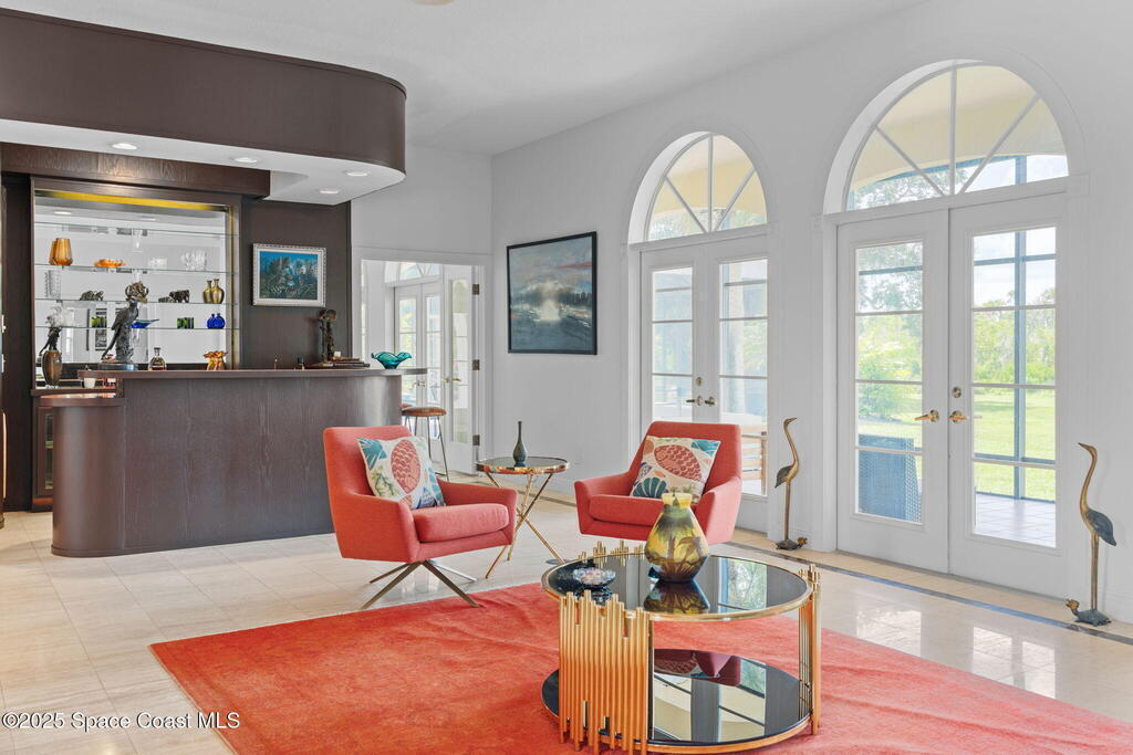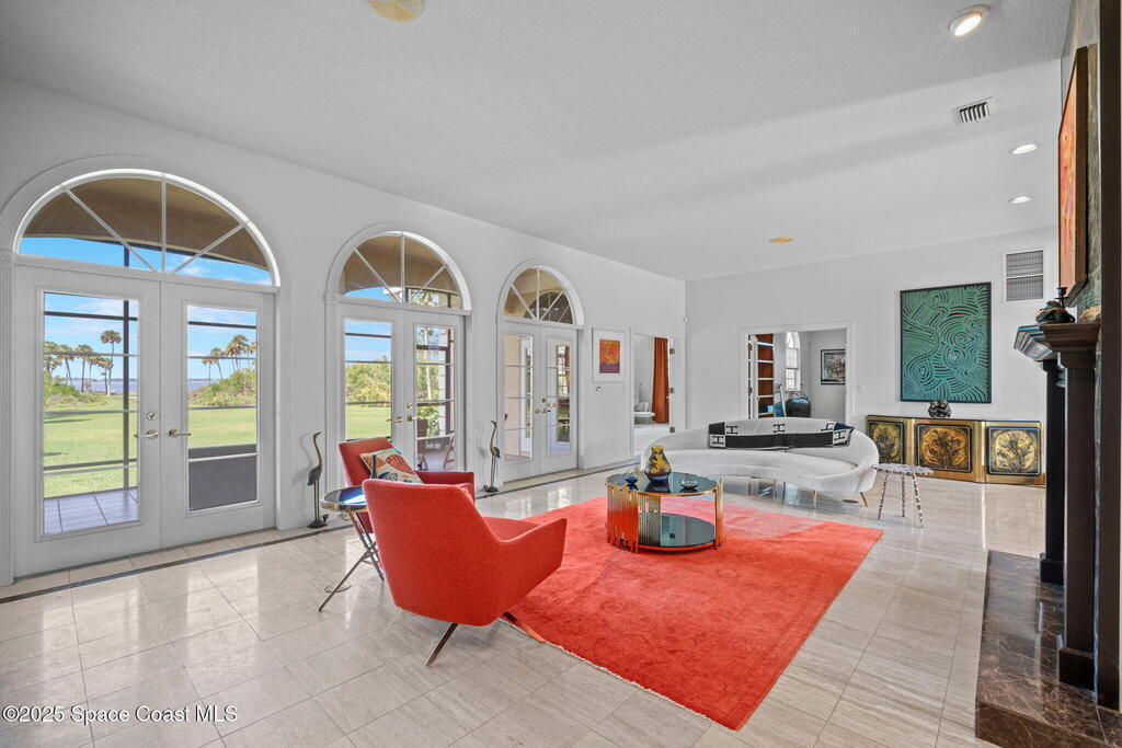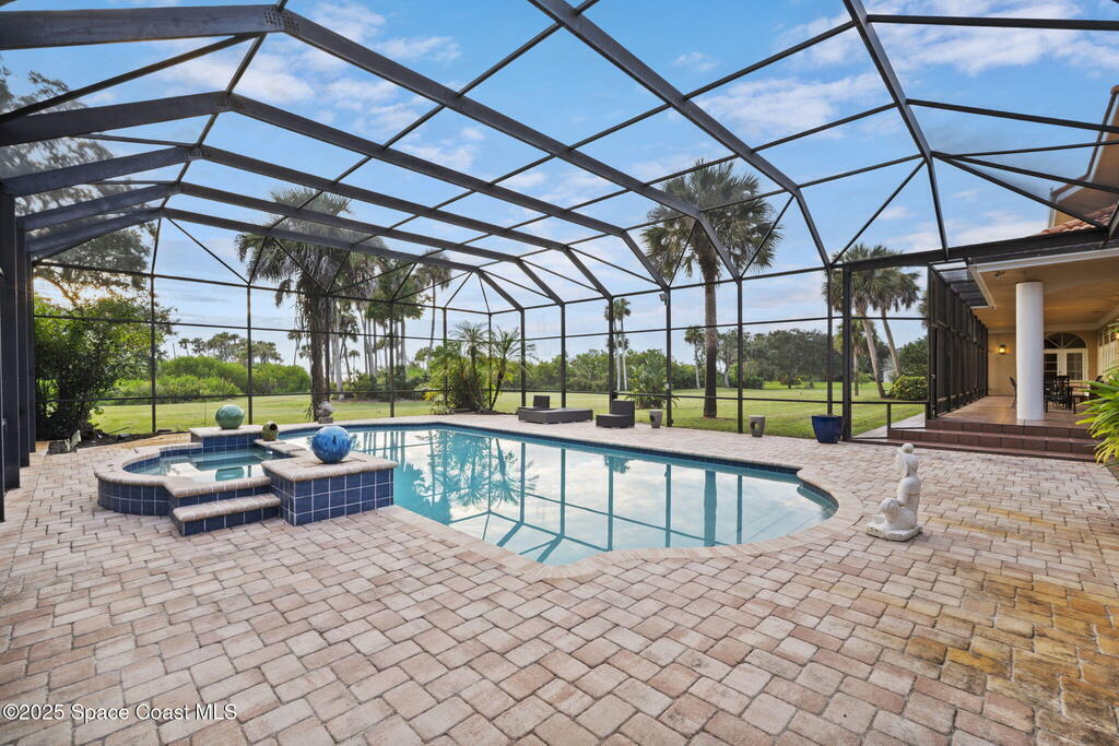 A rare opportunity on the N Tropical Trail, this estate sits on 7.06 acres directly on the Indian River and offers a staggering 6,686 square feet of living space. Designed to combine everyday living with exceptional entertaining spaces including a massive covered breezeway, 4-car garage with entertainment room, a large executive office, and a custom bar. The gated palm lined driveway with fountain makes a statement as you arrive, while inside, the primary suite offers a resort-style bathroom, oversized closet, and a private balcony overlooking the river and expansive grounds. The kitchen is fully equipped with high-end appliances and abundant space for cooking and gathering. The outdoor living is just as impressive, featuring a screened pool and spa, summer kitchen, private dock with covered boat lift, and panoramic sunset views that are second to none. With its unique combination of acreage, privacy, and waterfront lifestyle, this estate is truly one-of-a-kind on the Space Coast.