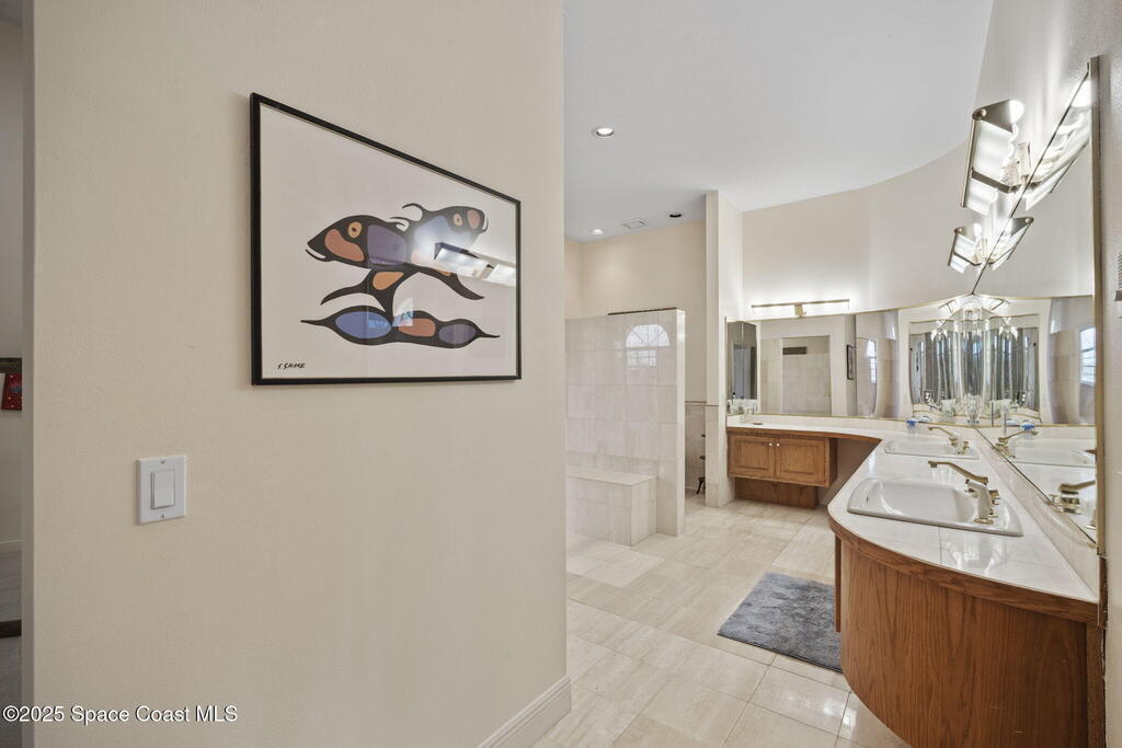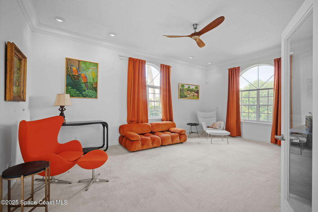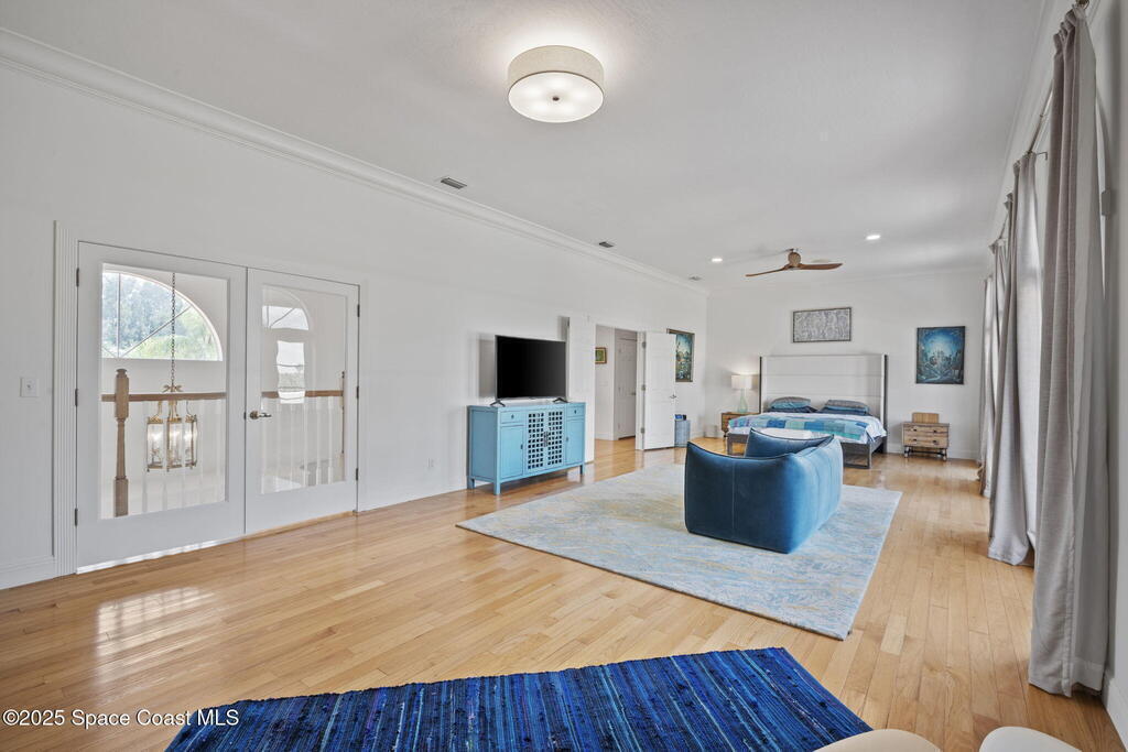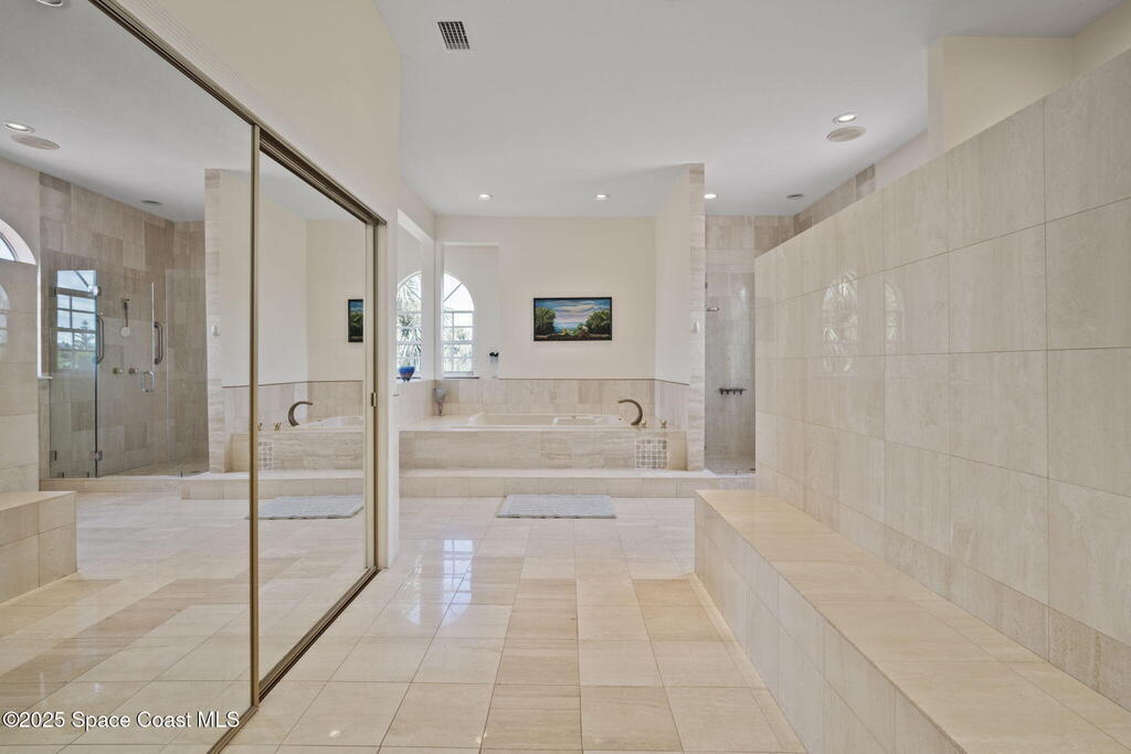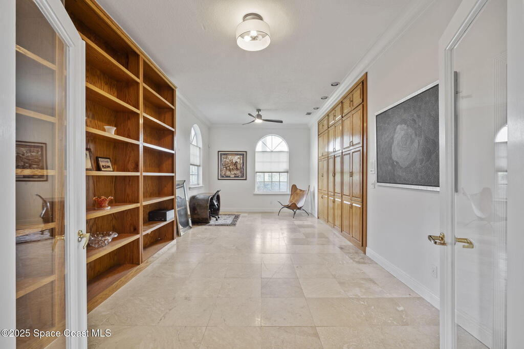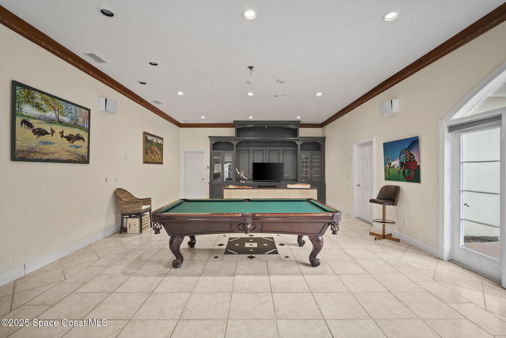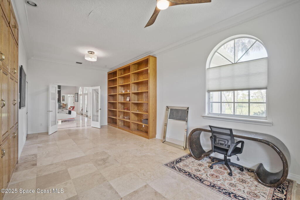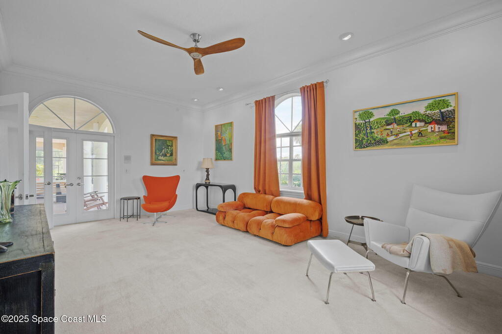 A rare opportunity on the N Tropical Trail, this estate sits on 7.06 acres directly on the Indian River and offers a staggering 6,686 square feet of living space. Designed to combine everyday living with exceptional entertaining spaces including a massive covered breezeway, 4-car garage with entertainment room, a large executive office, and a custom bar. The gated palm lined driveway with fountain makes a statement as you arrive, while inside, the primary suite offers a resort-style bathroom, oversized closet, and a private balcony overlooking the river and expansive grounds. The kitchen is fully equipped with high-end appliances and abundant space for cooking and gathering. The outdoor living is just as impressive, featuring a screened pool and spa, summer kitchen, private dock with covered boat lift, and panoramic sunset views that are second to none. With its unique combination of acreage, privacy, and waterfront lifestyle, this estate is truly one-of-a-kind on the Space Coast.