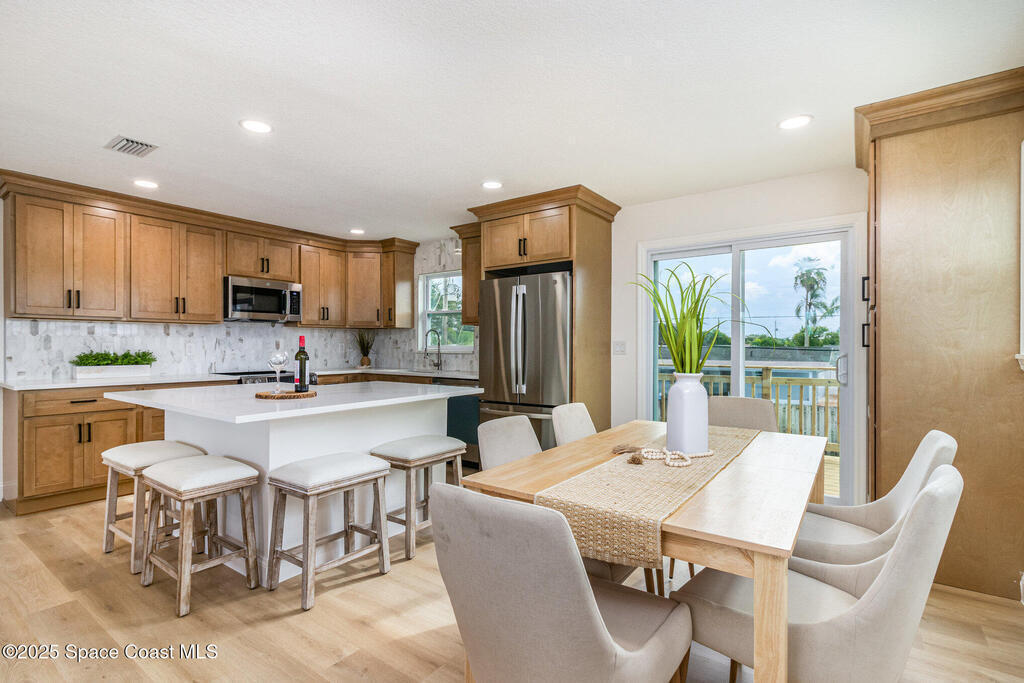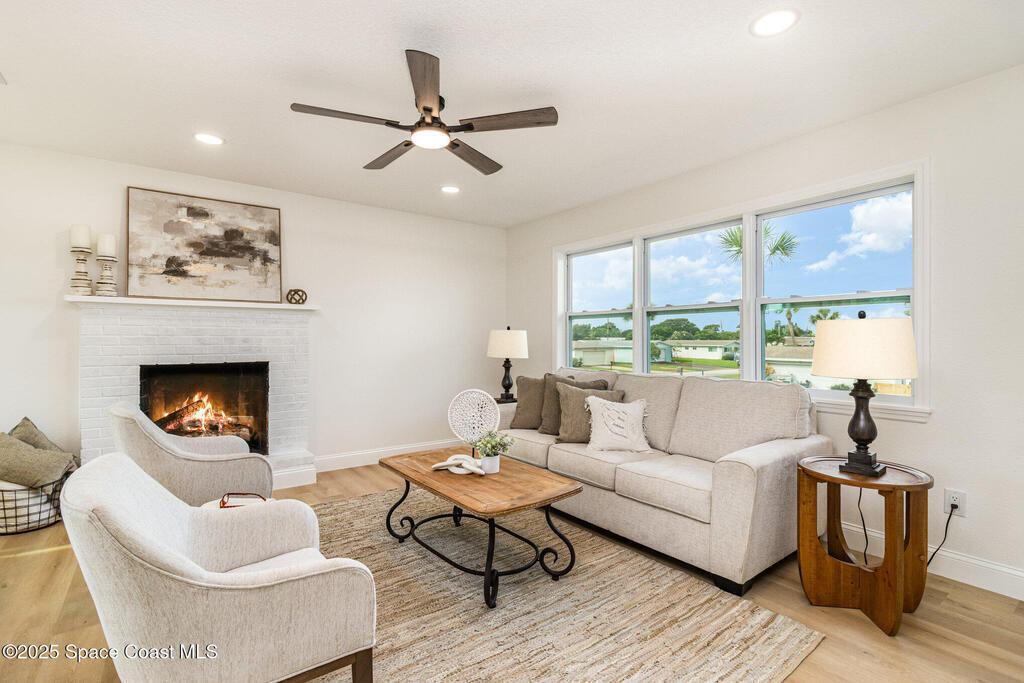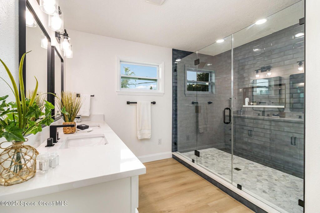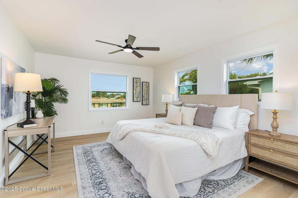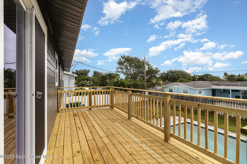 Beautifully renovated 4BR/3BA two-story pool home in desirable Indian Harbour Beach. Nearly every feature is new: impact-rated windows, slider, and garage doors; luxury vinyl plank flooring; soft-close kitchen cabinets with quartz countertops and new appliances; stylish fixtures; and updated tile showers in all baths. The spacious new master suite includes a completely redesigned bath with a modern shower. New plumbing (in & out), a new deck installed, and the irrigation system upgraded with a new valve for 100% functionality. Roof replaced 2022, HVAC 2024. Enjoy easy indoor-outdoor living with a sparkling pool and plenty of space to entertain. Located minutes from beaches, shopping, and top schools, this move-in-ready home blends coastal charm with worry-free updates throughout.