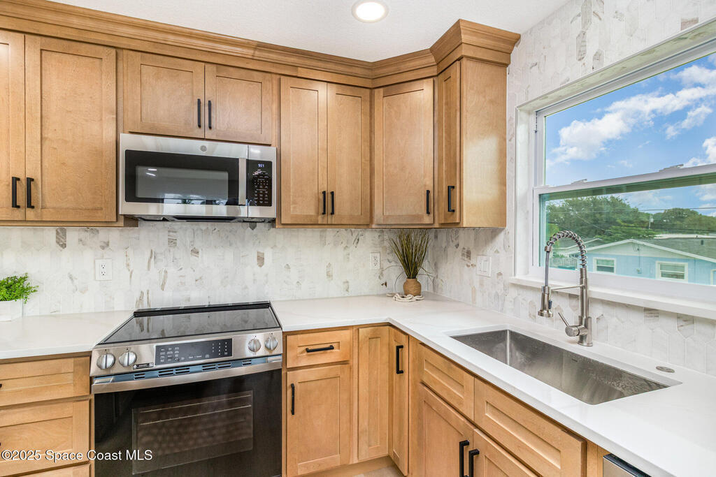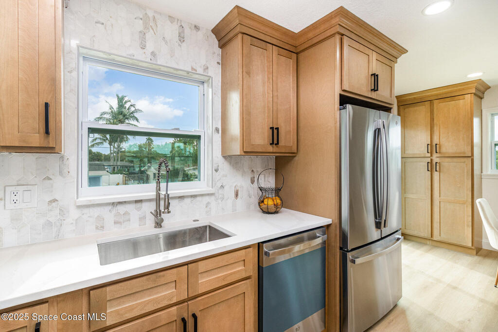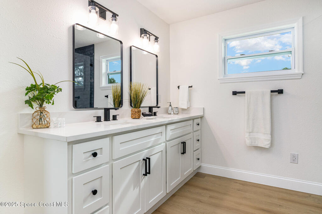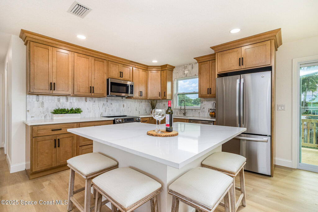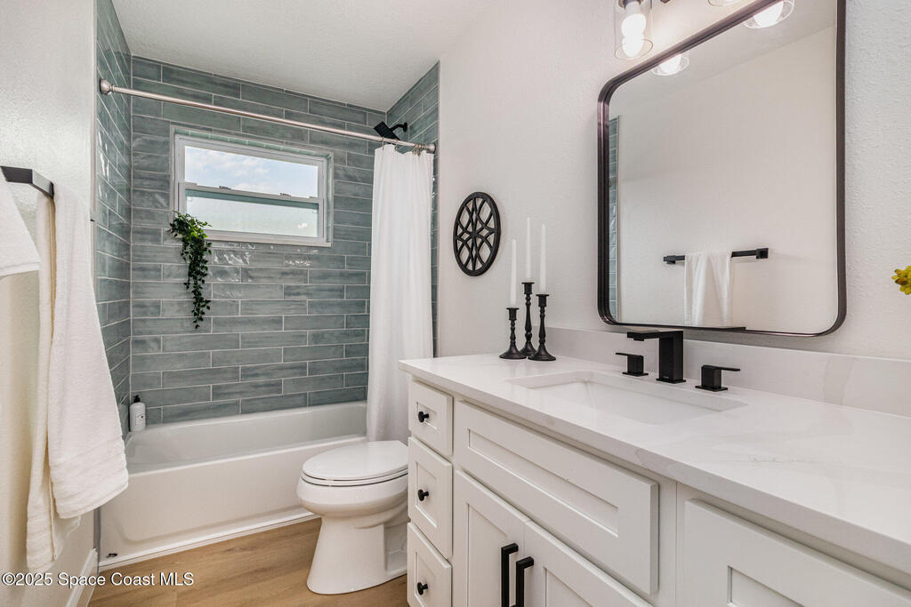 Beautifully renovated 4BR/3BA two-story pool home in desirable Indian Harbour Beach. Nearly every feature is new: impact-rated windows, slider, and garage doors; luxury vinyl plank flooring; soft-close kitchen cabinets with quartz countertops and new appliances; stylish fixtures; and updated tile showers in all baths. The spacious new master suite includes a completely redesigned bath with a modern shower. New plumbing (in & out), a new deck installed, and the irrigation system upgraded with a new valve for 100% functionality. Roof replaced 2022, HVAC 2024. Enjoy easy indoor-outdoor living with a sparkling pool and plenty of space to entertain. Located minutes from beaches, shopping, and top schools, this move-in-ready home blends coastal charm with worry-free updates throughout.