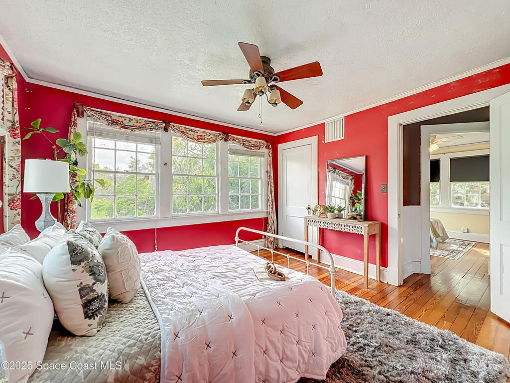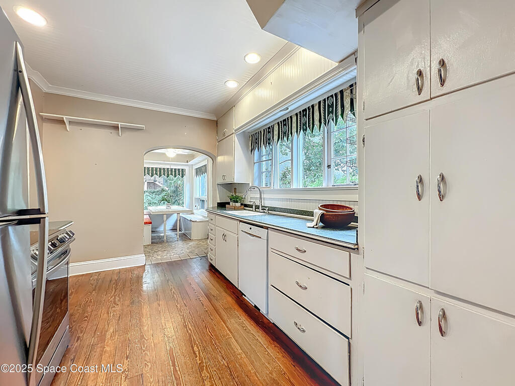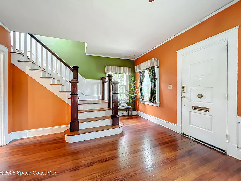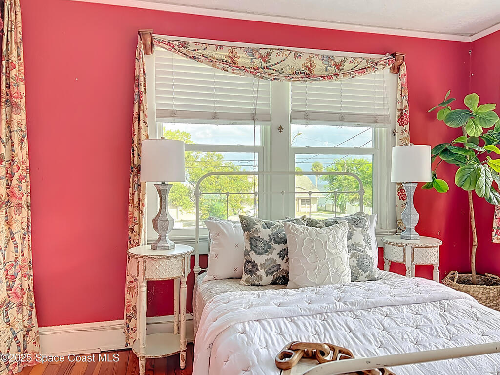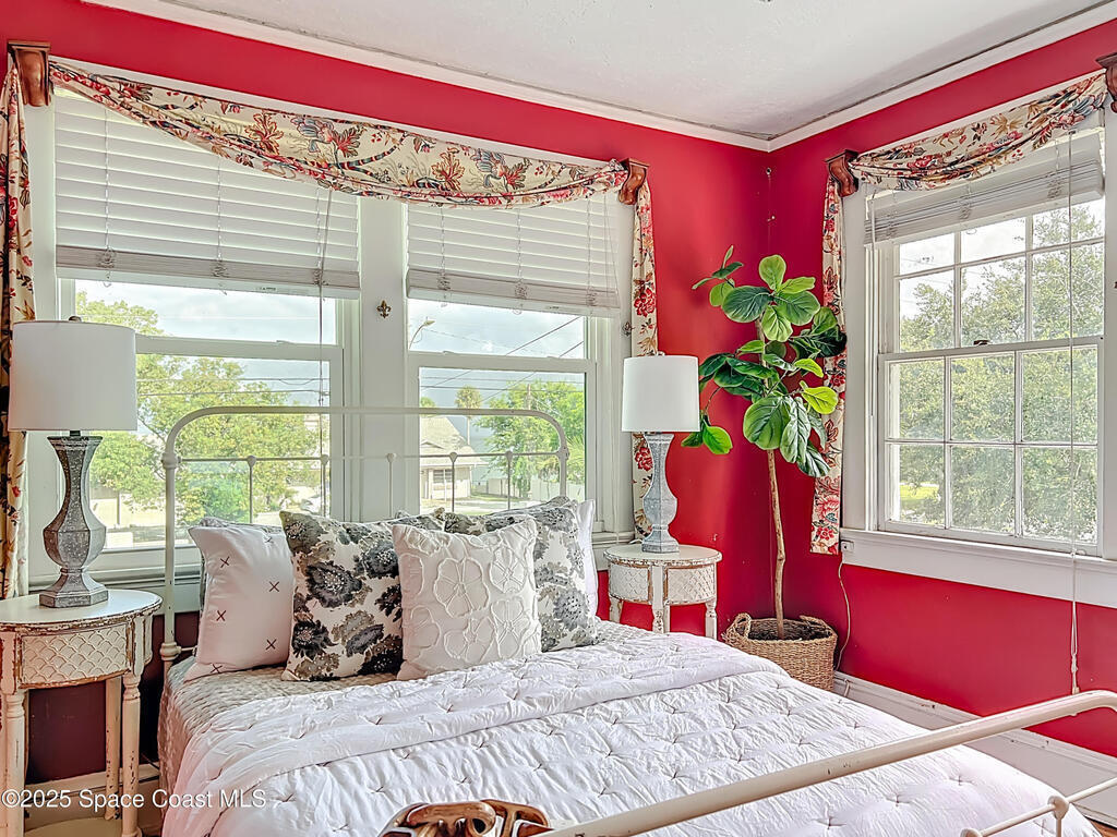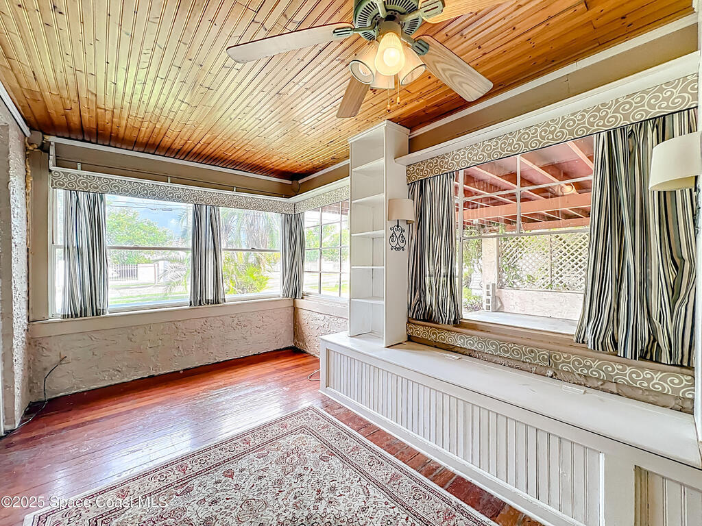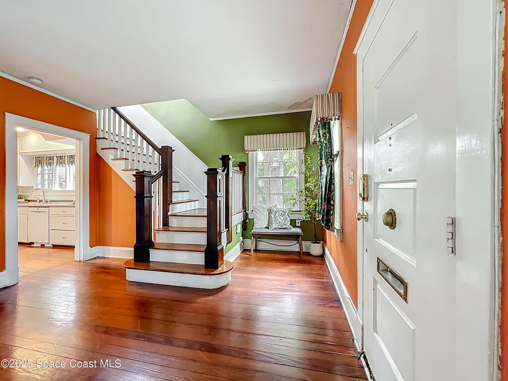 Discover timeless character in this 1945 concrete block residence, where original hardwood floors set a warm and inviting tone. The main level offers a comfortable living space that opens to a delightful kitchen with a sunny breakfast nook and an adjacent dining room overlooking the peaceful backyard. A full bathroom and a light-filled sunroom complete the downstairs, blending practicality with charm. Upstairs, you'll find three bedrooms and another full bathroom. Two of the bedrooms enjoy charming glimpses of the river, while hurricane-rated impact windows protect the eastern side of the home. The upstairs bathroom provides a spa-like retreat, offering a relaxing escape at the end of the day. Outside, the private backyard features an orange tree, towering timber bamboo, and a spacious shed with laundry facilities. Energy-efficient features add comfort while preserving the home's charming character. Don't miss the opportunity to make this classic home your own!