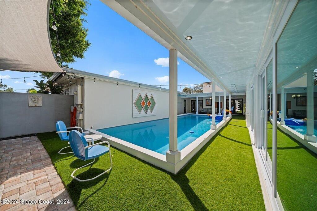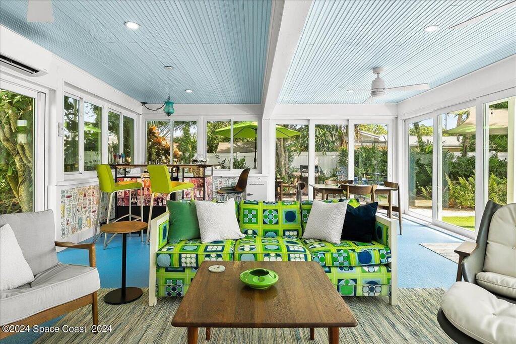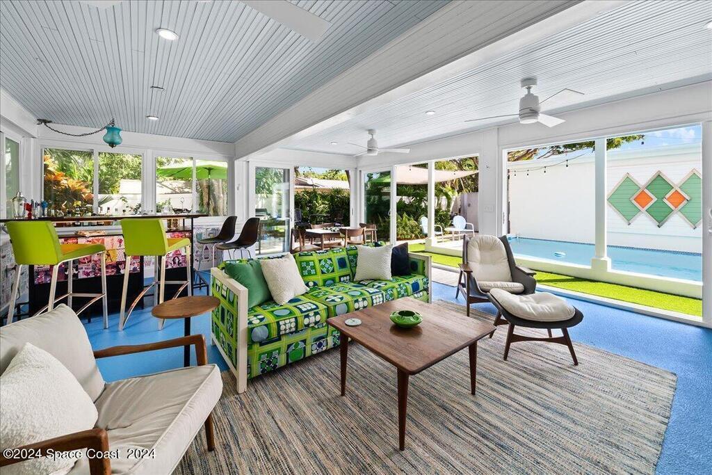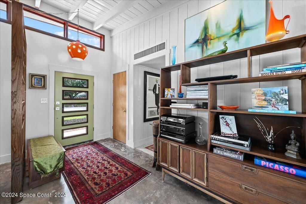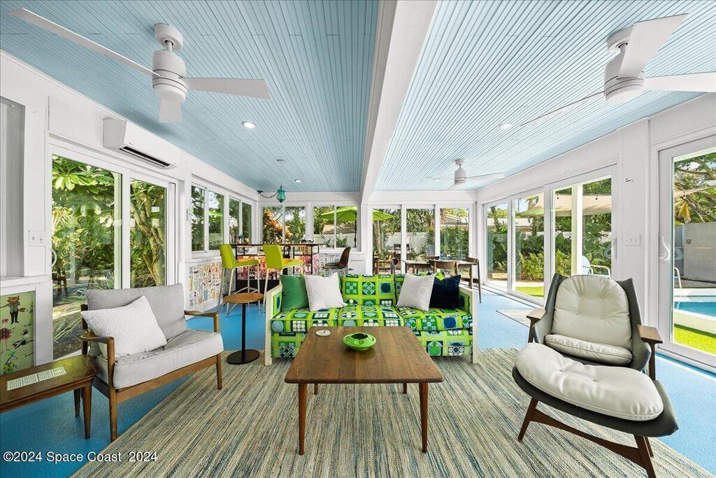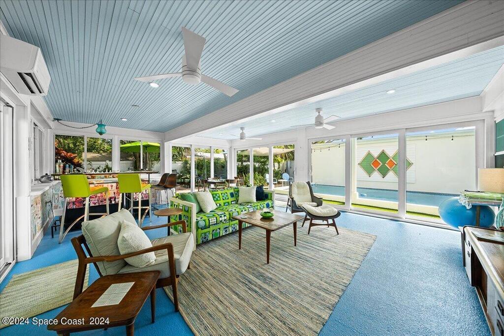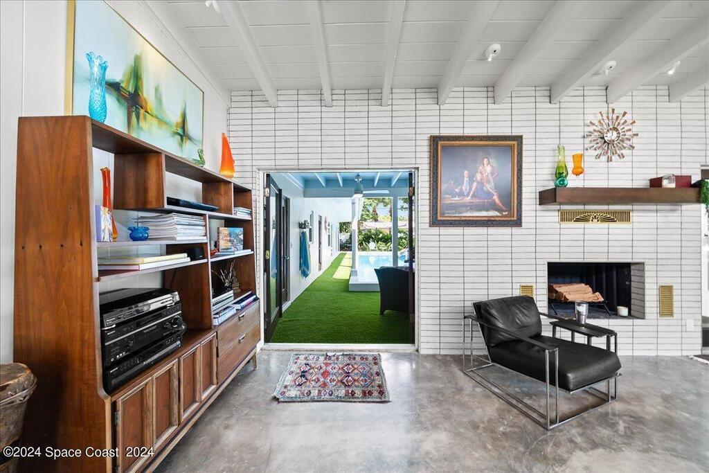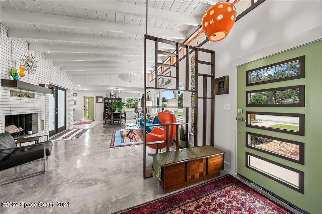 PRIICED BELOW APPRAISAL- ive the ultimate Space Coast lifestyle in this beautifully renovated mid-century modern home just steps from Indialantic's beaches, shops, and restaurants. Every detail has been thoughtfully upgraded over $300K in improvements while preserving the timeless character of terrazzo floors, vaulted ceilings, and a cozy fireplace. The chef's kitchen shines with quartz countertops, custom cabinetry, and a striking wine wall that doubles as art. Outdoors, unwind by the koi pond, take a dip in the resurfaced pool, or enjoy the spa-like outdoor shower after a beach day. The vibrant bonus room, affectionately that opens up to the pool is perfect for entertaining or family movie nights. With impact windows and doors, a newer roof, new plumbing and new electrical, this home offers peace of mind and versatility. Whether you're relocating, seeking a stylish retirement retreat, or craving a unique second home by the sea, you'll love the blend of modern comfort and