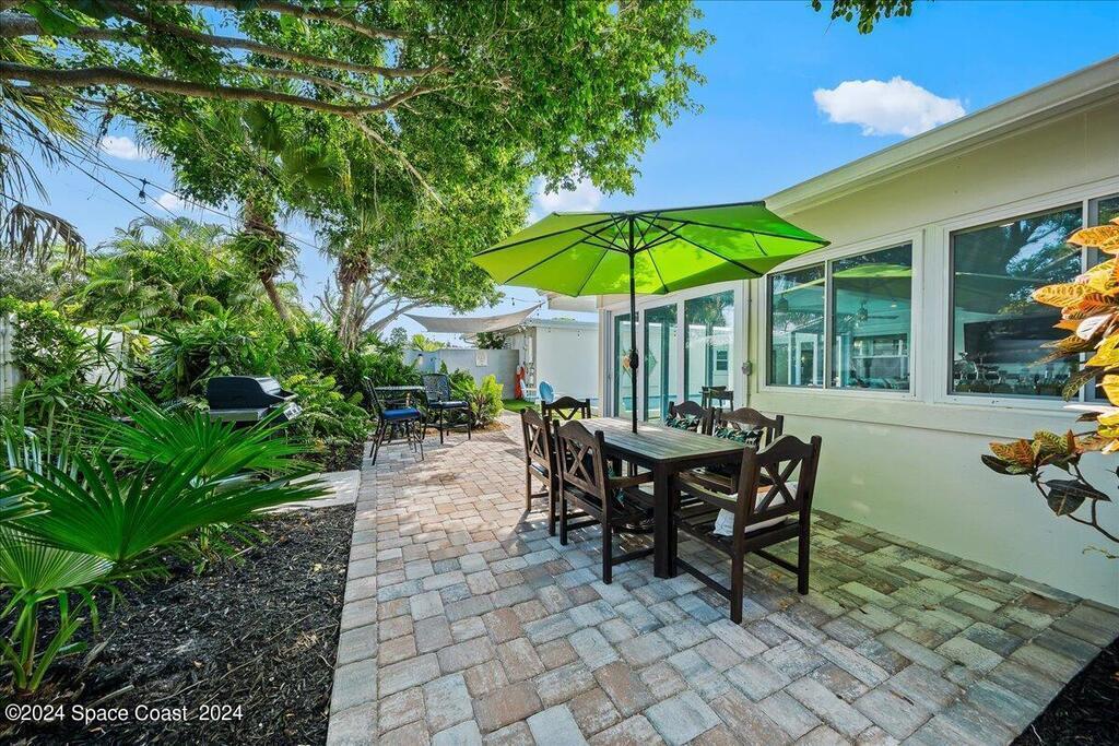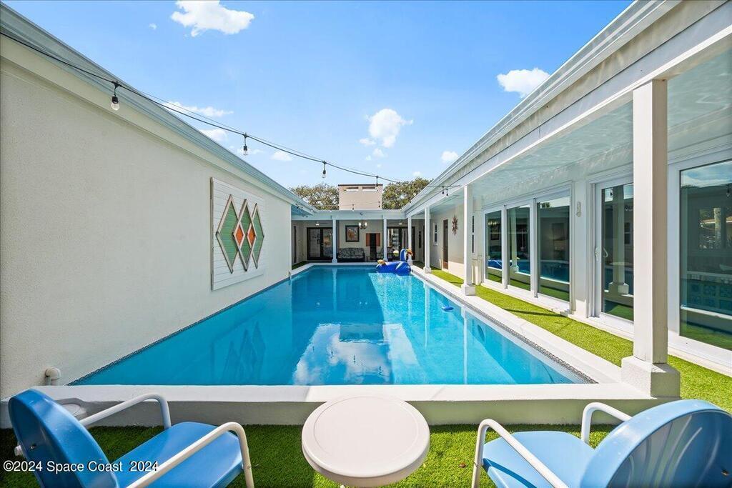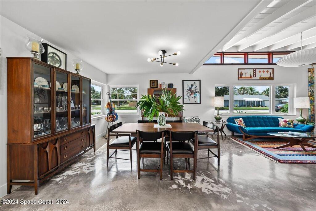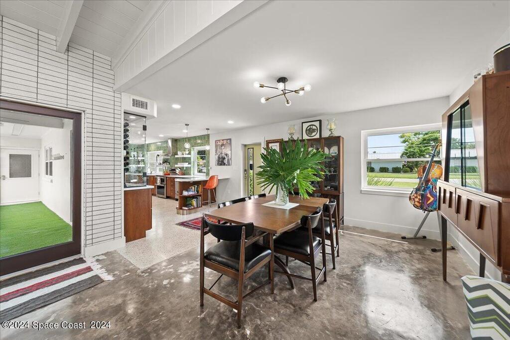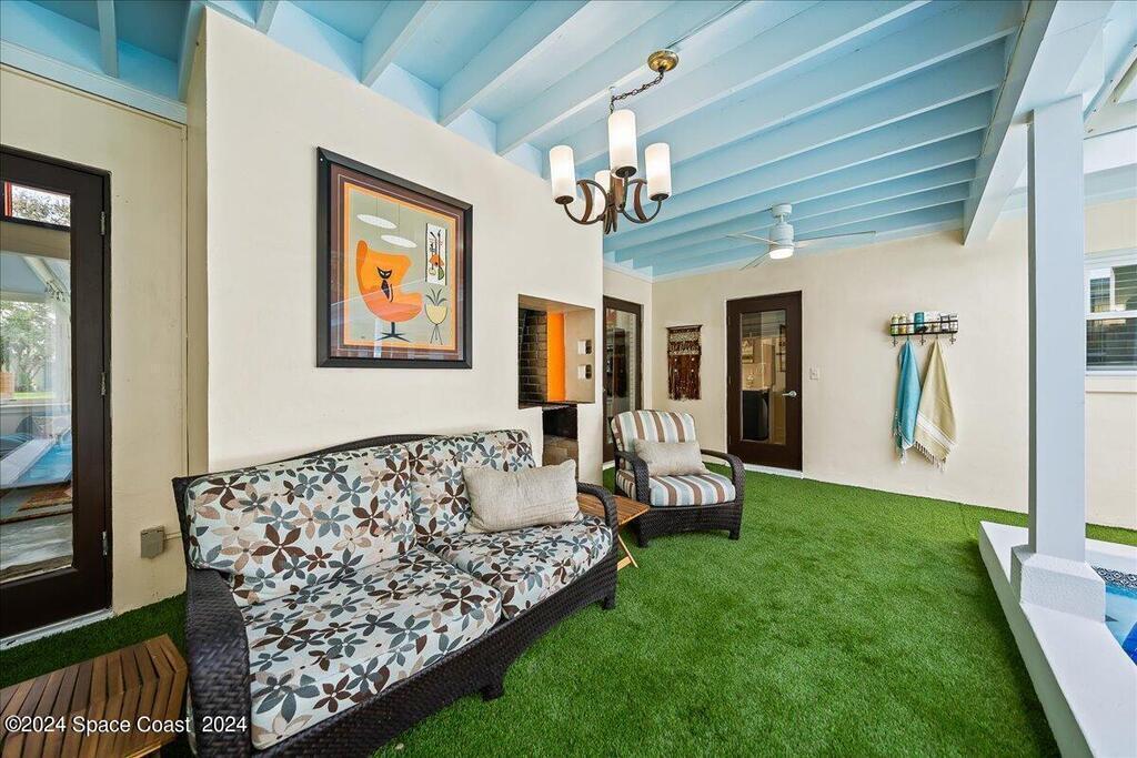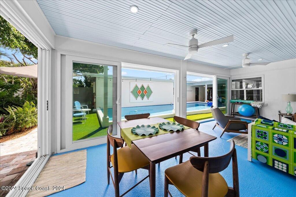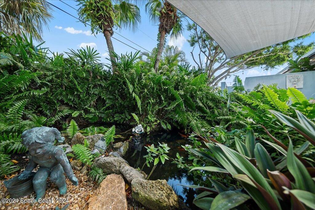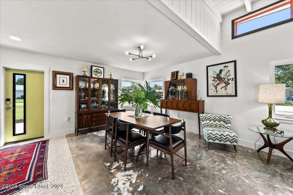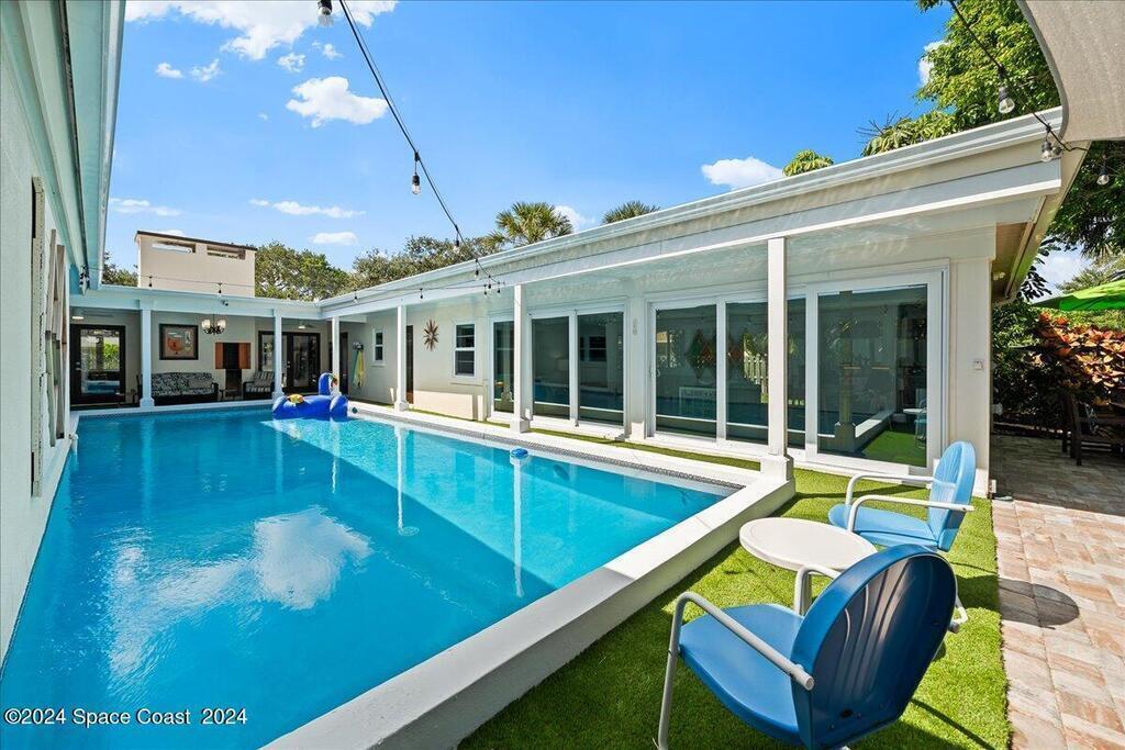 PRIICED BELOW APPRAISAL- ive the ultimate Space Coast lifestyle in this beautifully renovated mid-century modern home just steps from Indialantic's beaches, shops, and restaurants. Every detail has been thoughtfully upgraded over $300K in improvements while preserving the timeless character of terrazzo floors, vaulted ceilings, and a cozy fireplace. The chef's kitchen shines with quartz countertops, custom cabinetry, and a striking wine wall that doubles as art. Outdoors, unwind by the koi pond, take a dip in the resurfaced pool, or enjoy the spa-like outdoor shower after a beach day. The vibrant bonus room, affectionately that opens up to the pool is perfect for entertaining or family movie nights. With impact windows and doors, a newer roof, new plumbing and new electrical, this home offers peace of mind and versatility. Whether you're relocating, seeking a stylish retirement retreat, or craving a unique second home by the sea, you'll love the blend of modern comfort and