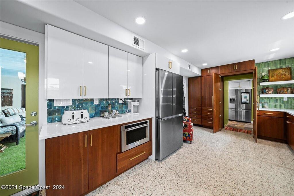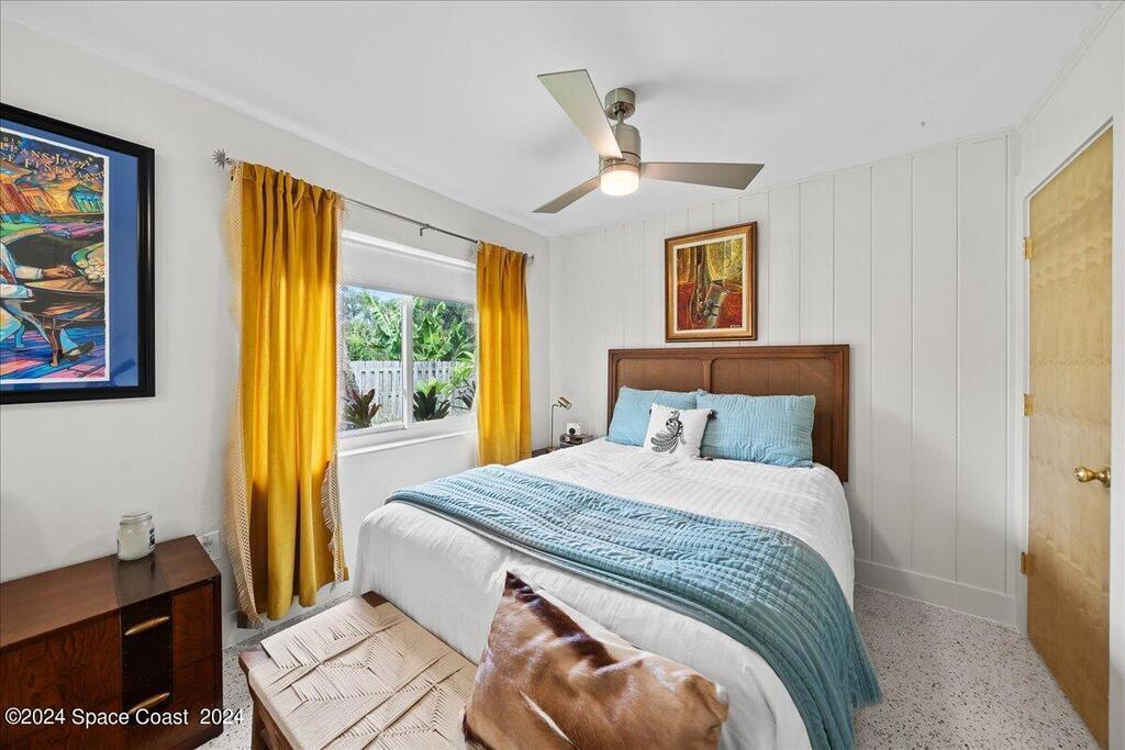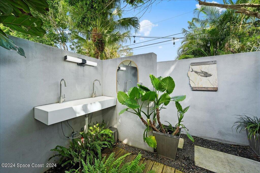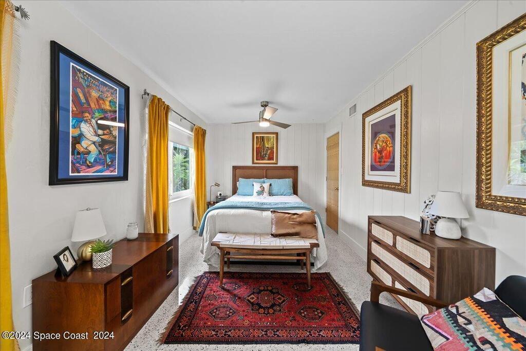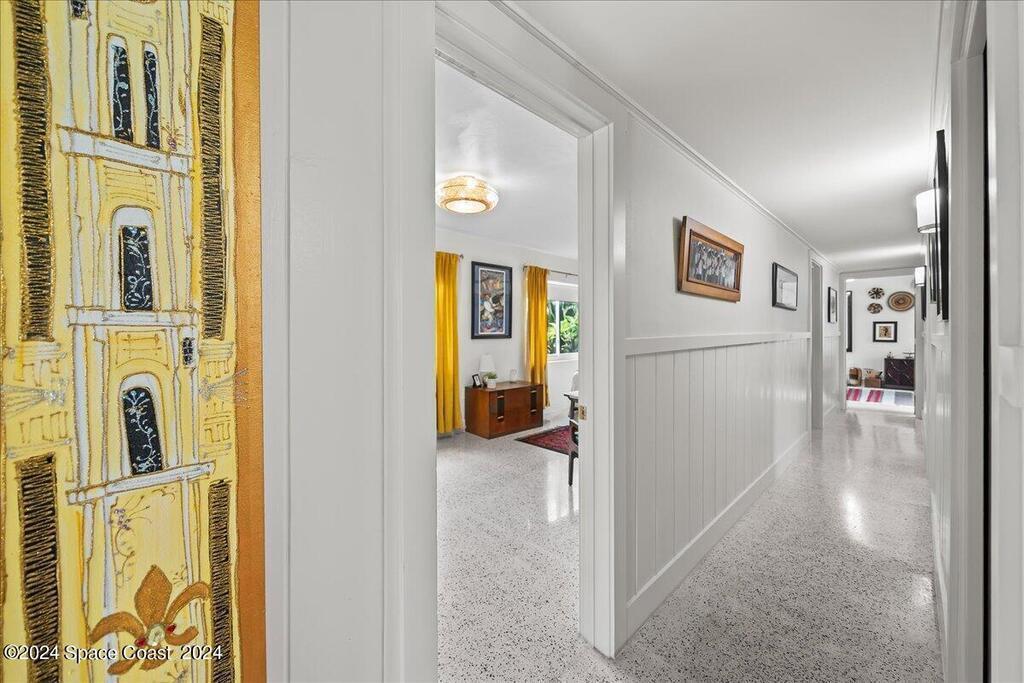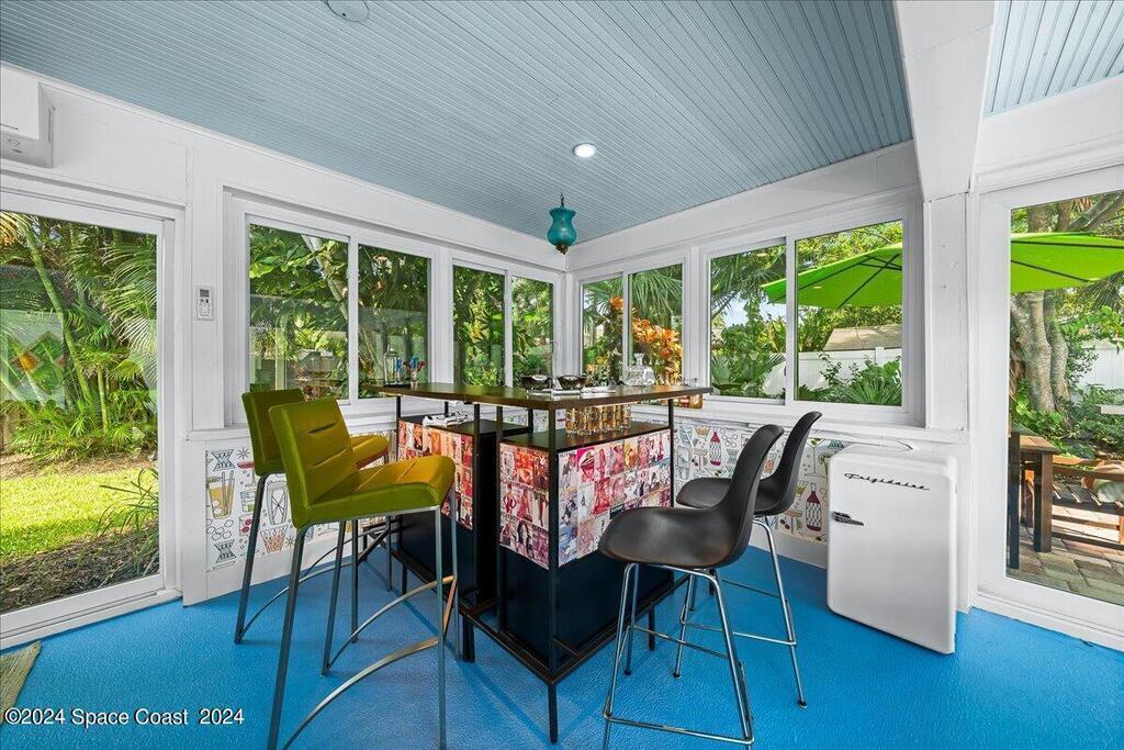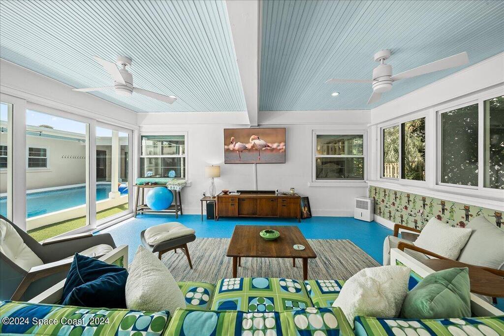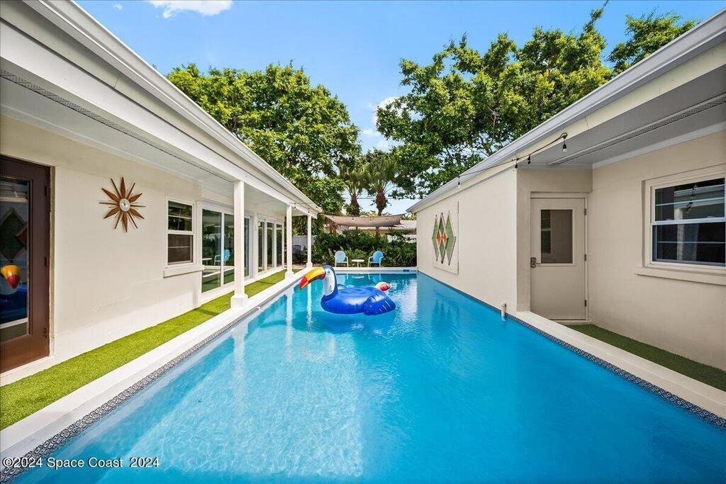 PRIICED BELOW APPRAISAL- ive the ultimate Space Coast lifestyle in this beautifully renovated mid-century modern home just steps from Indialantic's beaches, shops, and restaurants. Every detail has been thoughtfully upgraded over $300K in improvements while preserving the timeless character of terrazzo floors, vaulted ceilings, and a cozy fireplace. The chef's kitchen shines with quartz countertops, custom cabinetry, and a striking wine wall that doubles as art. Outdoors, unwind by the koi pond, take a dip in the resurfaced pool, or enjoy the spa-like outdoor shower after a beach day. The vibrant bonus room, affectionately that opens up to the pool is perfect for entertaining or family movie nights. With impact windows and doors, a newer roof, new plumbing and new electrical, this home offers peace of mind and versatility. Whether you're relocating, seeking a stylish retirement retreat, or craving a unique second home by the sea, you'll love the blend of modern comfort and