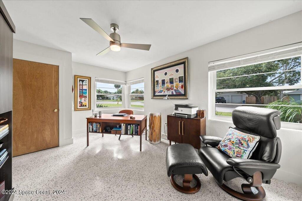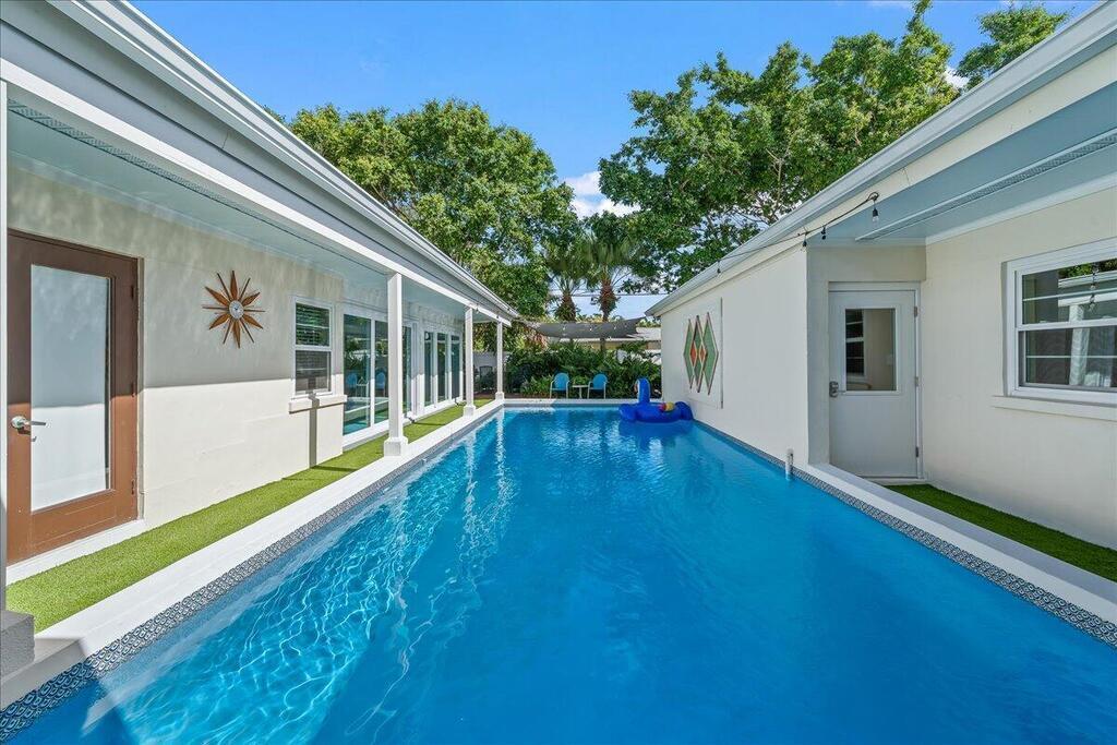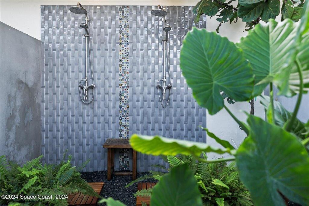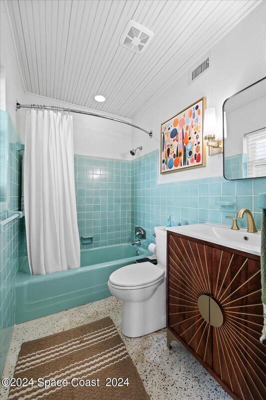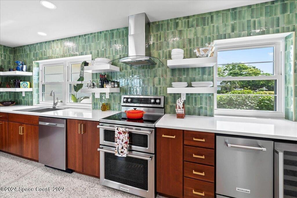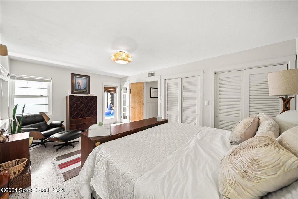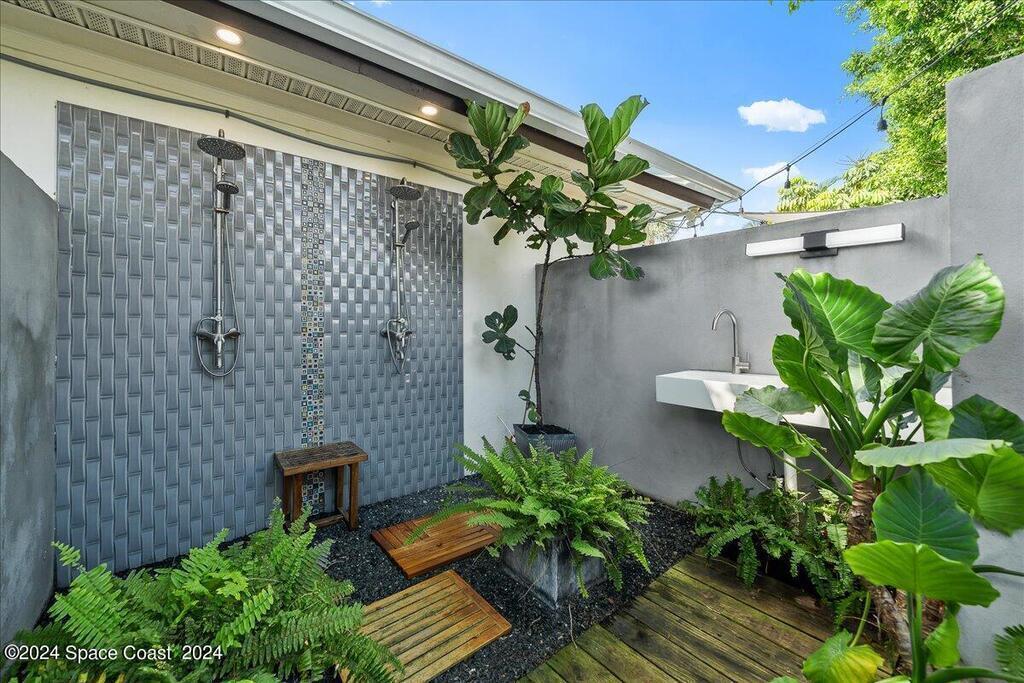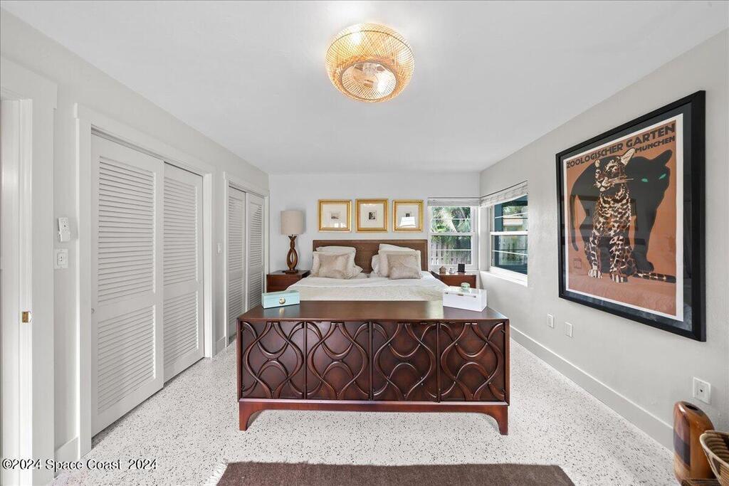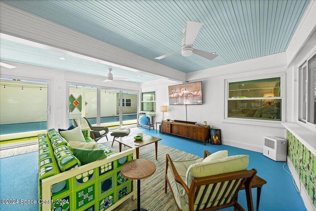 PRIICED BELOW APPRAISAL- ive the ultimate Space Coast lifestyle in this beautifully renovated mid-century modern home just steps from Indialantic's beaches, shops, and restaurants. Every detail has been thoughtfully upgraded over $300K in improvements while preserving the timeless character of terrazzo floors, vaulted ceilings, and a cozy fireplace. The chef's kitchen shines with quartz countertops, custom cabinetry, and a striking wine wall that doubles as art. Outdoors, unwind by the koi pond, take a dip in the resurfaced pool, or enjoy the spa-like outdoor shower after a beach day. The vibrant bonus room, affectionately that opens up to the pool is perfect for entertaining or family movie nights. With impact windows and doors, a newer roof, new plumbing and new electrical, this home offers peace of mind and versatility. Whether you're relocating, seeking a stylish retirement retreat, or craving a unique second home by the sea, you'll love the blend of modern comfort and