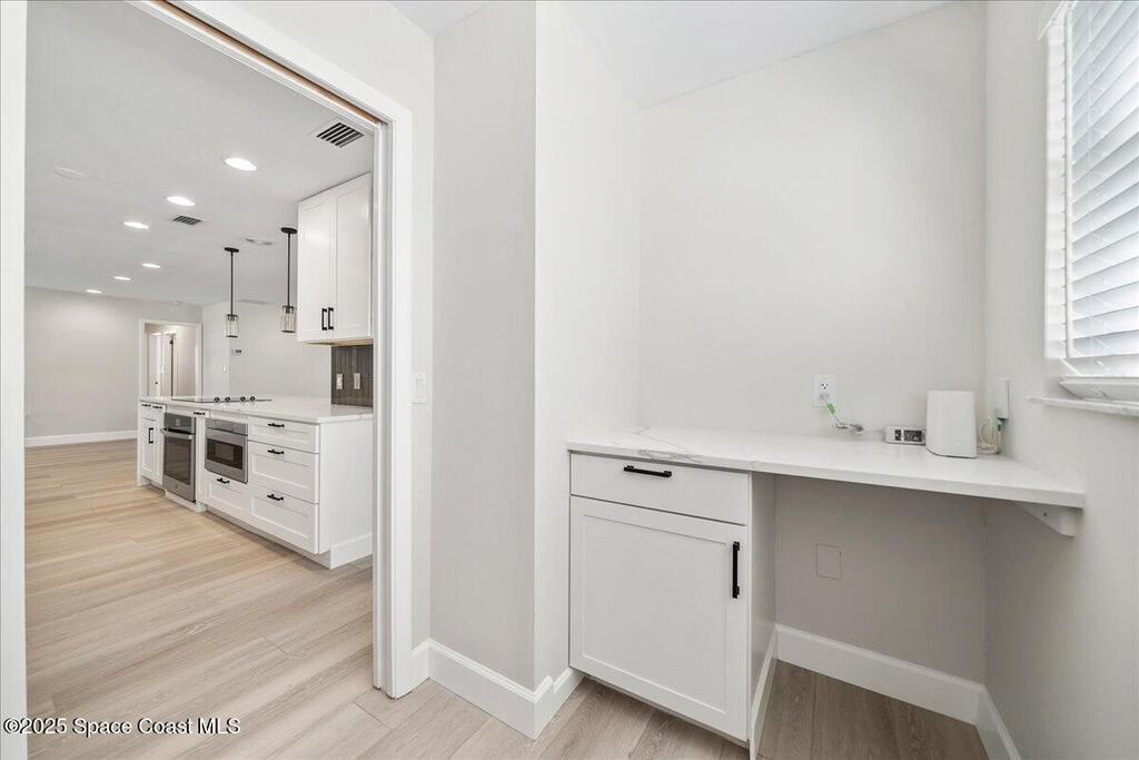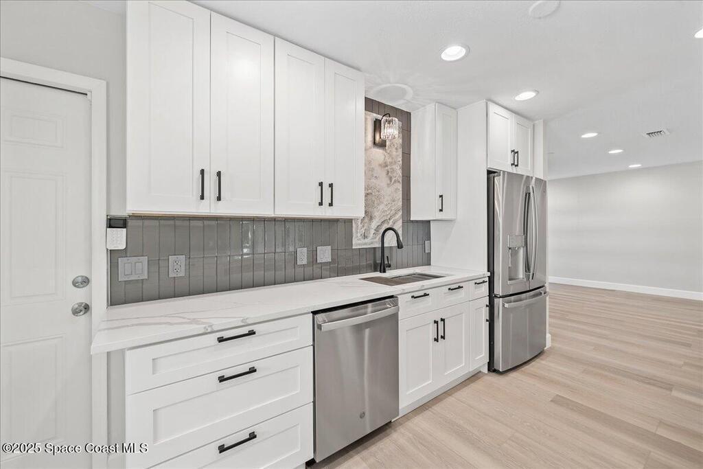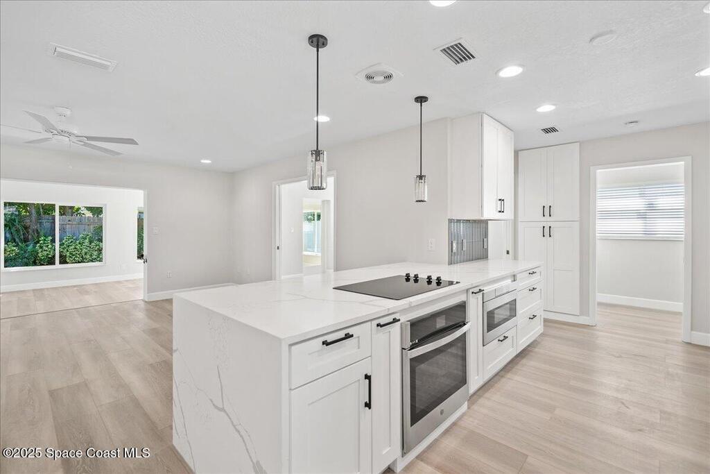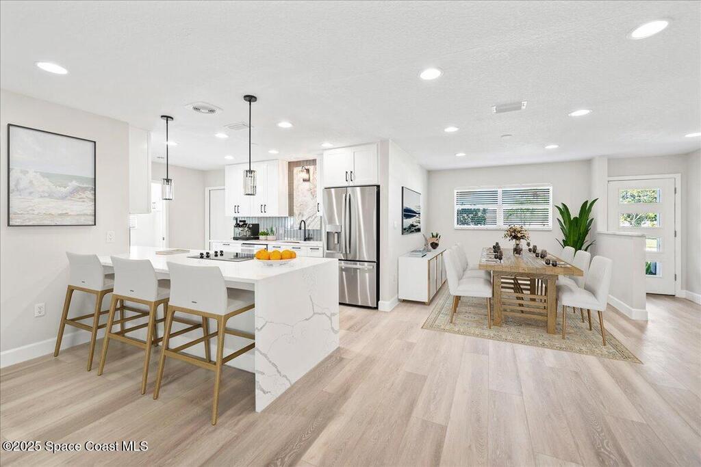 Nestled close to A-rated schools and great dining and shopping, this beautifully updated residence is designed for modern, comfortable living. The home features luxury vinyl flooring, recessed lighting and a gourmet kitchen with quartz countertops, tile backsplash, stainless steel appliances and a breakfast bar. A large flex room offers versatile space for an office, dining area or playroom. The primary suite includes a walk-in closet, dual vanities and a walk-in shower. Additional highlights include a laundry room with quartz folding table, epoxy-coated garage floor with stainless sink. With a new roof (2022), A/C (2023) and whole-house replumbing supply lines (2022), enjoy stress-free living. The outdoors impresses with a screened porch, THOR summer kitchen, pergola with fire pit and private side gate for RV or boat storage, all set on a professionally landscaped, low-maintenance yard.