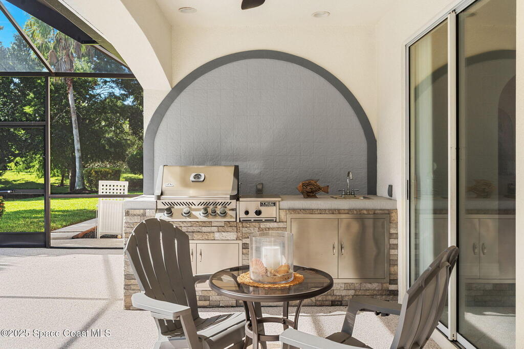 - Exterior FeaturesBalcony, Outdoor Kitchen and Storm Shutters
