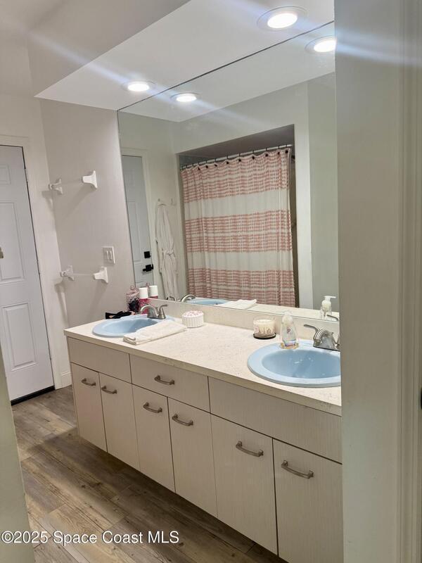 Indian Harbour Beach's most desirable neighborhoods, 3 beds, 2 bath pool home with open layout and tall vaulted ceiling brings all the modernity desired for today's living. Open kitchen to living and dining areas. Primary suite with access to trussed back patio and pool. Large bath floorplan has great potential for a large separate tub and shower bath suite. Modern split-bedroom layout with generous sized bedrooms. Huge covered porch overlooking the pool/privacy fenced backyard spacious and private for entertaining or just relaxing in the shade for year-round Florida living. Indoor laundry room and oversized 2 car garage for tons of storage. Quiet Cul de sac location with no HOA means happiness. Walk to town and quick 5-minute ride to beaches and parks. Upgrades include, new paint inside and out. 2 new impact rated windows and skylight and lighting. Hurricane panels. New roof 2019, pool pump 2025.
