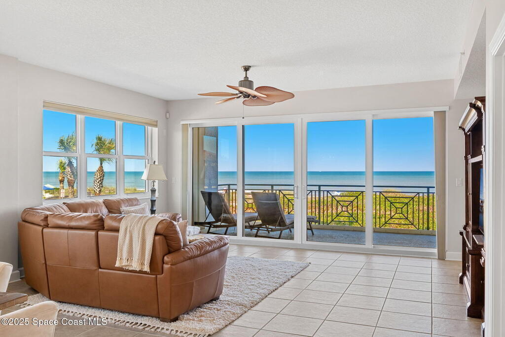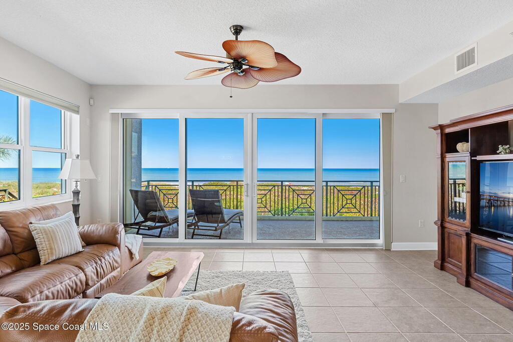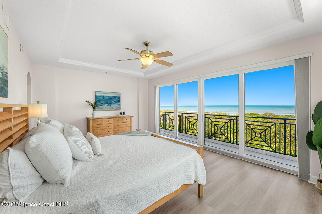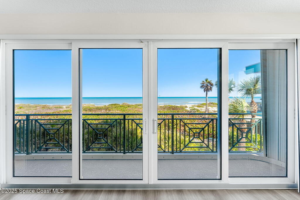This rare, full-floor residence offers 2,946 square feet of luxury within a boutique six-unit building. The unparalleled coastal living on the Space Coast in this exquisite oceanfront condo at Riomar where exclusivity meets timeless elegance.This spacious residence features three bedrooms, each with its own ensuite bath, plus an additional guest bathroom.Enjoy 360-degree panoramic views with unforgettable sunrises over the Atlantic Ocean and stunning sunsets over the Indian River.Located on the second floor with private elevator access, this freshly painted residence welcomes you with a beautifully updated interior, including new flooring in all bedrooms. The open-concept layout is anchored by a generous kitchen with custom wood cabinetry, granite countertops, and ample space for entertaining or relaxing in comfort.All doors and windows are hurricane impact-rated throughout. The windows are fitted with electric roll-down shutters,