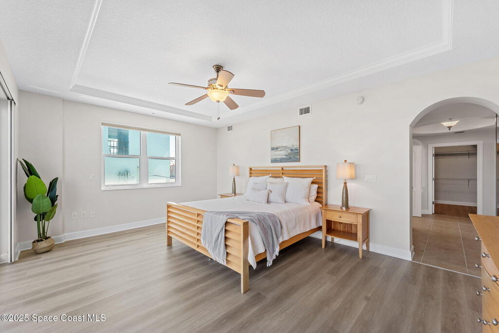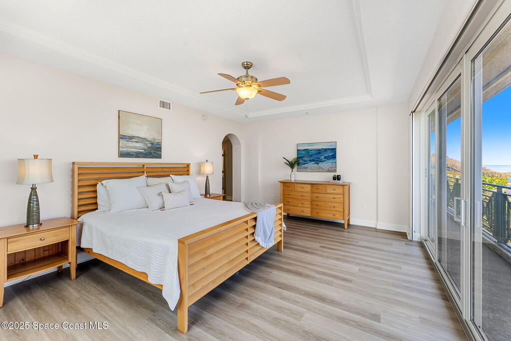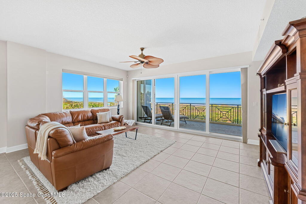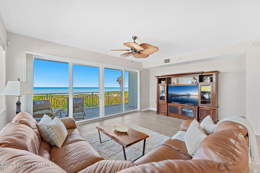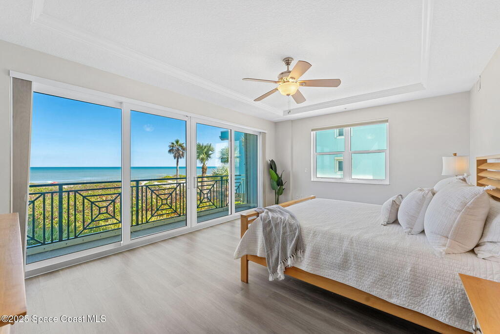 This rare, full-floor residence offers 2,946 square feet of luxury within a boutique six-unit building. The unparalleled coastal living on the Space Coast in this exquisite oceanfront condo at Riomar where exclusivity meets timeless elegance.This spacious residence features three bedrooms, each with its own ensuite bath, plus an additional guest bathroom.Enjoy 360-degree panoramic views with unforgettable sunrises over the Atlantic Ocean and stunning sunsets over the Indian River.Located on the second floor with private elevator access, this freshly painted residence welcomes you with a beautifully updated interior, including new flooring in all bedrooms. The open-concept layout is anchored by a generous kitchen with custom wood cabinetry, granite countertops, and ample space for entertaining or relaxing in comfort.All doors and windows are hurricane impact-rated throughout. The windows are fitted with electric roll-down shutters,