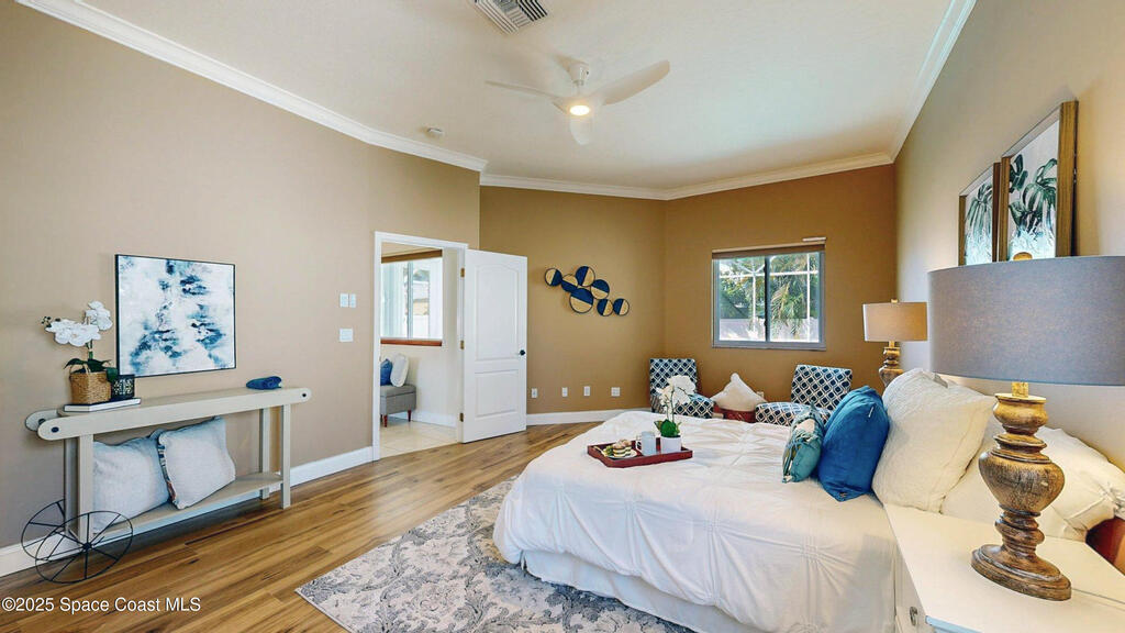 Welcome to your dream coastal retreat! This completely updated, move-in-ready single-family home is ideally situated on a beautifully landscaped corner lot in the heart of Cocoa Beach, just a short walk to the sand and surf.Step inside to discover a bright, open floor plan with soaring cathedral ceilings, filling the home with natural light and spaciousness. The gourmet kitchen is a chef's paradise, featuring luxurious quartz countertops, custom cabinetry, and top-of-the-line Viking gas appliances - perfect for entertaining or everyday living.Enjoy cozy evenings by the elegant electric fireplace, and rest easy with the peace of mind provided by a whole-home generator--ready for any Florida weather.Outdoors, escape to your private oasis with a screened-in saltwater pool, surrounded by lush, mature tropical landscaping that offers beauty and privacy. Whether you're relaxing poolside or hosting guests, this home blends comfort and style effortlessly.