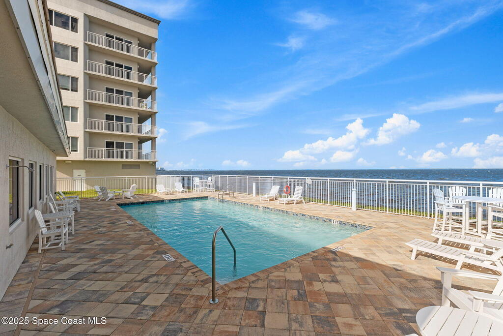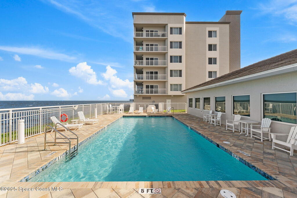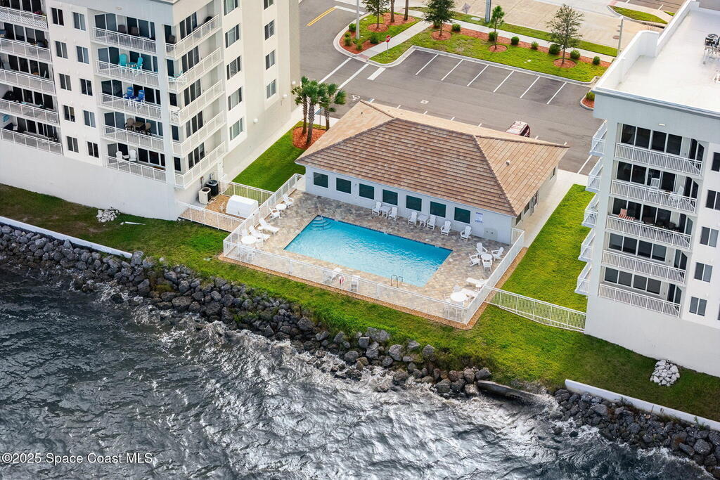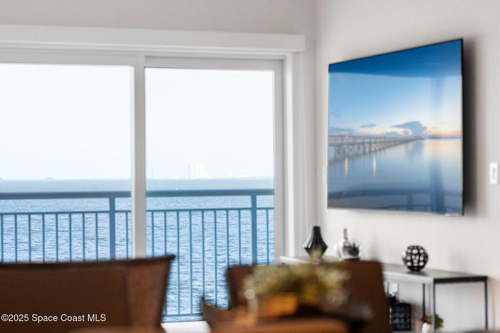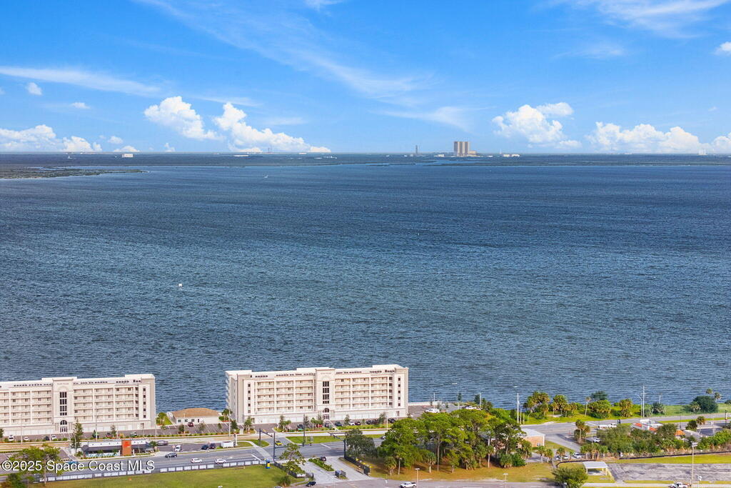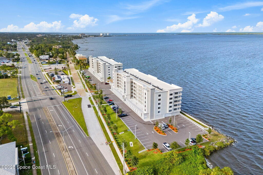 Luxury River Palms Riverfront Community on Florida's prestigious Space Coast in Titusville! Exquisite furnished Waterfront condo with breathtaking sunrises above the Indian River and views to spectacular rocket launches, and dolphins and manatees playing right beneath your balcony. Features gourmet kitchen with premium cabinetry and fixtures, oversized countertops, marble mosaic and high-end appliances. Upgraded bathrooms and laundry include designer cabinets, sinks and fixtures. Offered furnished with exquisite taste, featuring interiors from Ethan Allen, Scan Design, West Elm, Pottery Barn, CB2, and Tempur-Pedic. Includes two covered parking spaces (#11 indoor and #56 private garage). Minutes commute to Kennedy Space Center; walking distance to Titus Landing shopping, dining, and entertainment. Move into your gorgeous new Space Coast home just in time to witness history with the upcoming Artemis II Launch!