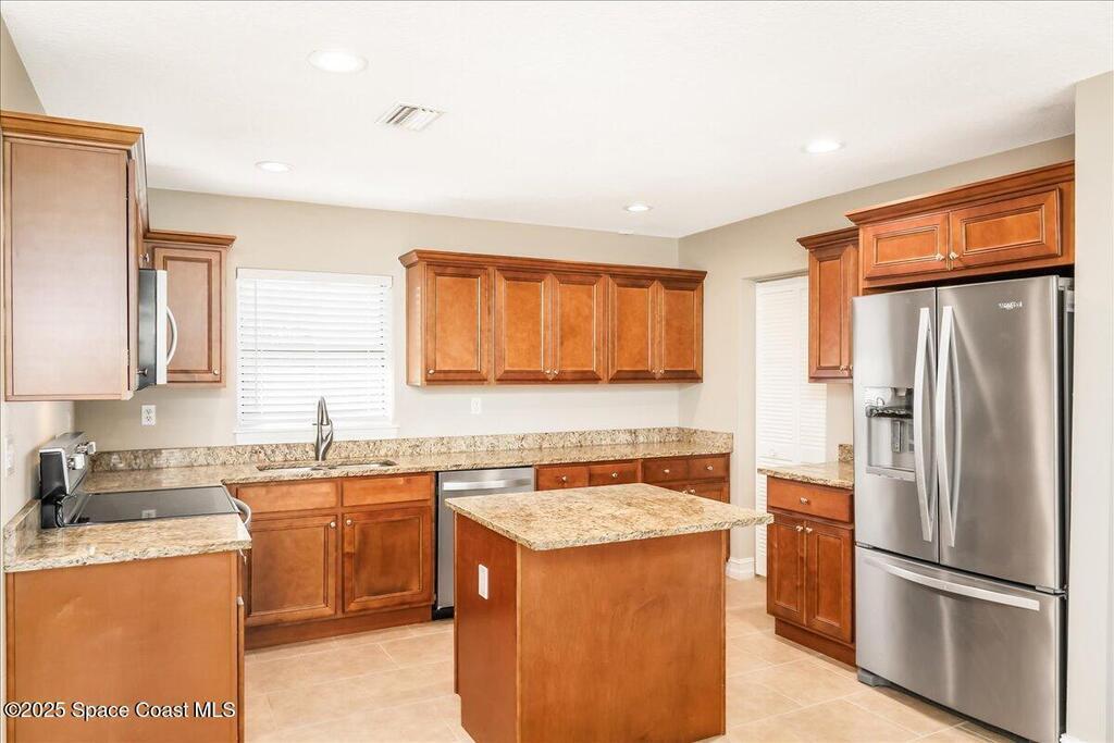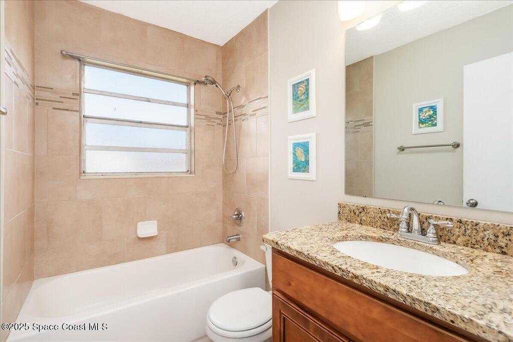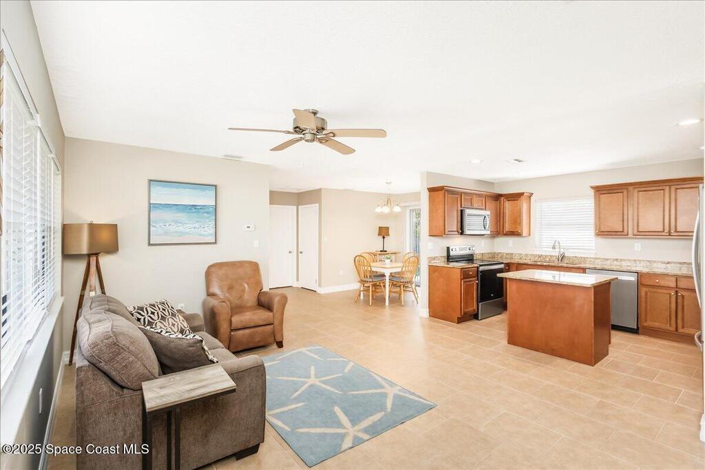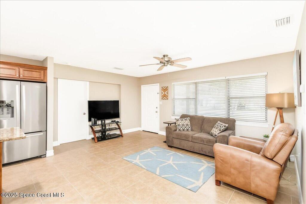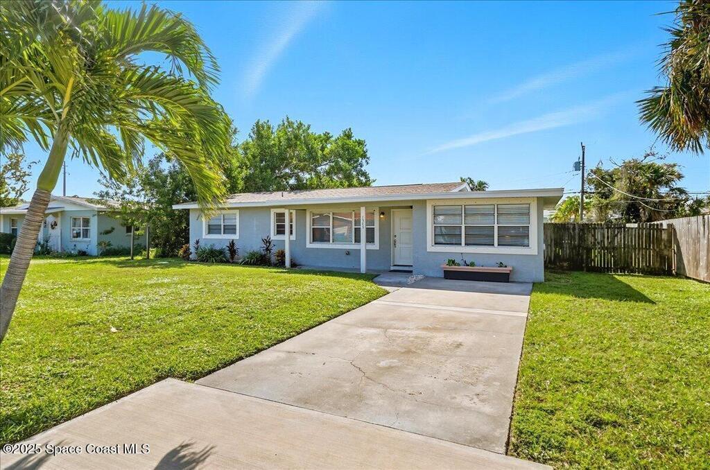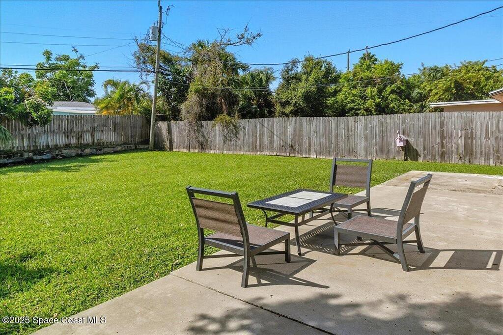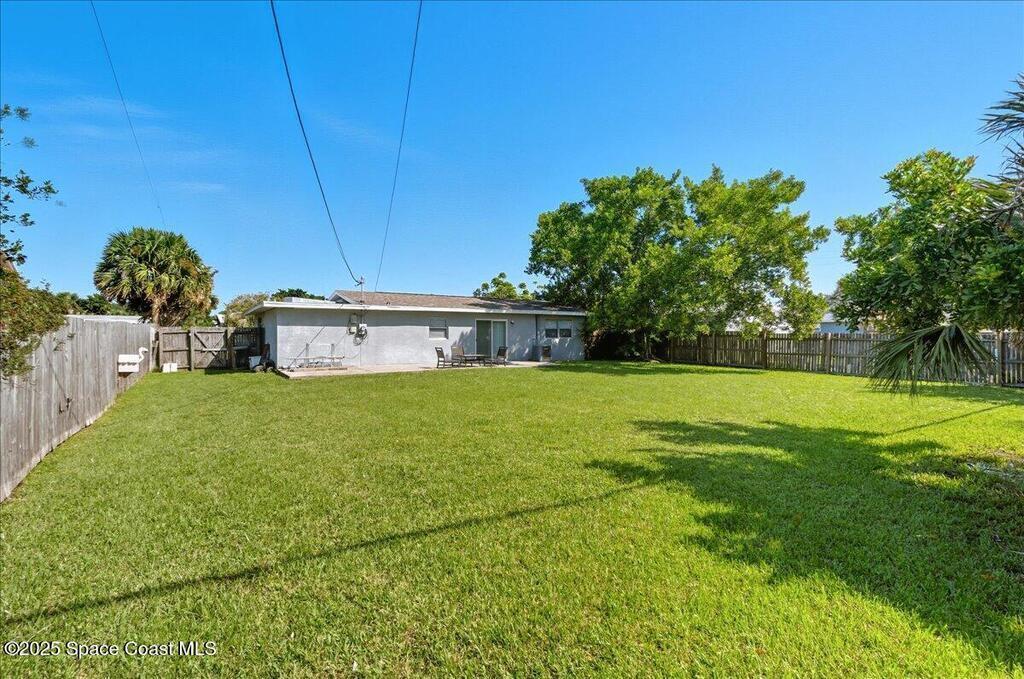 Move-in ready and minutes from the beach, river, and Port Canaveral! This updated Merritt Island home offers 3 spacious bedrooms, 2 baths, an open split floor plan, tile throughout for easy maintenance, and a fenced backyard with room to play--plus space to park your boat or RV! The remodeled kitchen shines with 42'' wood cabinets, granite counters throughout, an kitchen island, and stainless appliances. Major updates include full renovation (2016), roof (2017), flat roof portion (8/24), AC capacitor replaced (8/25), heating strip replaced (1/25), and tankless water heater (8/25) for energy savings. Sliding glass door to be replaced 10/25. Interior laundry room w/washer & dryer included and hurricane panels for additional peace of mind! Don't hesitate to view this amazing Merritt Island home at an incredible price before it's too late! Schedule your private showing today!