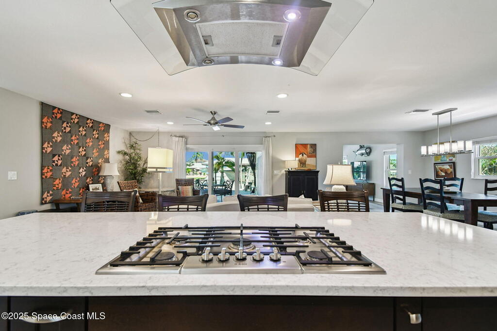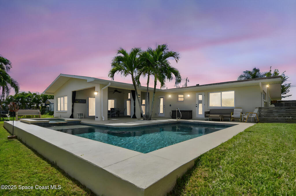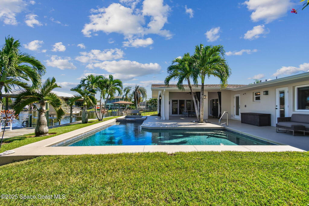 Exceptional Waterfront Living.Perfectly situated on one of the most sought-after streets in Cocoa Beach, this beautifully remodeled (to the studs in 2016) waterfront home blends luxury, comfort, and coastal living at its finest.Includes two primary suites, two spacious living areas, and an open kitchen with a gas cooktop, perfect for entertaining or everyday living. Tile and COREtec luxury vinyl floors flow throughout the home, which includes a mudroom, dining room, pantry, and laundry area with a pool-access bath for convenience.Outside is a private paradise featuring a gas heated saltwater pool, spa, covered dock, and boat lift - just moments from open water. Whether boating, relaxing by the pool, or enjoying a sunrise, this home captures true waterfront living.Close to downtown, golf, and top-rated schools, this home combines community and convenience. Move in with confidence and experience the best of waterfront living!
