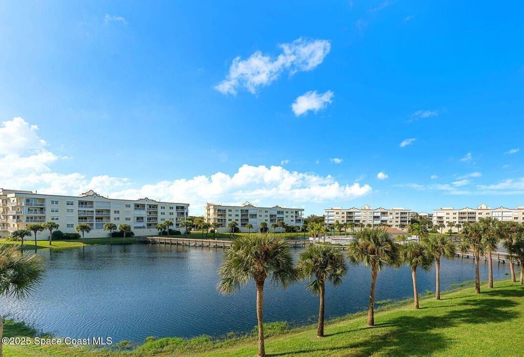 Premium corner unit offering the best location & view in Solana Lake with no neighboring building to block your view. Enjoy sweeping views of the lake, resort-style pool, & open sky from your expansive wraparound balcony. Thoughtfully enhanced over the past few years, this beautifully maintained condo features impact doors in the office & breakfast area, impact windows in both bedrooms & dining room, & a new shutter system around the patio. Wood flooring extends through the living areas, office, & bedrooms, while the kitchen & baths showcase updated counters & tile flooring. Additional updates include a new microwave & plantation shutters throughout (2024), plus a new A/C installed in 2025; the second unit, installed in 2017, remains under warranty for two more years. The open layout connects the kitchen, dining, & living spaces, creating a bright coastal feel. The primary suite has views of the balcony & includes a large walk-in closet, garden tub, & separate shower.