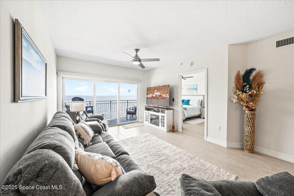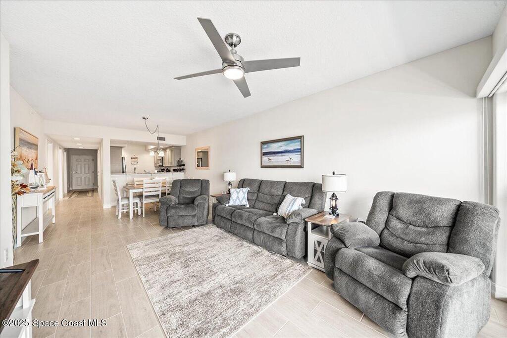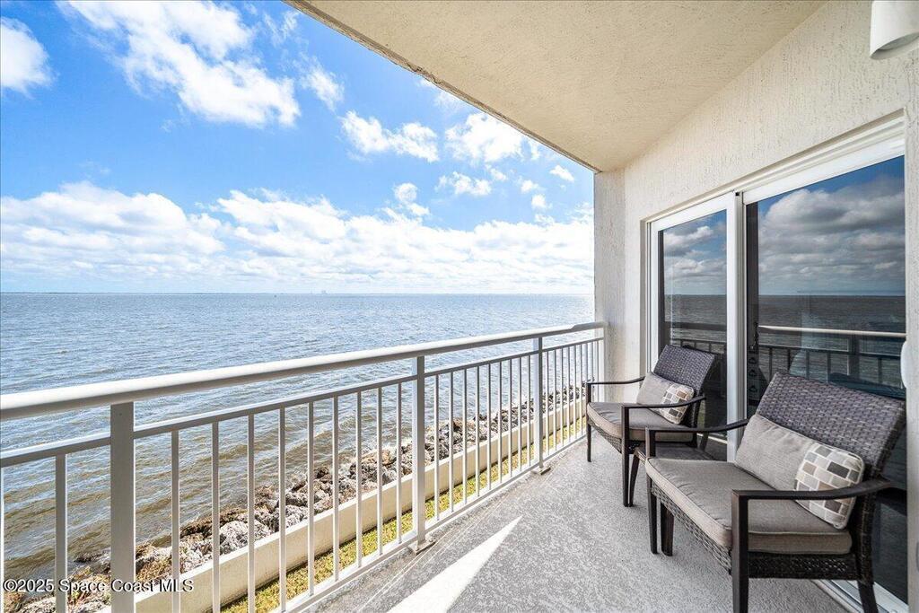 2 DEDICATED PARKING SPOTS Welcome to River Palms -- a newer riverfront 3-bedroom, 2-bath condo offering the perfect blend of luxury and coastal tranquility. This residence features an upgraded kitchen with solid surface counters, stainless steel appliances, and rich wood shaker cabinetry. Wood-like tile flows seamlessly throughout, complemented by impact windows for peace of mind and energy efficiency. Enjoy both a semi-private garage space and an additional assigned under-building parking spot. From your balcony, take in breathtaking river views, rocket launches, and daily sightings of dolphins and manatees right outside your door -- the ultimate Florida waterfront lifestyle. Furnishings are included, turn key unit. Complete with community salt water pool and clubhouse right on the river. Close to shopping, restaurants and major highways.