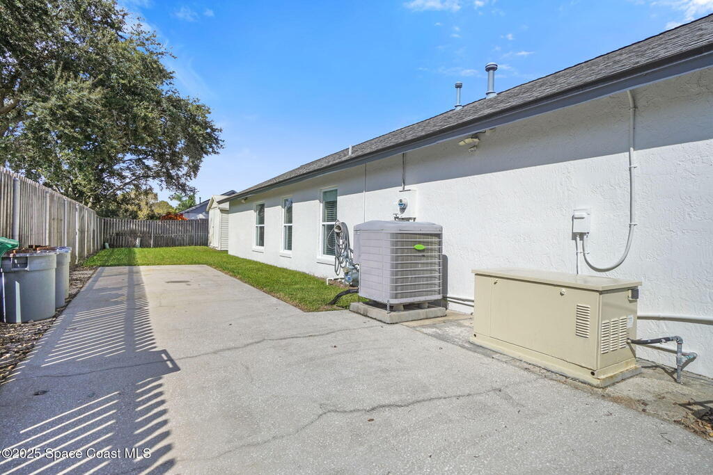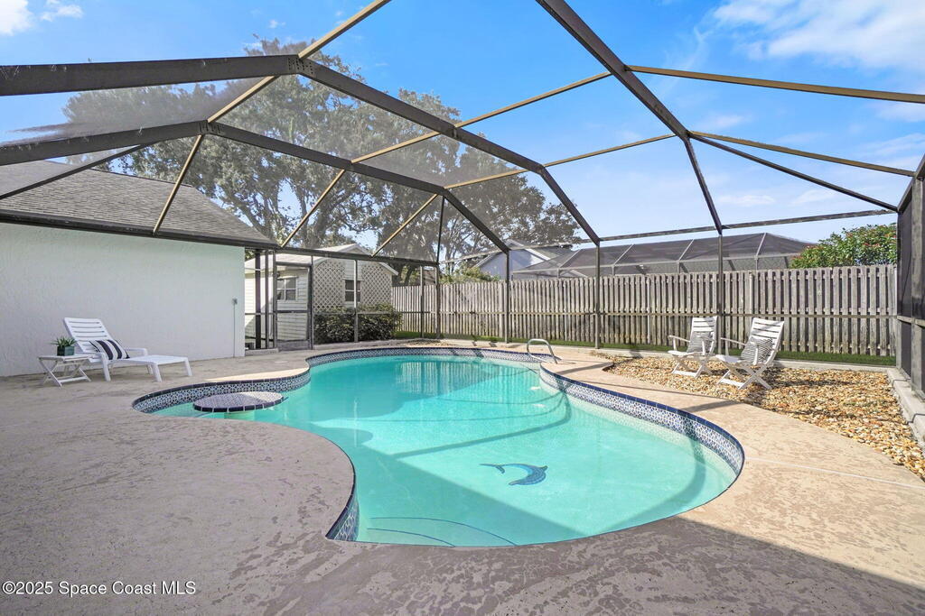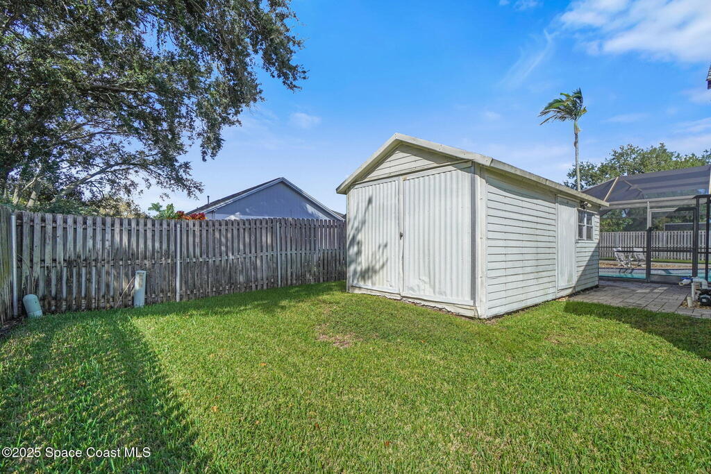 **Price Improvement**Welcome to this stylish Melbourne pool home with an outdoor Oasis! Beautifully maintained 4-bed, 2-bath home featuring a bright split floor plan and thoughtful upgrades throughout. Enjoy a sparkling screened pool with covered patio, perfect for relaxing or entertaining. A 9x40 concrete slab offers ideal RV or boat parking, while a 10x20 shed adds extra storage for tools or hobbies. The 80-ft well supplies irrigation and pool refills, and the Generac generator provides peace of mind for most items in the home year-round. Inside, find a spacious laundry room with built-ins, open living areas, and a p