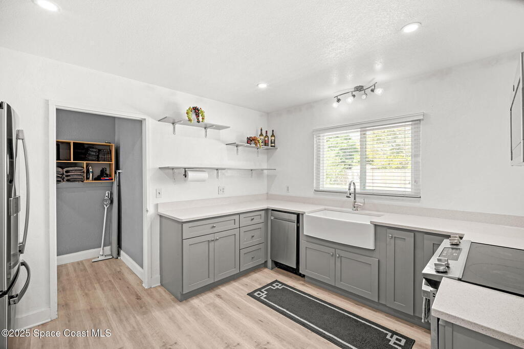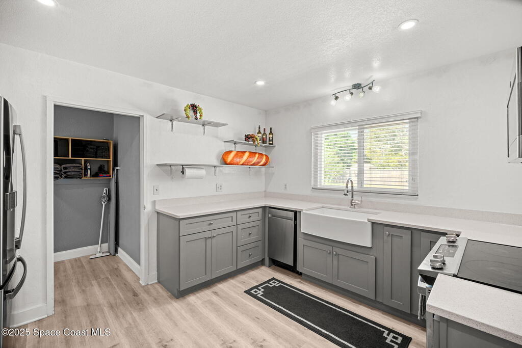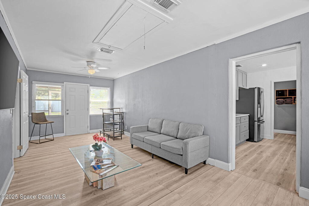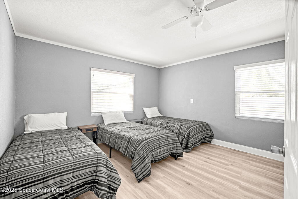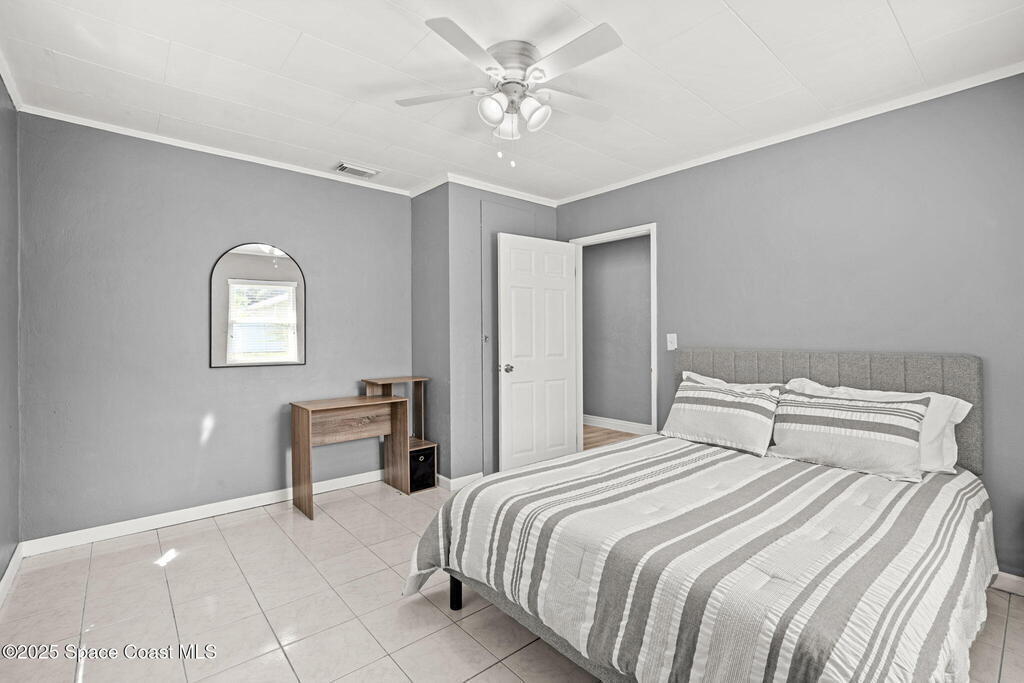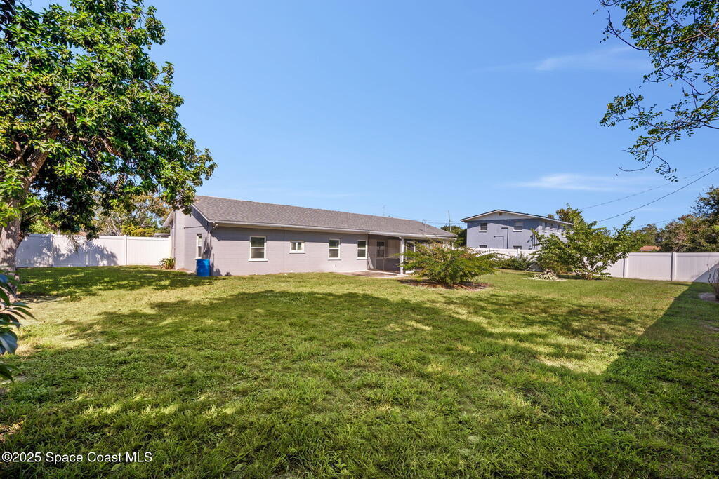 Charming and updated, this well-maintained home is located in one of South Merritt Island's most established neighborhoods. A new roof installed in 2022 adds to the property's appeal. The bathrooms have been tastefully renovated, and the kitchen features quartz countertops, a farmhouse sink, and stainless steel appliances. Throughout the home, modern tile and vinyl plank flooring offer a fresh, low-maintenance touch--no carpet anywhere. The spacious fenced backyard is a highlight, providing ample room for a pool, as well as boat or camper parking. Newer windows enhance safety and energy efficiency. With no HOA, this versatile property is ideal for a variety of uses--whether as a primary residence, seasonal retreat, long-term rental, or short-term investment opportunity. Minutes to SR 520, 528, and I-95, with easy access to Patrick Space Force Base, SpaceX, and Blue Origin.