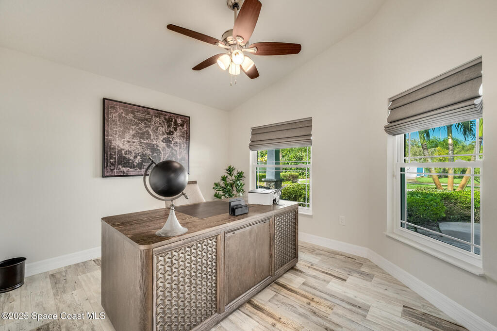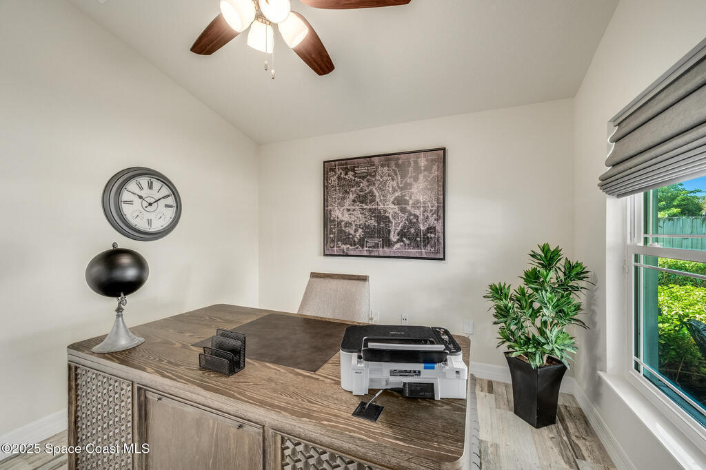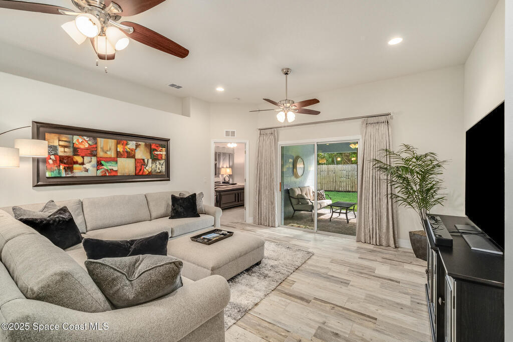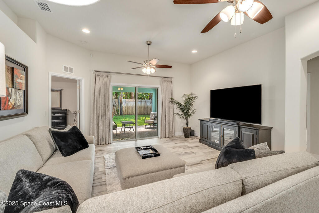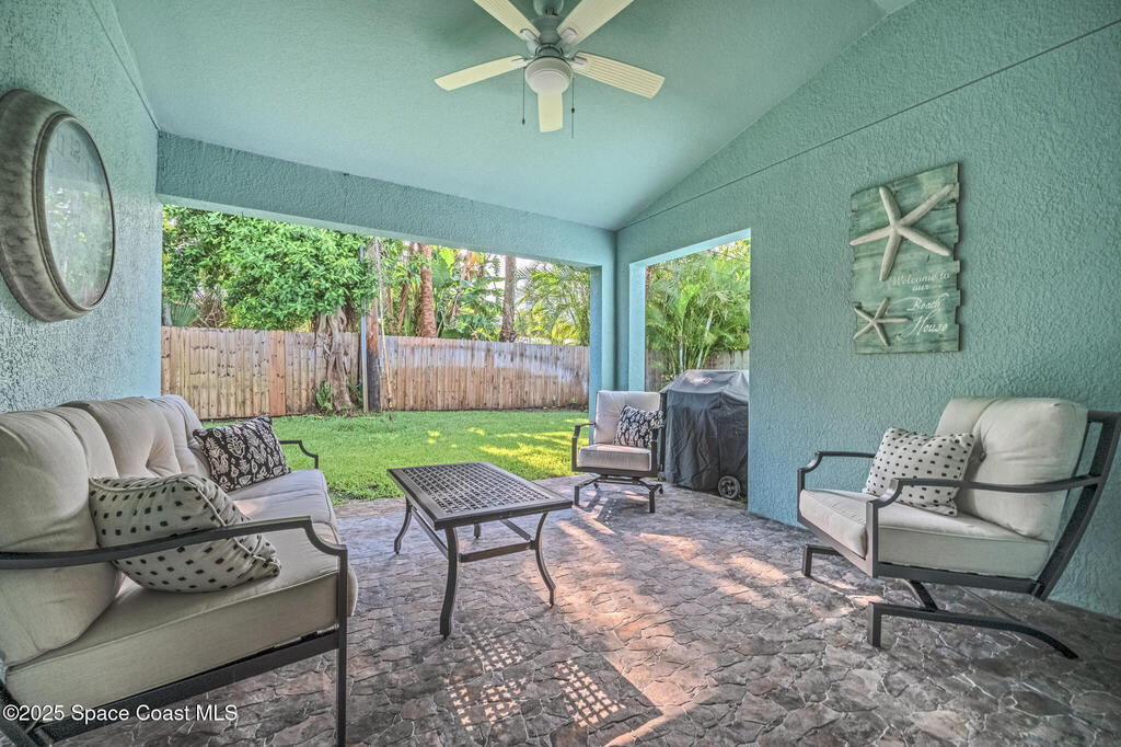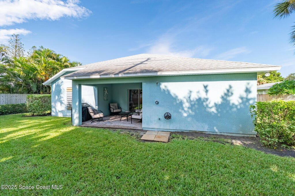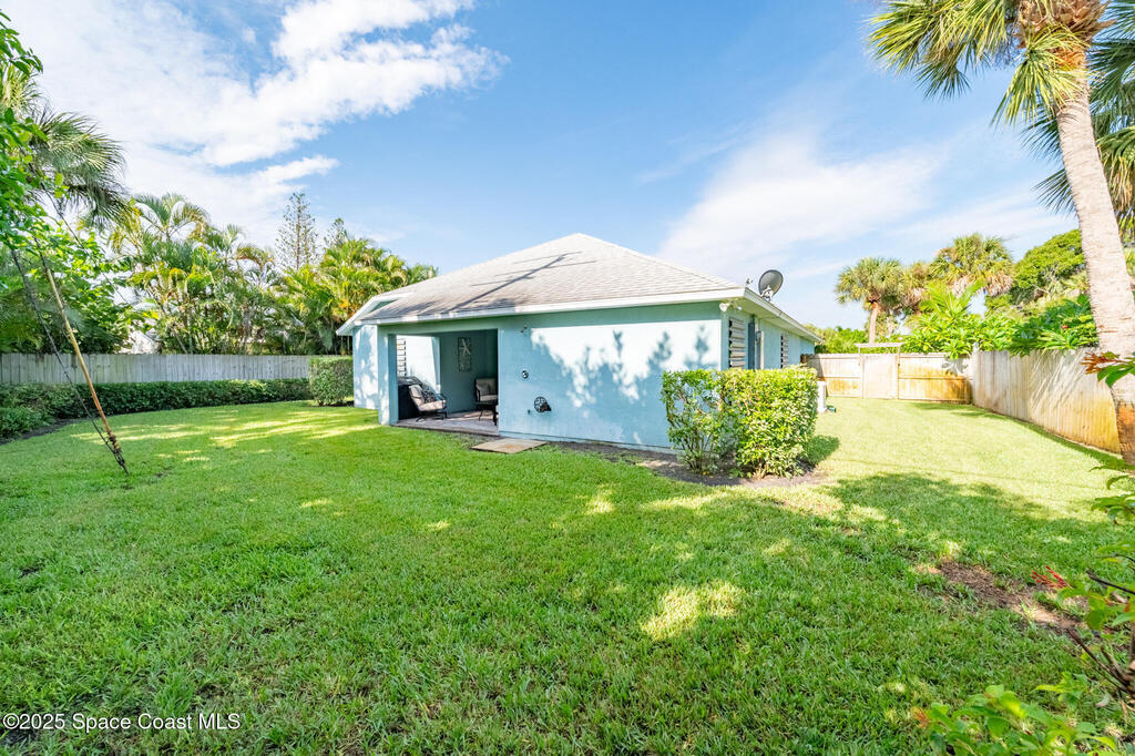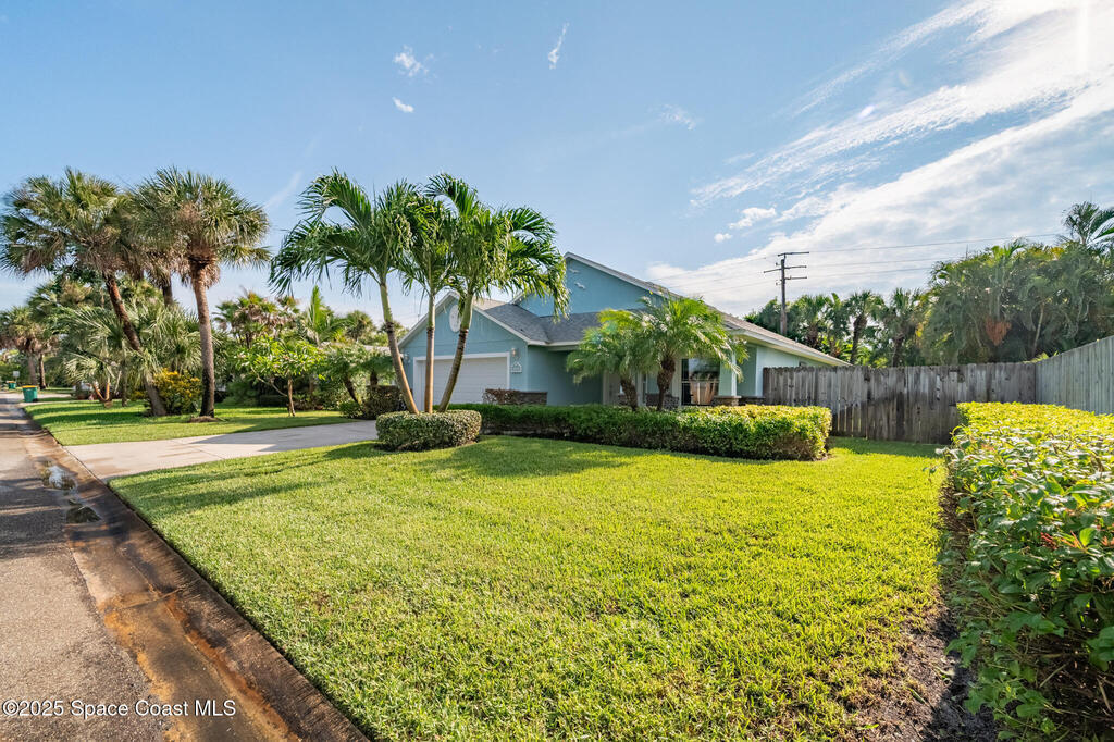 Experience the perfect blend of modern design and relaxed coastal charm in this custom-built 4-bedroom, 2-bath home, completed in 2017. Located just half a mile from the sandy shores, this 1,941-square-foot retreat welcomes you with bright, open spaces and 10-foot ceilings that create an airy, inviting feel throughout. The stone-accented exterior and beautifully landscaped yard set the tone with exceptional curb appeal. Built for peace of mind, the home includes impact glass at the front, hurricane shutters, a whole-house generator, and a water softener system. Inside, the stylish kitchen--featuring stainless steel appliances--flows effortlessly into the dining and living areas, ideal for entertaining or quiet evenings at home. The spacious primary suite offers a walk-in shower and a serene retreat, while the fourth bedroom provides flexible space for a home office, guest room, or creative studio. Step outside to your private backyard oasis, complete with a covered porch and