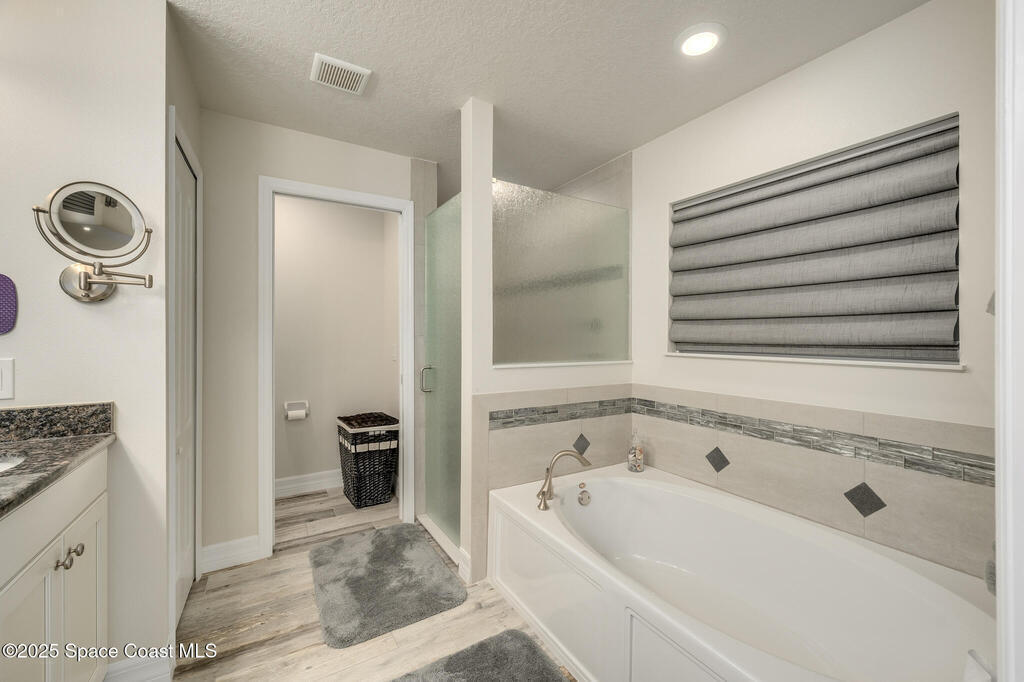 - Interior FeaturesBreakfast Bar, Built-in Features, Ceiling Fan(s), His and Hers Closets, Open Floorplan, Primary Bathroom - Tub with Shower, Primary Downstairs and Walk-In Closet(s)