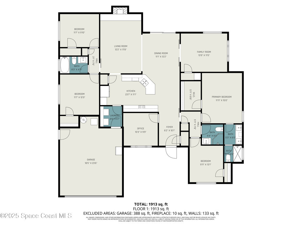 - RoomsBathroom 1, Bathroom 2, Bedroom 2, Bedroom 3, Bedroom 4, Dining Room, Family Room, Kitchen, Laundry, Living Room, Office, Primary Bathroom and Primary Bedroom