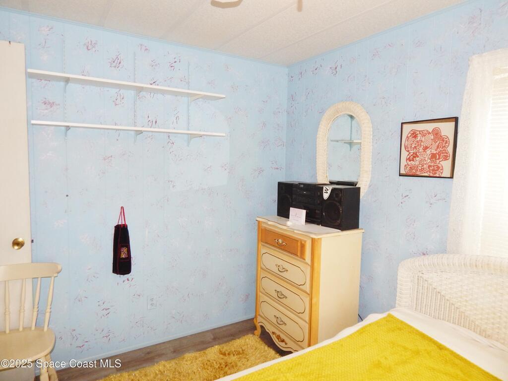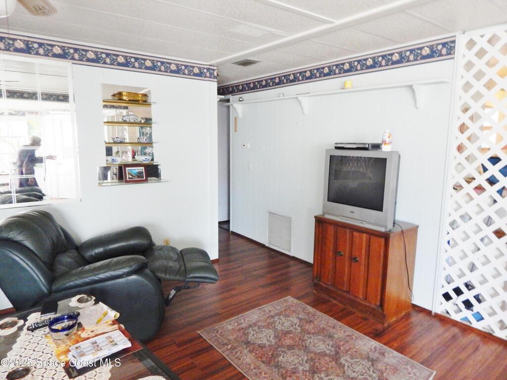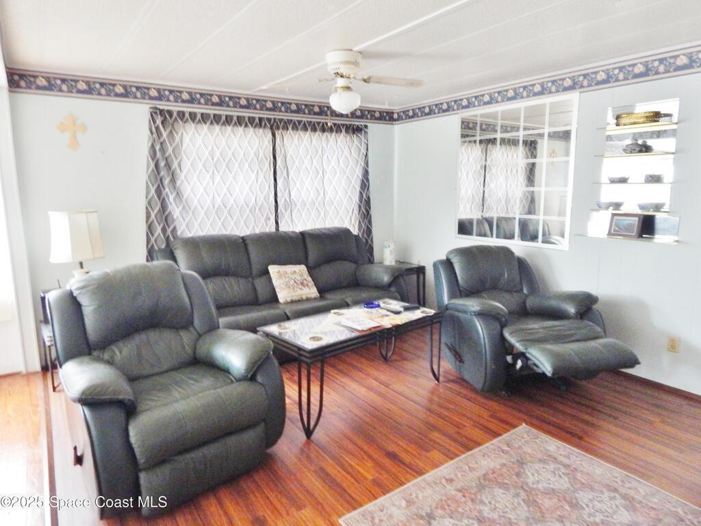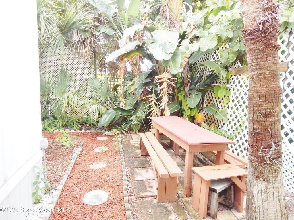 2 Bed/2 Bath fully furnished home available in the lovely waterfront community of Palm Bay Estates. The home features an eat-in kitchen separate living room with laminate flooring that was updated within the last two years, except for the dining room, which still features the original wood flooring. The master bedroom includes a spacious walk-in closet, while the bathroom has a beautiful pedestal sink and an updated vanity with a walk-in shower, and sliding glass doors that lead to a small backyard porch. From the carport entrance, you have your own backyard oasis with the lattice panels and landscaping ensuring privacy. Additionally, two sheds are included: one is designated for the washer and dryer, and the other contains a small table and chairs, making it convenient for storage or use as a workshop. HOA fees include cable, internet, a heated pool, clubhouse, and more. Boat & RV Parking depending on availability.