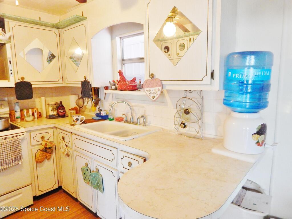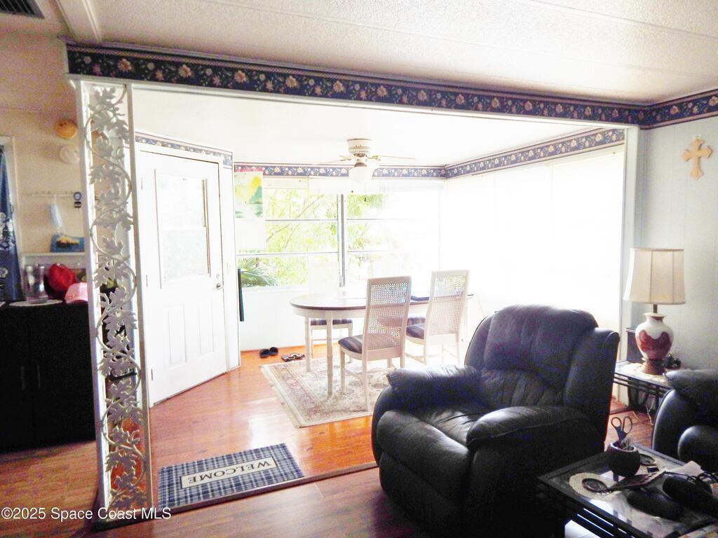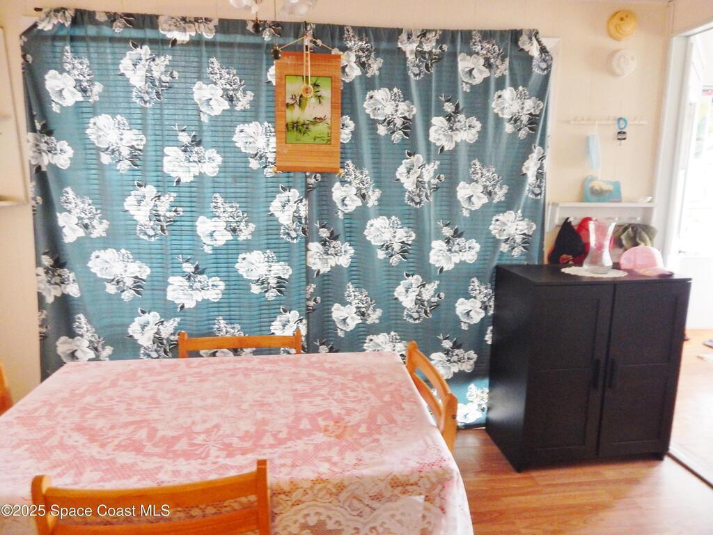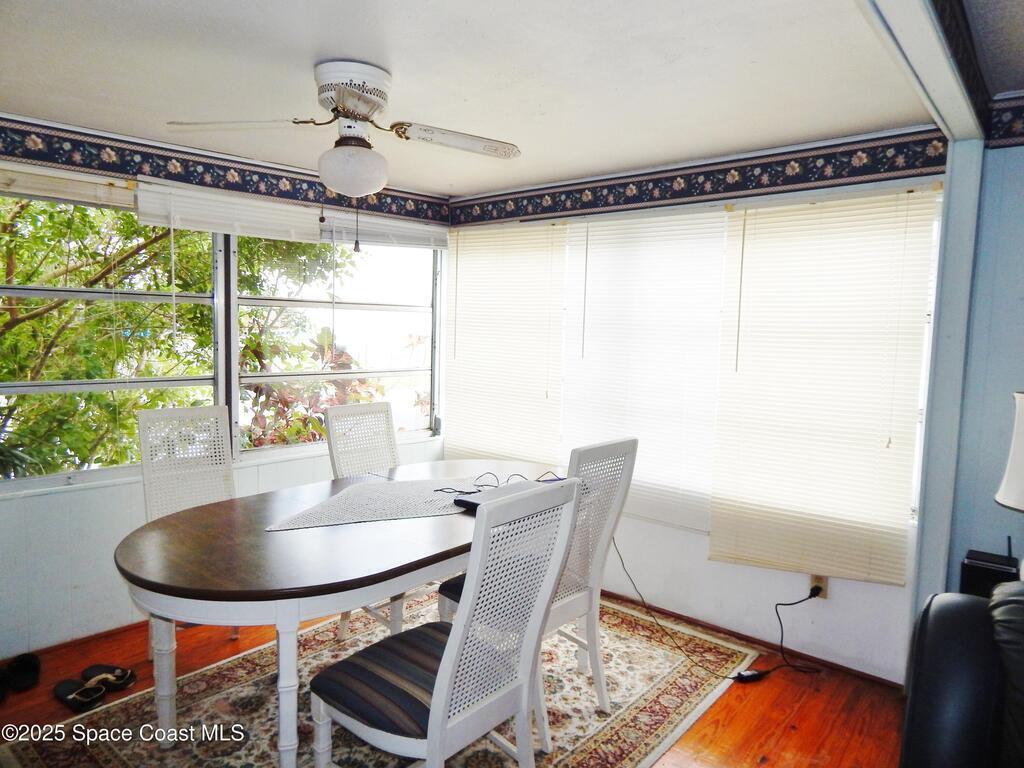 2 Bed/2 Bath fully furnished home available in the lovely waterfront community of Palm Bay Estates. The home features an eat-in kitchen separate living room with laminate flooring that was updated within the last two years, except for the dining room, which still features the original wood flooring. The master bedroom includes a spacious walk-in closet, while the bathroom has a beautiful pedestal sink and an updated vanity with a walk-in shower, and sliding glass doors that lead to a small backyard porch. From the carport entrance, you have your own backyard oasis with the lattice panels and landscaping ensuring privacy. Additionally, two sheds are included: one is designated for the washer and dryer, and the other contains a small table and chairs, making it convenient for storage or use as a workshop. HOA fees include cable, internet, a heated pool, clubhouse, and more. Boat & RV Parking depending on availability.