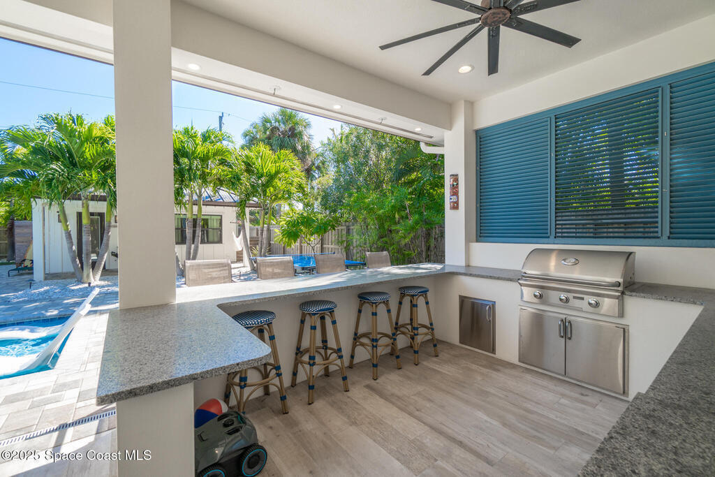 - Exterior FeaturesFire Pit, Impact Windows, Other, Outdoor Kitchen, Outdoor Shower and Storm Shutters