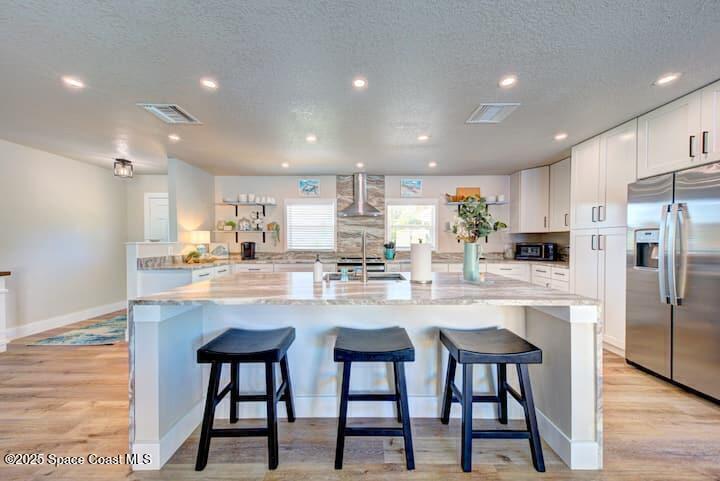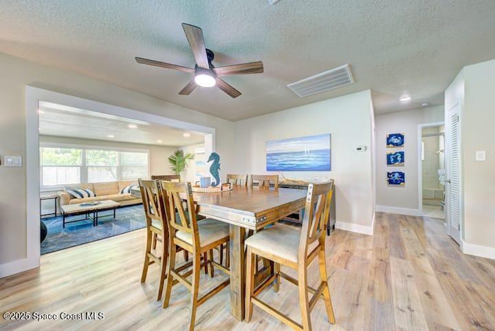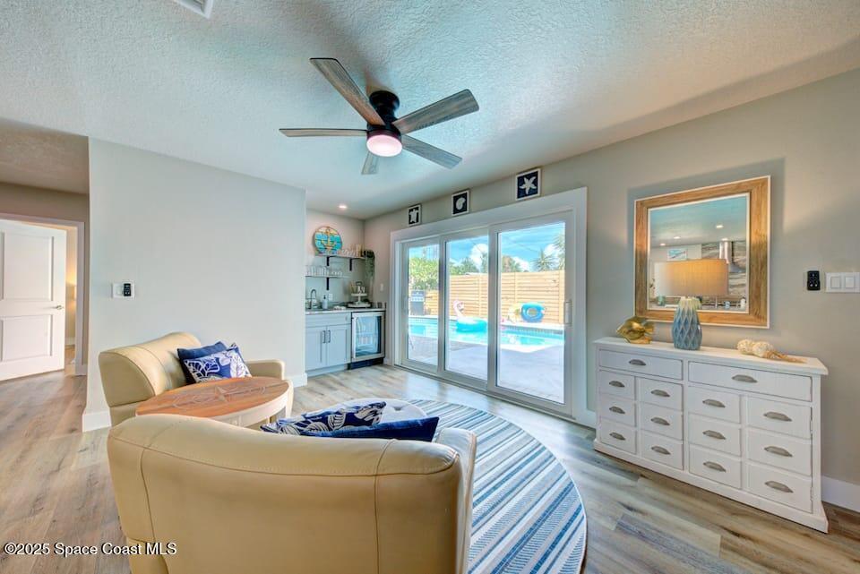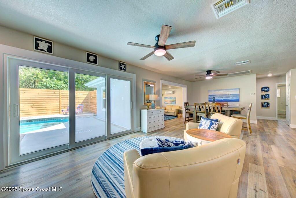 Discover coastal living at its finest in this stunning Cocoa Beach home. Located on a spacious lot, the property boasts a beautifully landscaped yard with a heated swimming pool. Inside, enjoy a well-designed, floor plan featuring a large modern kitchen that creates an inviting space to entertain. The open, bright and airy living room, with multiple bedrooms offers ample space and comfort. With its prime location near local amenities and beaches, this home offers a superb retreat for relaxation and leisure. Home comes fully furnished with everything you need!