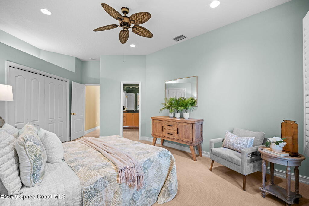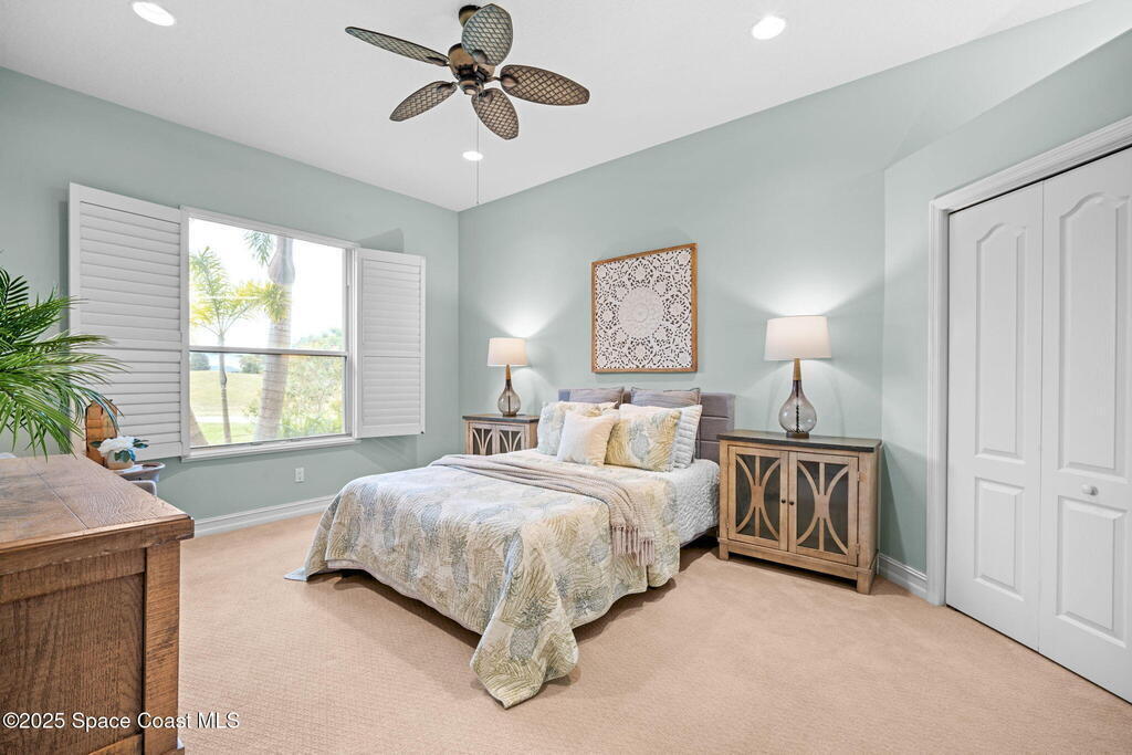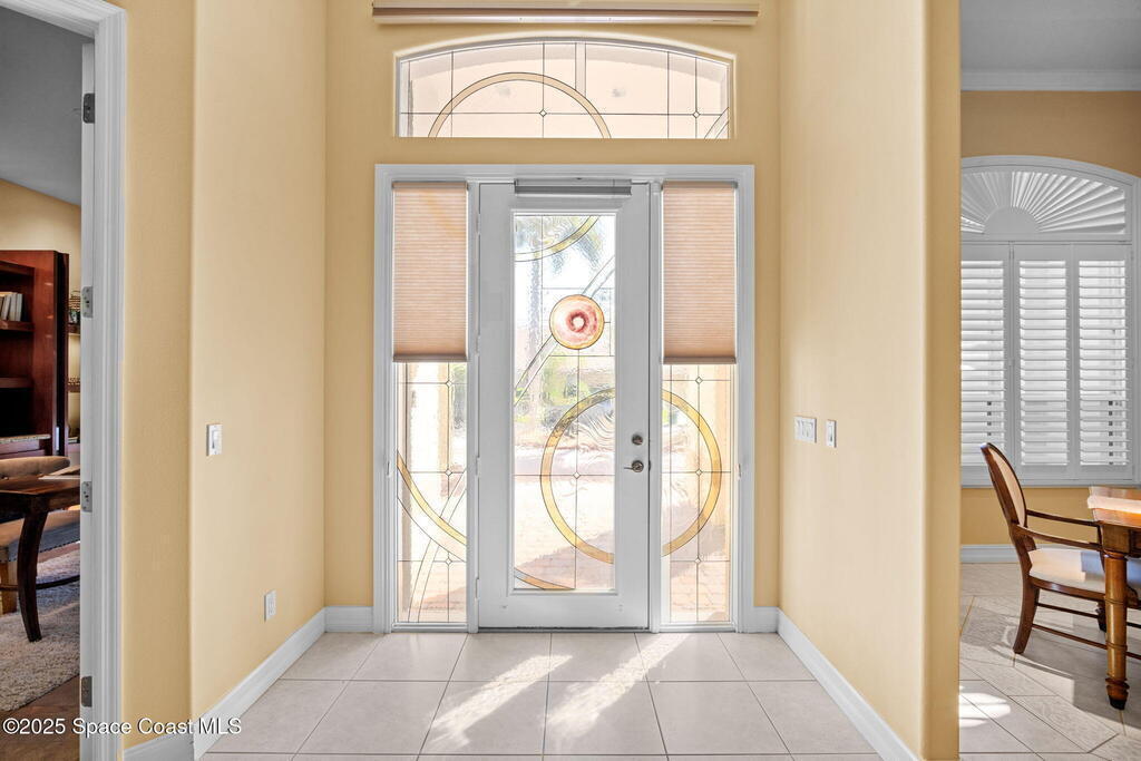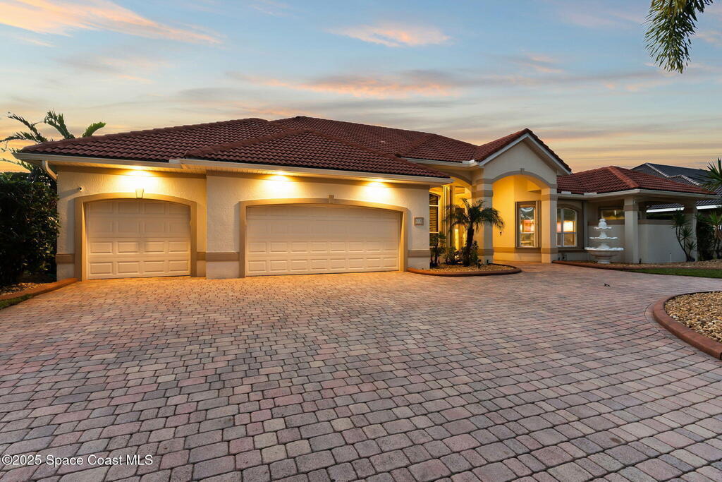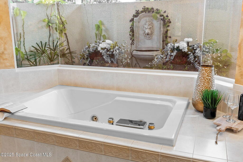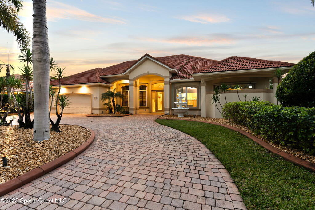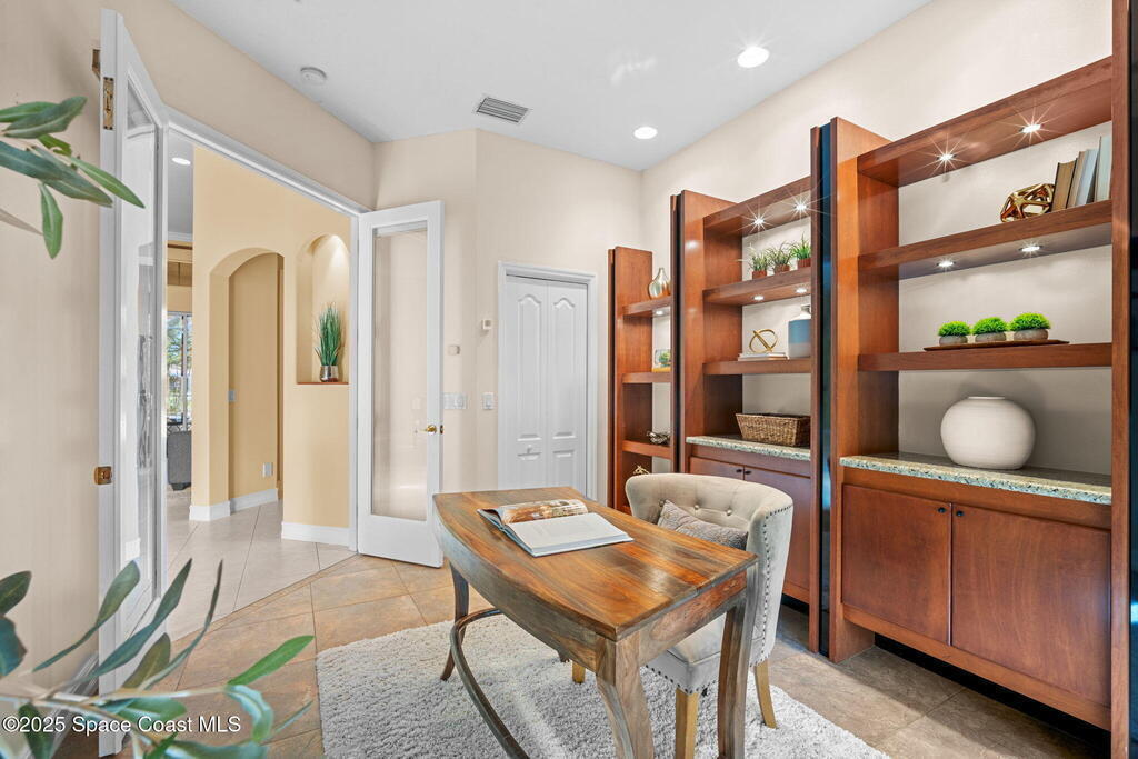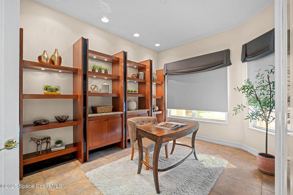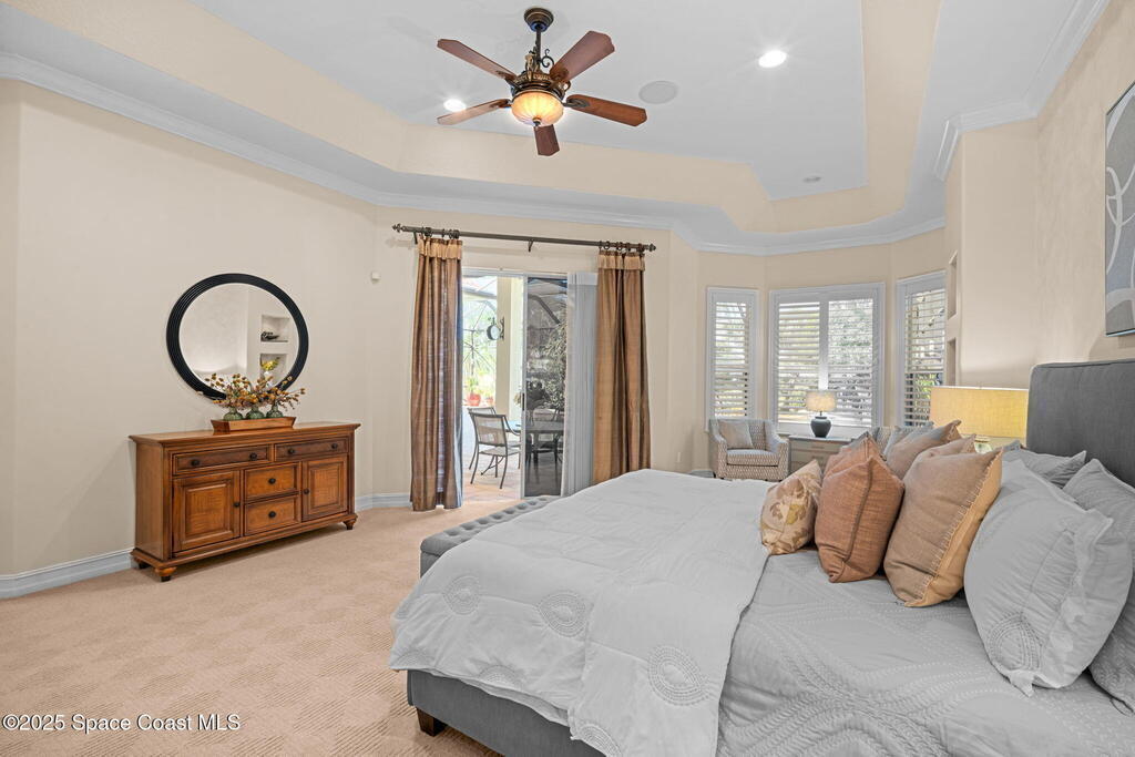 Luxury living in Baytree! Located on the 8th fairway in gated Saddleworth, this elegant single-story home offers over 3,150 SF of open living with high ceilings, plantation shutters, tile floors, and premium finishes. Gourmet kitchen features granite countertops, large island, gas cooktop, Bosch dishwasher, new refrigerator, walk-in pantry, and breakfast nook overlooking the pool. Spacious primary suite with sitting area, dual custom closets, Jacuzzi tub, walk-in shower, and aquarium window. Custom office with built-ins plus 2 additional guest rooms. Enjoy resort-style outdoor living with screened lanai, covered seating, tropical landscaping, and heated saltwater pool & spa with waterfalls and LED lighting. Brick paver circular driveway, 3-car garage, natural gas generator, central vac, security system, hurricane shutters, and 2025 HVAC. Immaculate and move-in ready in one of Baytree's most desirable cul-de-sacs--minutes to top-rated schools, golf, parks, dining, and Suntree amenities