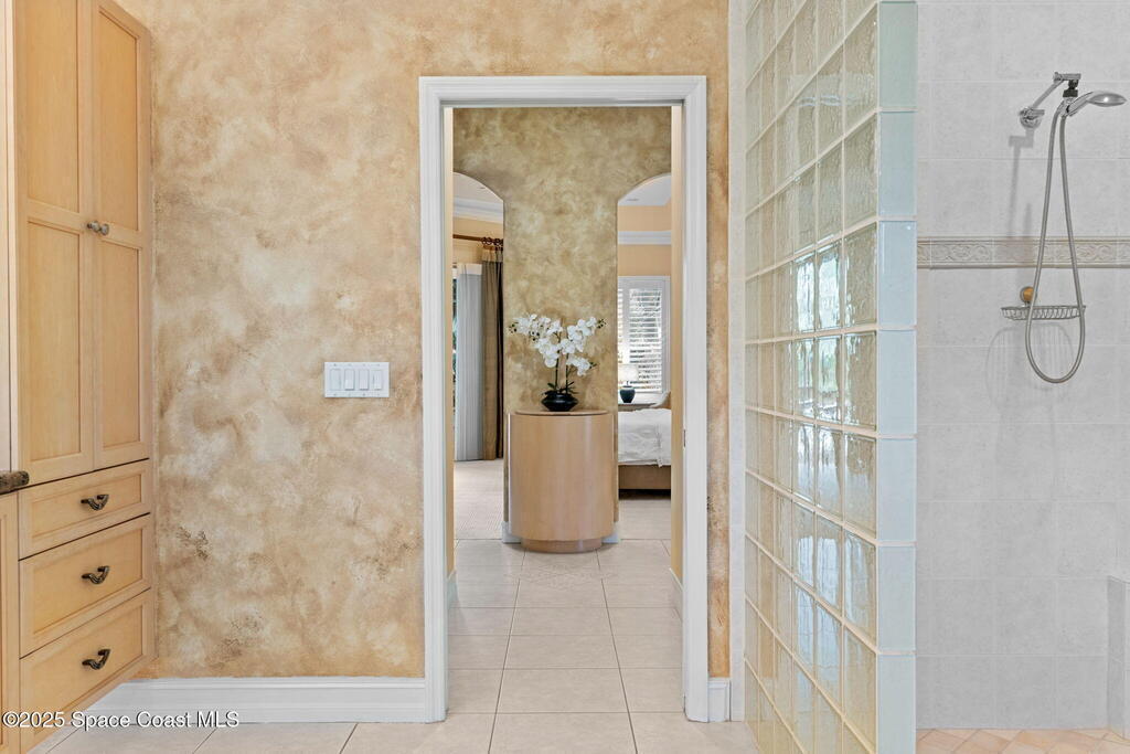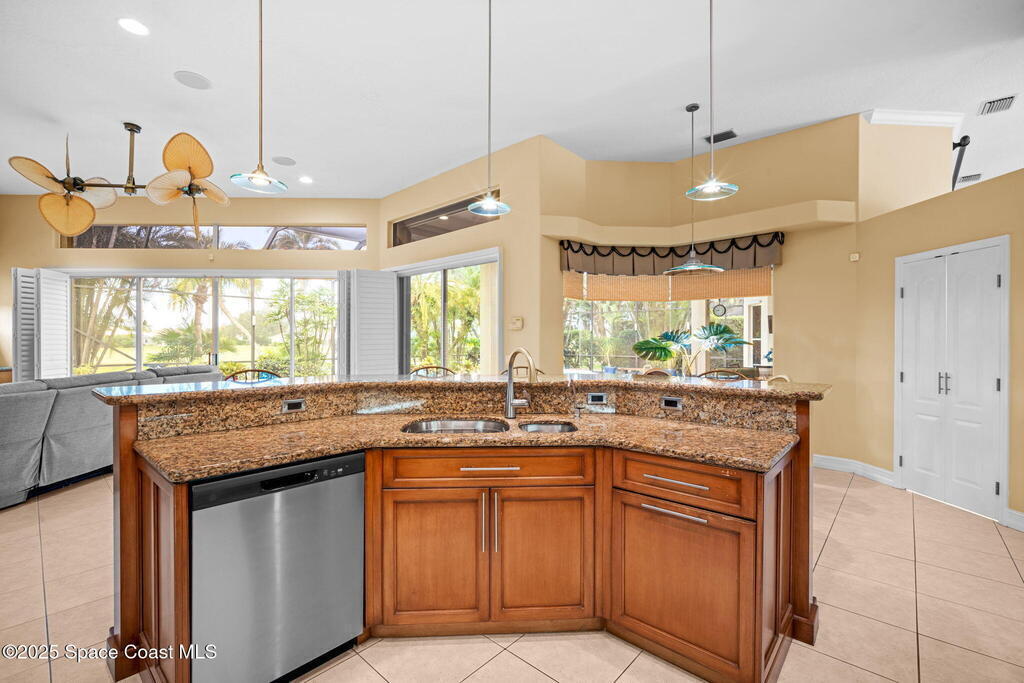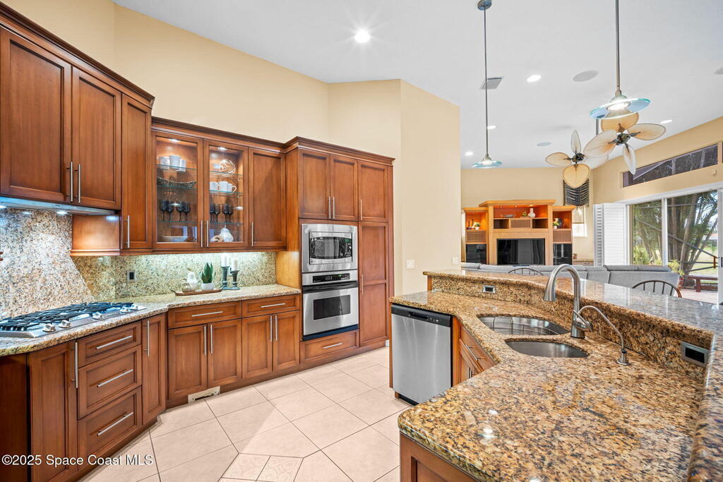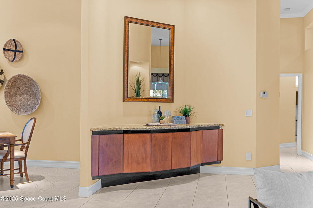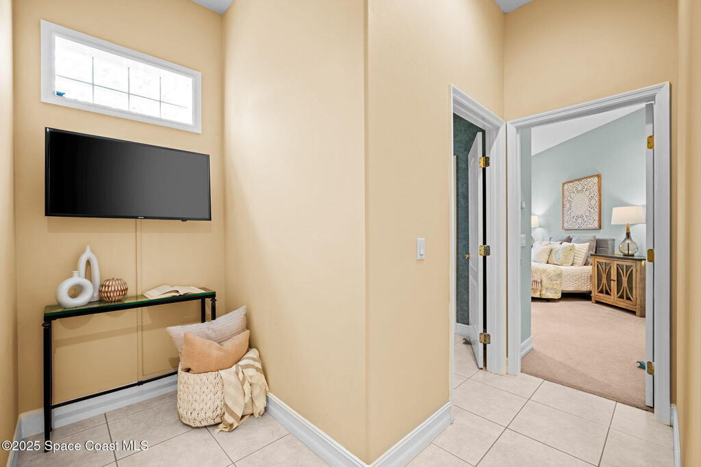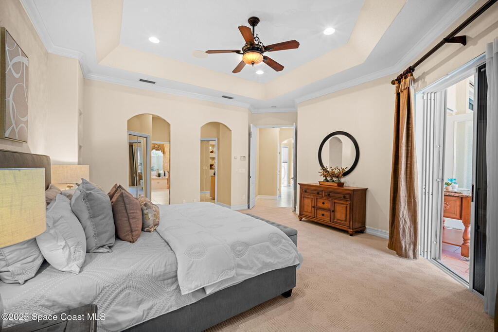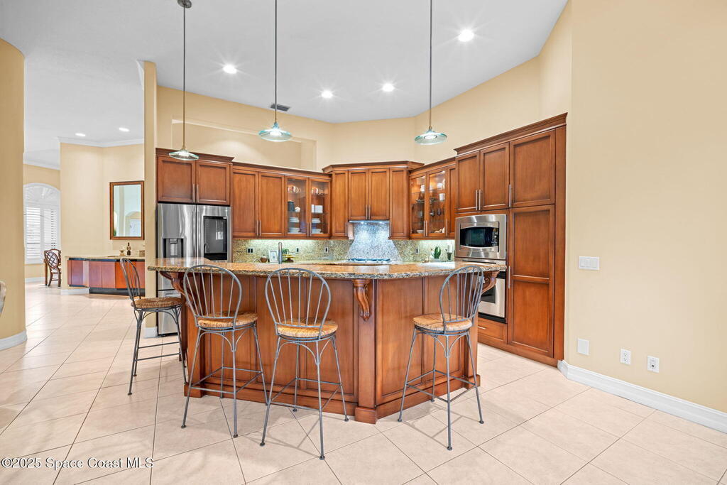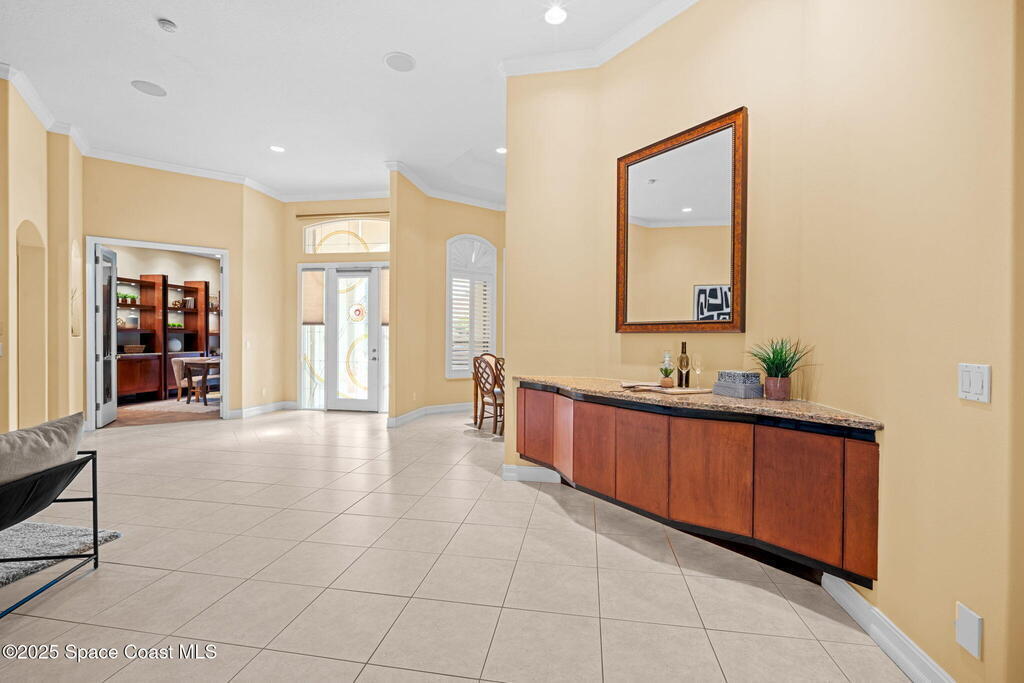 Luxury living in Baytree! Located on the 8th fairway in gated Saddleworth, this elegant single-story home offers over 3,150 SF of open living with high ceilings, plantation shutters, tile floors, and premium finishes. Gourmet kitchen features granite countertops, large island, gas cooktop, Bosch dishwasher, new refrigerator, walk-in pantry, and breakfast nook overlooking the pool. Spacious primary suite with sitting area, dual custom closets, Jacuzzi tub, walk-in shower, and aquarium window. Custom office with built-ins plus 2 additional guest rooms. Enjoy resort-style outdoor living with screened lanai, covered seating, tropical landscaping, and heated saltwater pool & spa with waterfalls and LED lighting. Brick paver circular driveway, 3-car garage, natural gas generator, central vac, security system, hurricane shutters, and 2025 HVAC. Immaculate and move-in ready in one of Baytree's most desirable cul-de-sacs--minutes to top-rated schools, golf, parks, dining, and Suntree amenities