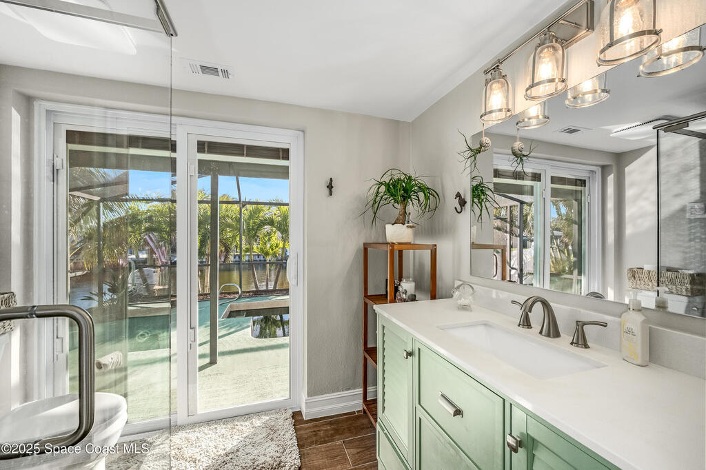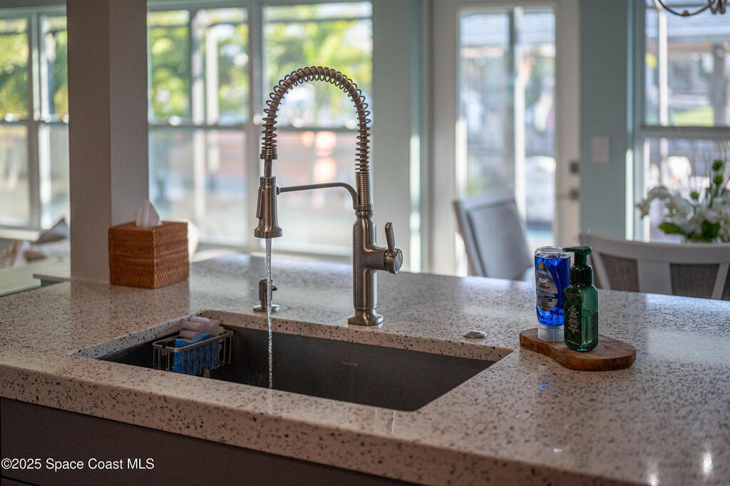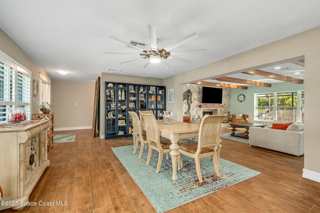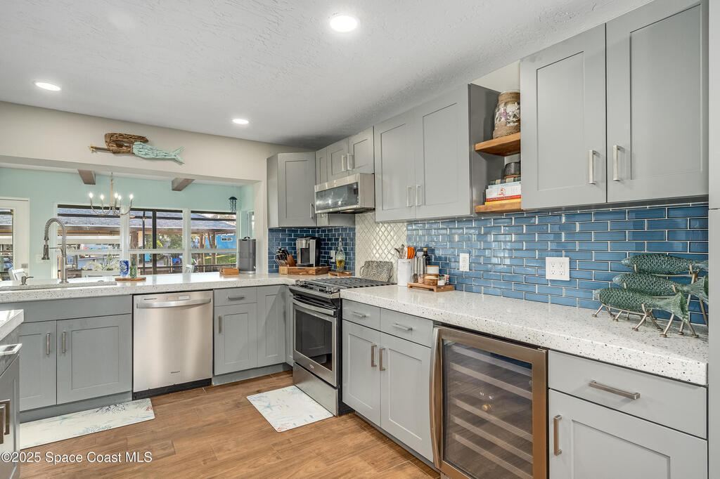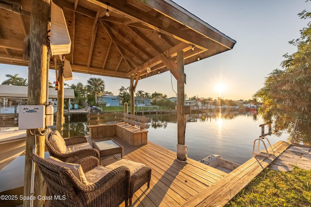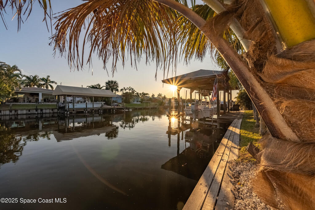 Sellers are offering $10,000 concession with acceptable offer toward closing costs or rate buy-down; a win-win for buyers! BOATER'S PARADISE! Enjoy waterfront living with an 8,000-lb covered boat lift and private dock--perfect for morning coffee or evening sunsets by the water. This fully renovated 3-bedroom, 2-bath pool home blends coastal charm with modern updates. The kitchen features soft-close cabinets, quartz countertops with Curava recycled glass, a gas stove, and a dine-in peninsula ideal for entertaining. Both bathrooms have been tastefully remodeled, and fresh finishes bring elegance throughout. Step outside to your solar-heated saltwater pool, recently refinished with a durable 30-year surface. The open family room with a cozy fireplace and adjacent dining area create an inviting space for relaxing or hosting guests. Live the Florida lifestyle to the fullest!