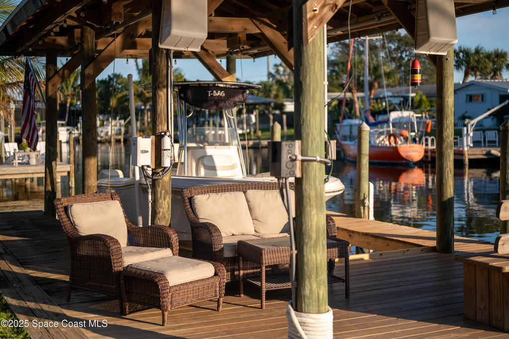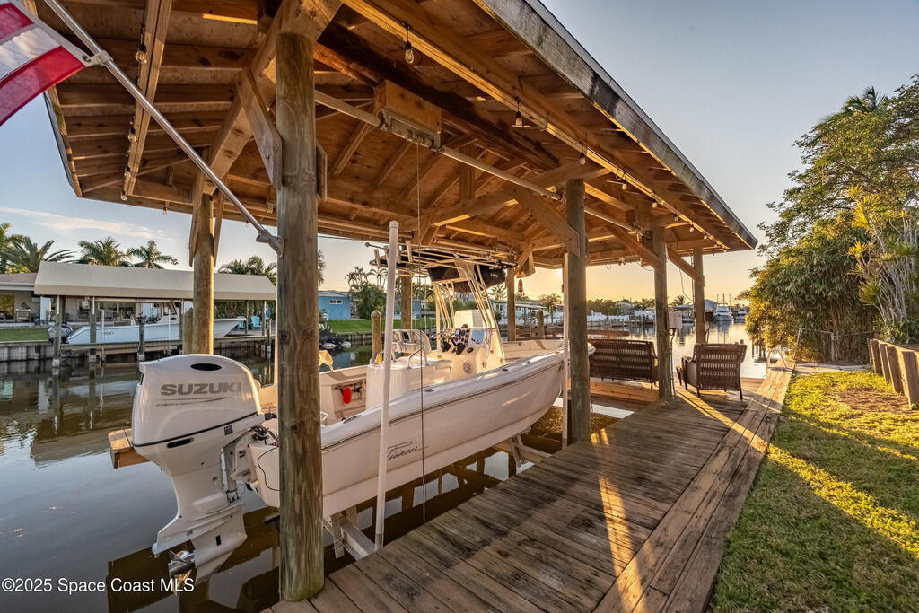 - Exterior FeaturesBoat Lift, Boat Slip, Dock and Impact Windows