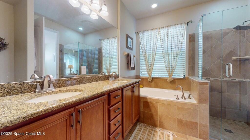 - Interior FeaturesBreakfast Bar, Breakfast Nook, Ceiling Fan(s), Eat-in Kitchen, Entrance Foyer, Guest Suite, His and Hers Closets, In-Law Floorplan, Kitchen Island, Pantry, Primary Bathroom -Tub with Separate Shower, Primary Downstairs, Smart Thermostat, Split Bedrooms and Walk-In Closet(s)