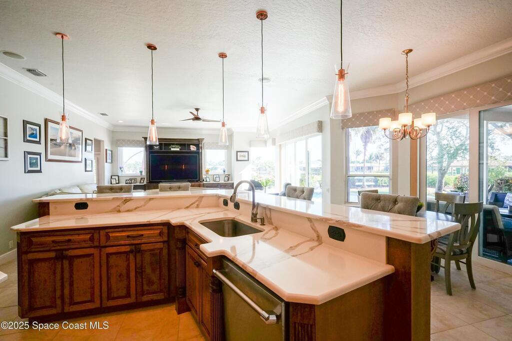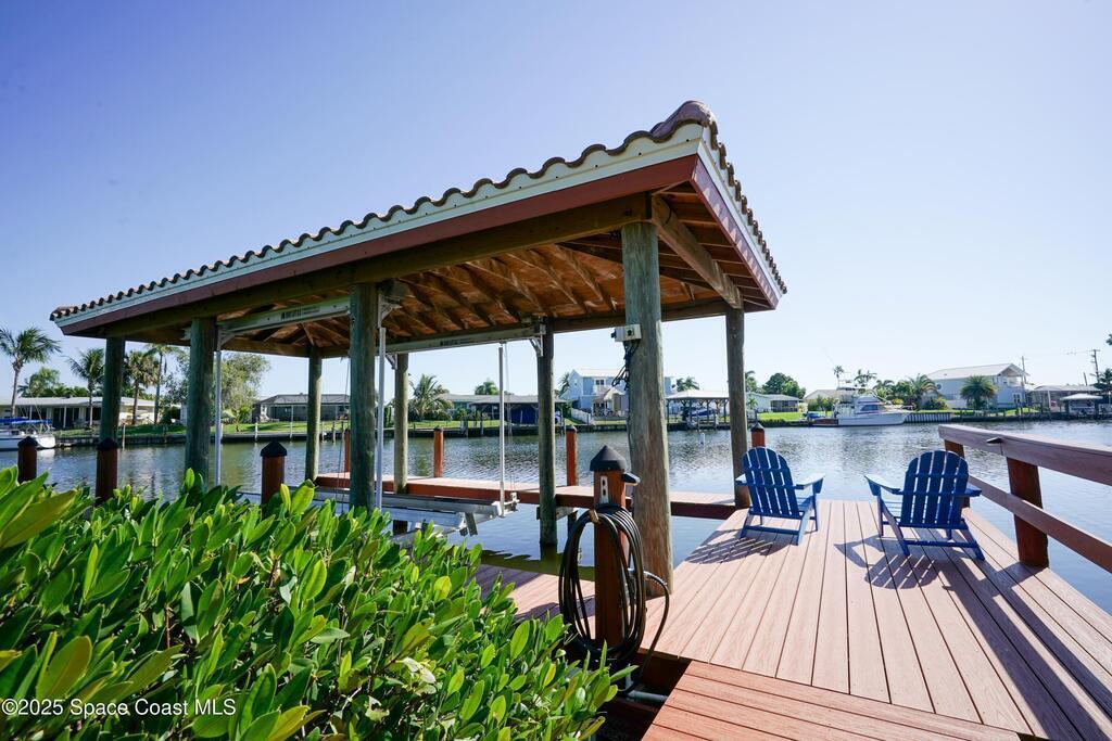- Exterior FeaturesBoat Lift, Boat Slip, Dock, Fire Pit, Outdoor Kitchen and Storm Shutters
