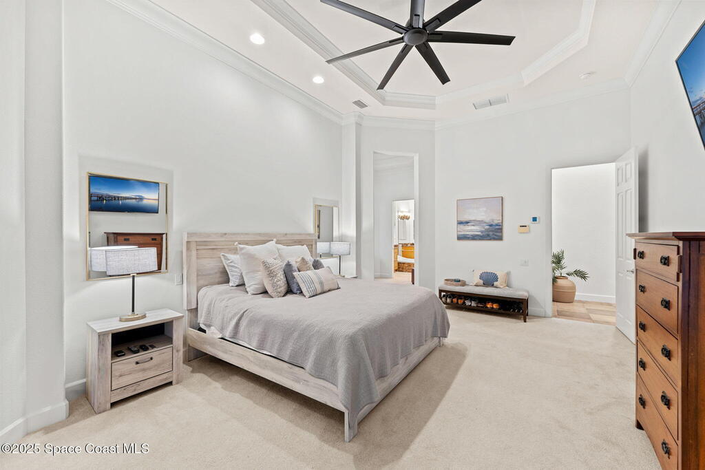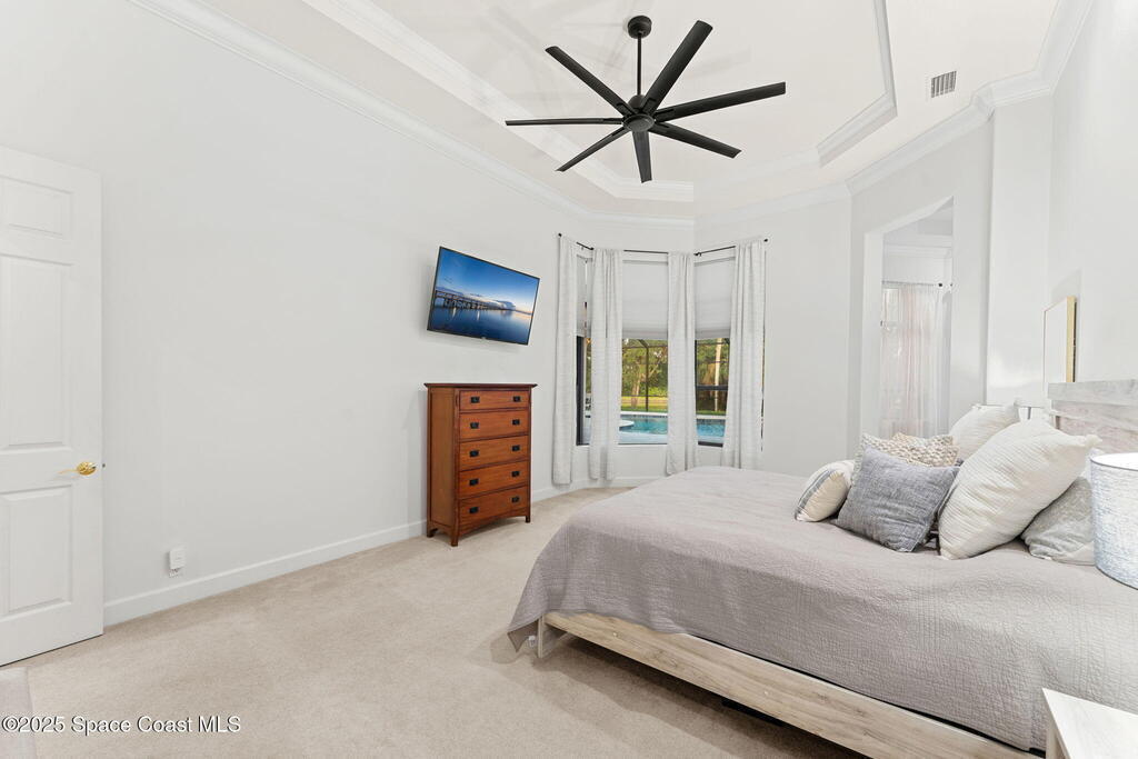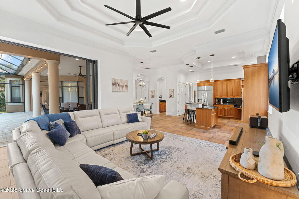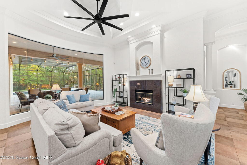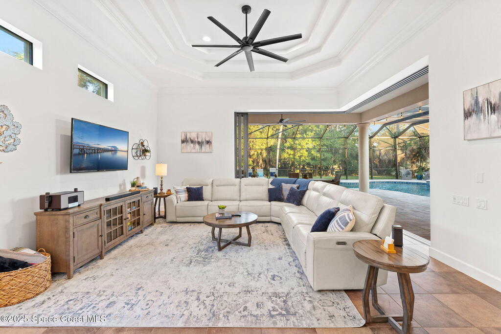 Welcome to your dream pool home in the prestigious gated community of Summer Lakes in Viera! This stunning estate at 4447 Reseda Way sits on .96 acres and offers 3,929 sq. ft. of living space, featuring 5 bedrooms and 5 bathrooms, each with its own ensuite bath.The open floor plan includes a chef's kitchen with stainless steel appliances, a gas stove, and generous space for entertaining. The main living areas feature tile flooring, while the bedrooms are carpeted. A brand-new tile roof will be installed prior to closing. The expansive screened lanai overlooks the tranquil lake and offers the ultimate outdoor lifestyle with a newer gas-heated saltwater pool and spa, plus a summer kitchen ideal for alfresco dining. The oversized primary suite includes his-and-hers walk-in closets, a private study, a wet bar, direct lanai access, and hurricane shutters. Additional upgrades include two new hot water heaters, one new AC system, new interior paint, and a 3-car garage.