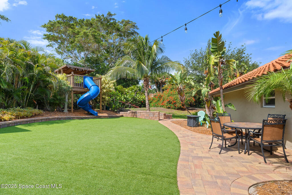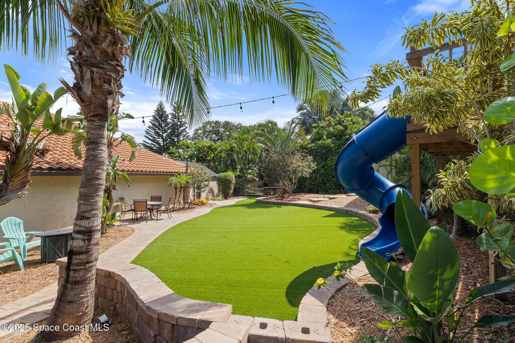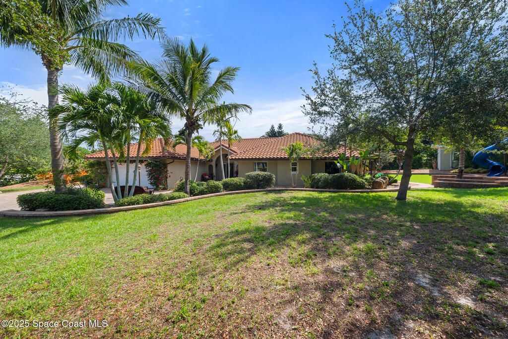 Beautifully updated Spanish Mediterranean residence located in the highly sought after Crooked Mile Road neighborhood on an island between two rivers. This 4 bedroom, 3 bath split floor plan offers a perfect combination of style & comfort. Recent upgrades include a new tile roof, tile flooring throughout, custom bathrooms, stainless steel appliances, granite countertops, updated electrical & fresh interior & exterior paint. The property includes over $100K in pavers and astroturf alone. There's a new permitted detached office on a hill overlooking the backyard. The outdoor space, designed by a landscape contractor, provides mature tropical landscape throughout, a large updated pool, a huge hot tub with a gas fire pit & paver seating. Additional features include an oversized driveway with dedicated parking for a boat or RV, a large custom treehouse & a fenced yard on a corner lot. There's no HOA & it's just minutes to the beach. This home is an opportunity, make it yours today!