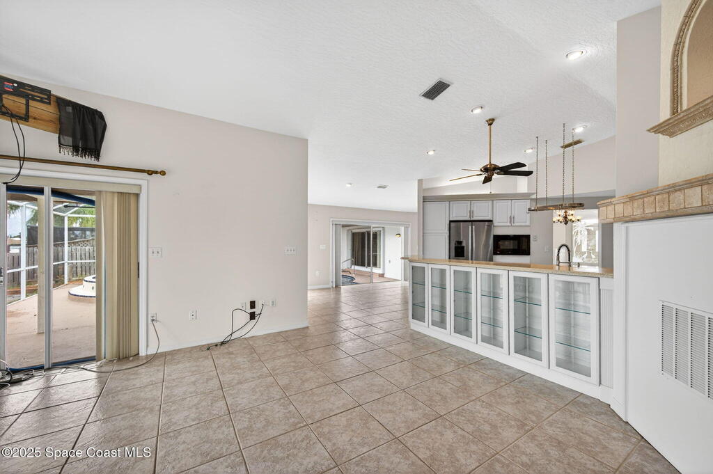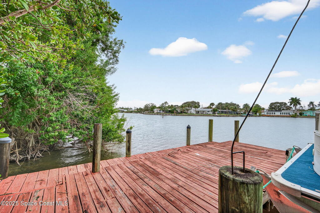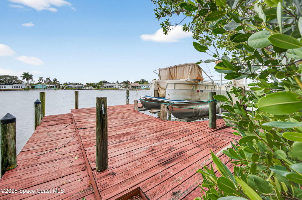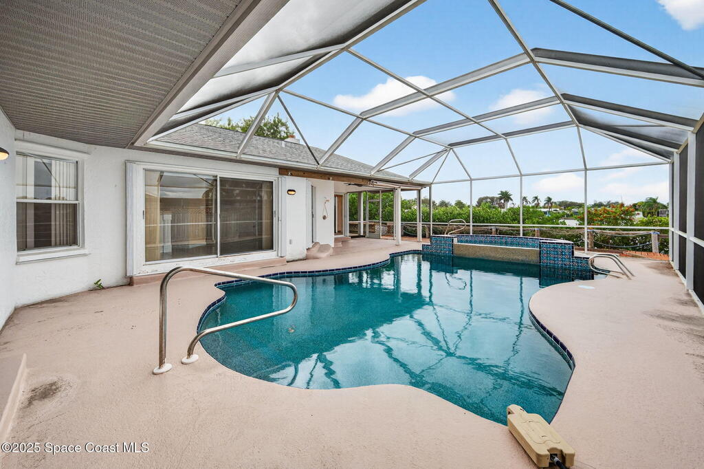 Discover an incredible waterfront opportunity--ready for someone to bring their personal touch and elevate it into a true coastal retreat. Perfectly positioned on a navigable canal with quick access to the Banana River and just minutes from the Port, this home offers the ideal blend of Florida living and endless potential. Step outside to an impressive screened-in pool area featuring a serene waterfall, relaxing hot tub, and an electric heater for year-round enjoyment. A convenient half bathroom serves the pool deck, making outdoor entertaining effortless. For the boating enthusiast, the property includes power at the dock and a 20,000-pound lift, creating an easy launch into the open water. Inside, the home features a fabulous and flexible floor plan with two separate living areas, a formal dining room, and a dedicated bar, perfect for hosting gatherings. The split layout ensures privacy, while the generously sized bedrooms offer comfort for family and guests.