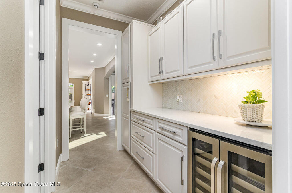 A master class in luxury living! This 4 bedroom 3 bath 3 car garage gated villa is ideally located steps from the world famous Cocoa Beach! Upscale finishes throughout! Marble and wood floors,. Bright and airy chefs kitchen with butlers pantry. Custom cabinets and tops with gas stove and commercial quality appliances! Overlooking the spacious living area featuring a cozy gas fireplace! Soaring ceilings with natural light pouring in from above. Attention to detail will be appreciated here. Solid wood doors, enhanced trim package with crown molding through out. Stunning entry staircase sets the tone! Primary bedroom and bath will pamper you with spa like amenities! Private elevator, whole house gas generator and impact glass for piece of mind! Easy outdoor living in your private courtyard oasis! Heated private pool and spa with remote. Built in gas grill and covered seating! 24 unit community offers an unparcelled combination of comfort and security in an outstanding location!