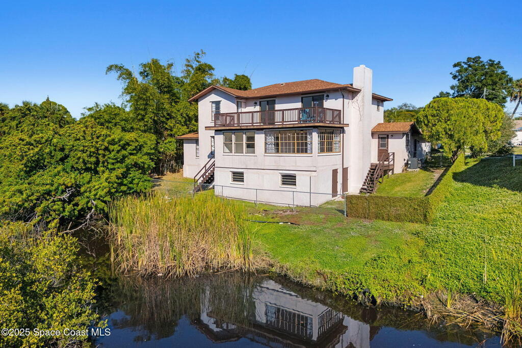 Waterfront home - with a BASEMENT! Located in Ballard Park, this 5 bedroom, 3 bath Melbourne home gives you 100 feet of canal frontage and direct access to the Indian River Lagoon from your backyard. Inside, an updated layout features a clean modern kitchen, refreshed baths, vinyl flooring throughout the main level, and a step-down sunken living room that pulls your eye to the water. Three upstairs bedrooms open to a shared balcony that runs along the canal, while a finished bump-out lower level creates a true bonus room for media, gym, studio, or play - a rare find in this area of Florida. An oversized two-car garage, no HOA, and low-maintenance finishes keep daily life easy. No bridge height restrictions and future dock potential invites you to bring the big boats and kayaks. From here it's a short walk to Ballard Park's boat ramp, tennis courts, and riverfront green space, and just minutes to Downtown Eau Gallie, Historic Downtown Melbourne, shopping, dining, and the beaches.
