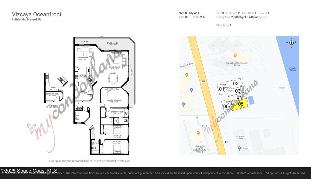 Vizcaya Oceanfront - Incredible SE corner unit spanning 2588 sq. ft. Panoramic ocean views. Luxury condo living in Indialantic-By-The-Sea. Grand entry and remarkable room sizes make this condo feel like a single family home. Lovingly maintained by the same family for over 20 years. Steps away from restaurants, Publix, Starbucks, and the famous SOFA area. Heated swimming pool, direct beach access, beautifully remodeled recreation and exercise room. Rare garage parking and private storage. An opportunity to live a low-key coastal lifestyle in a town with a population of less than 3,200. Rich employment opportunities with several defense contractors and PAFB nearby. One hour to Orlando. Excellent public schools. Many recent building upgrades including reinforced balconies 2025, elevators 2020, fresh exterior paint 2025. No special assessments. Self managed HOA. A motivated seller. An opportunity you don't want to miss.