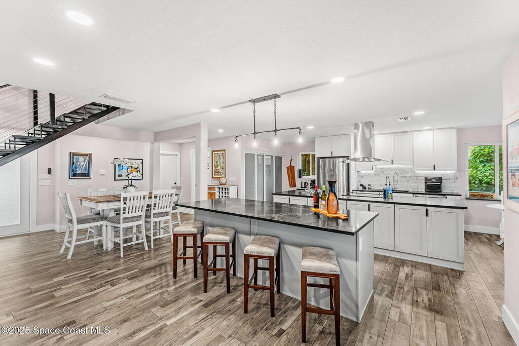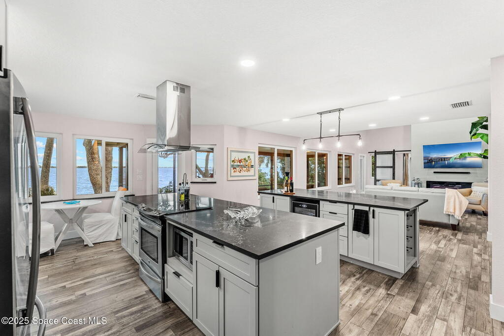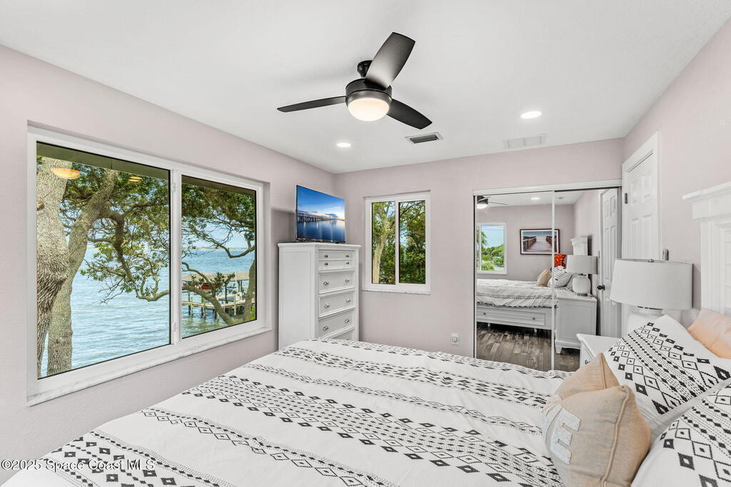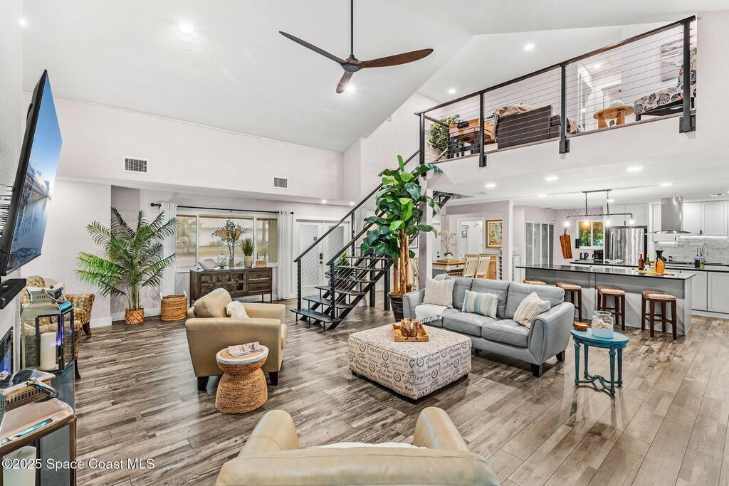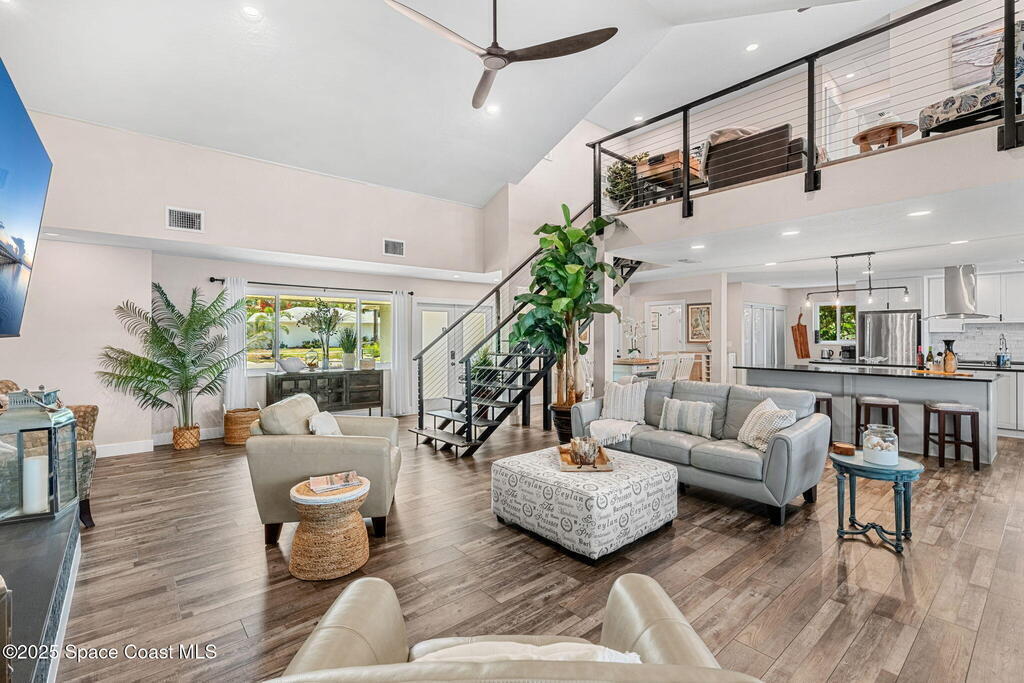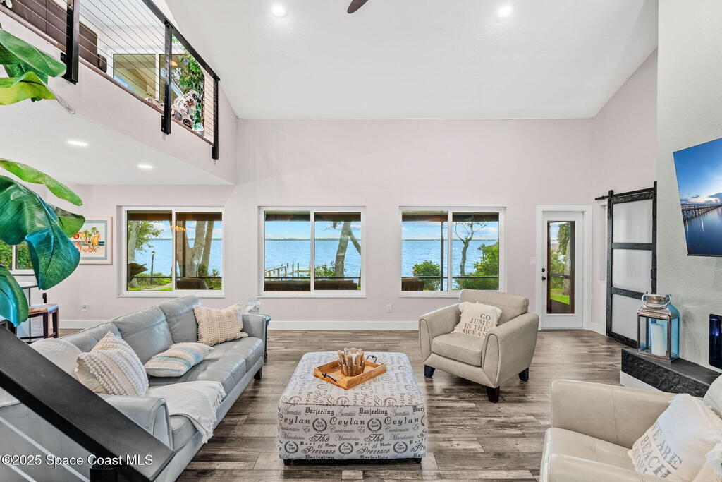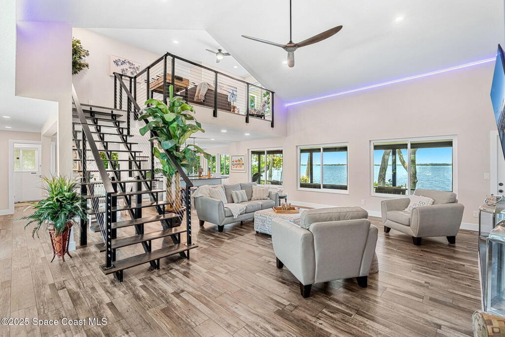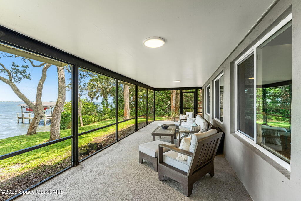 SPECTACULAR DIRECT RIVER FRONT PROPERTY in Rock Point Cul-de-sac Direct Indian River deep water location with the highest elevations built on the Coquina rock bluff. Complete RENO 2023 -2025. This tastefully renovated home with panoramic river views has all the modern amenities; featuring cathedral beamed ceilings, new open staircase, large open floor plan, huge great room, chef's kitchen, large new screened back patio & views, throughout the whole property! Nestled quiet Cud-de-sac location offers complete privacy adorned with majestic oak trees to enjoy outdoor living. Bring your boat and watch dolphins swimming to greet you off your dock. Short term rentals allowed for a great ROI for investor or snowbird. Structural Improvements include 2019 roof, impact windows, Dock 2025, electrical and plumbing, new fence2023. Short term Owner financing available.